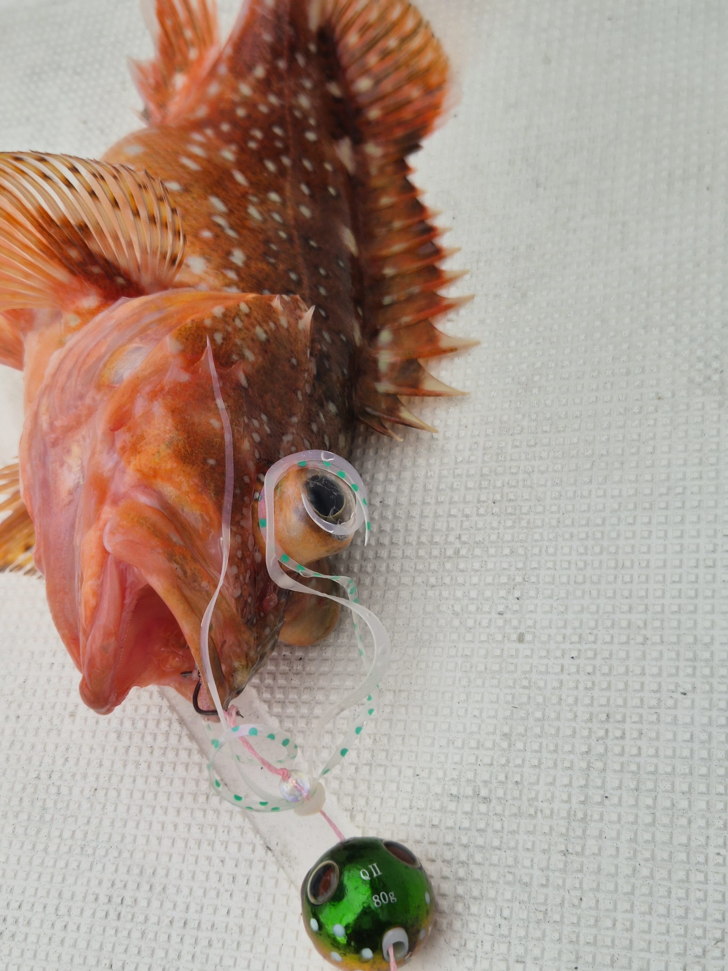 お昼休憩し、午後からも根掛かり多発の岩礁帯エリアで攻めていくとウッカリカサゴマンションを発見!!🐟️