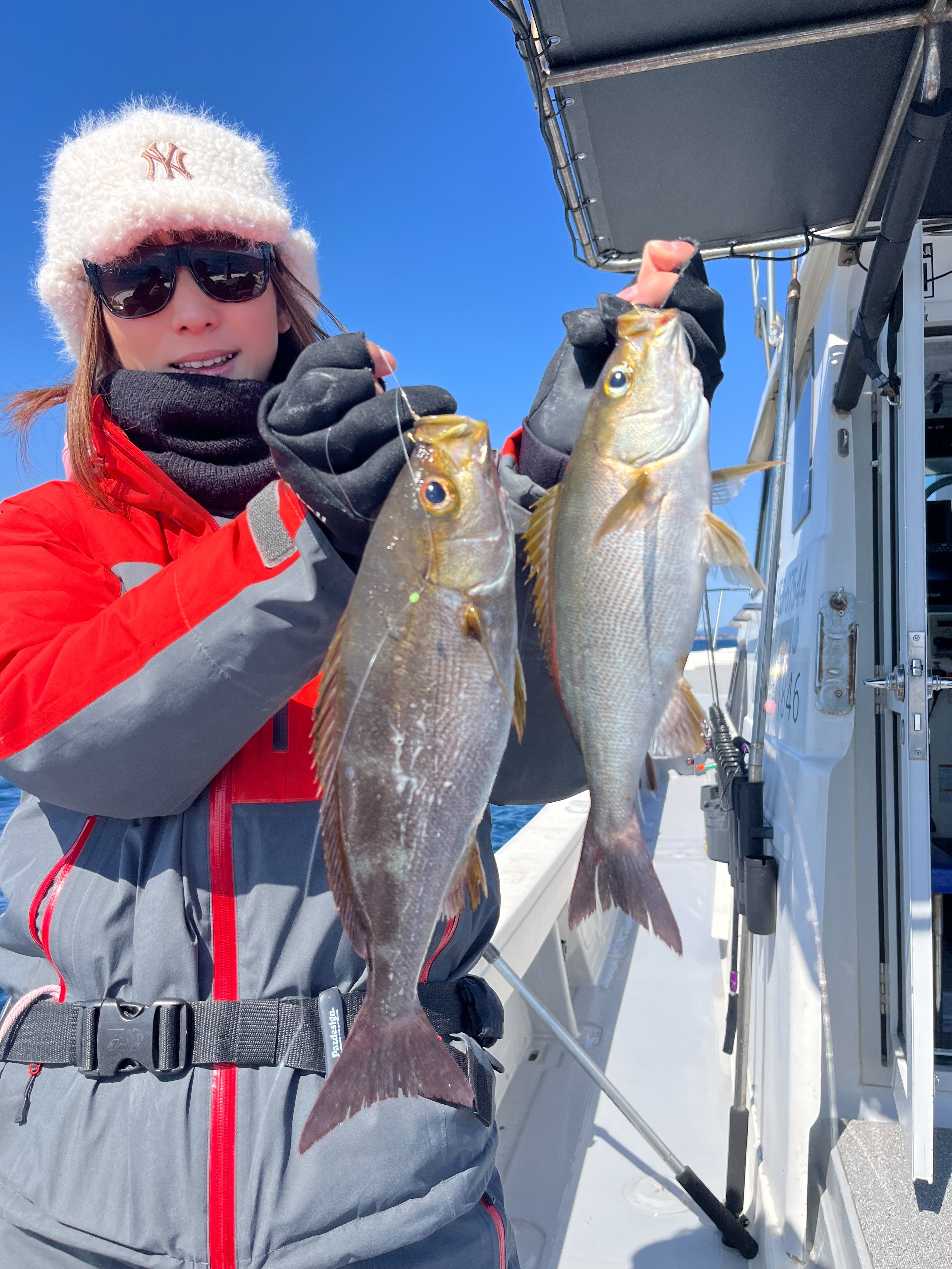 2026.03.16 印刷する ティップラン天秤リレー便🦑🐟️ 魚種 アオリイカ イサギ/イサキ 数 3人で アオリイカ/コウイカ/イサキ/ウマズラハギ/イラ/ボラ 釣り方 ☆ティップラン 船イサキ 場所 三重県 スタッフ 吉田 店舗 中部 岐阜店 釣行日 2026.03.12 コメント こんにちは🙇岐阜店スタッフ吉田です✨ 3/12🗓️三重県は志摩市の遊漁船🛥️R3.(アールスリー)様にてティップラン&天秤便を楽しんできました🐟️ 朝6時に集合し、準備ができしだい出船🌊 まずはティップランから🦑 前日も船中ゼロという釣果だったようですが、、、 この日もやはり渋い💦 黒潮蛇行が終息し、水温がかなり下がってしまってるようで、今年は例年に比べて難しい日が続いています🥲 明確なアタリは1回のみ 同船していた小牧店加納はコウイカをキャッチ🦑 最近はクラゲが多いので、頻繁に回収して、イカに違和感を与えないようにしっかりとっておきましょう(藻も同様です)🪸 午後になり風も収まってきたので、お次は天秤でイサキ狙い🐟️ 船長が反応に当てくれるので、仕掛けを下ろすとダブルヒット❣️❣️ 潮が悪く長い仕掛けだと絡まってしまうので、短めのものを使用しました🌊 同船していた小牧店加納にはウマズラハギ🐟️ 色々釣れて面白いですね🤍🤍 最後に少しティップランをするとほぼクラゲ地獄でしたが、小牧店加納に貴重なアオリイカが!!さすがです👏 時間もかなりオーバーしていたのでここで納竿としました✨ 今回お世話になった遊漁船🛥️R3.(アールスリー)様では、ティップラン、イカメタル、キハダキャスティング、トンジギ、タイラバ、ジギング、餌釣りなどなど色々な釣り物に対応していただけるようなので、皆様もぜひいってみてくださいね✨️ 使用した釣具 ロッド ダイワ エメラルダスEX BOAT 65MLMS-SMT リール ダイワ エアリティ PC LT2500-H ライン PE0.6号、フロロ2.5号
