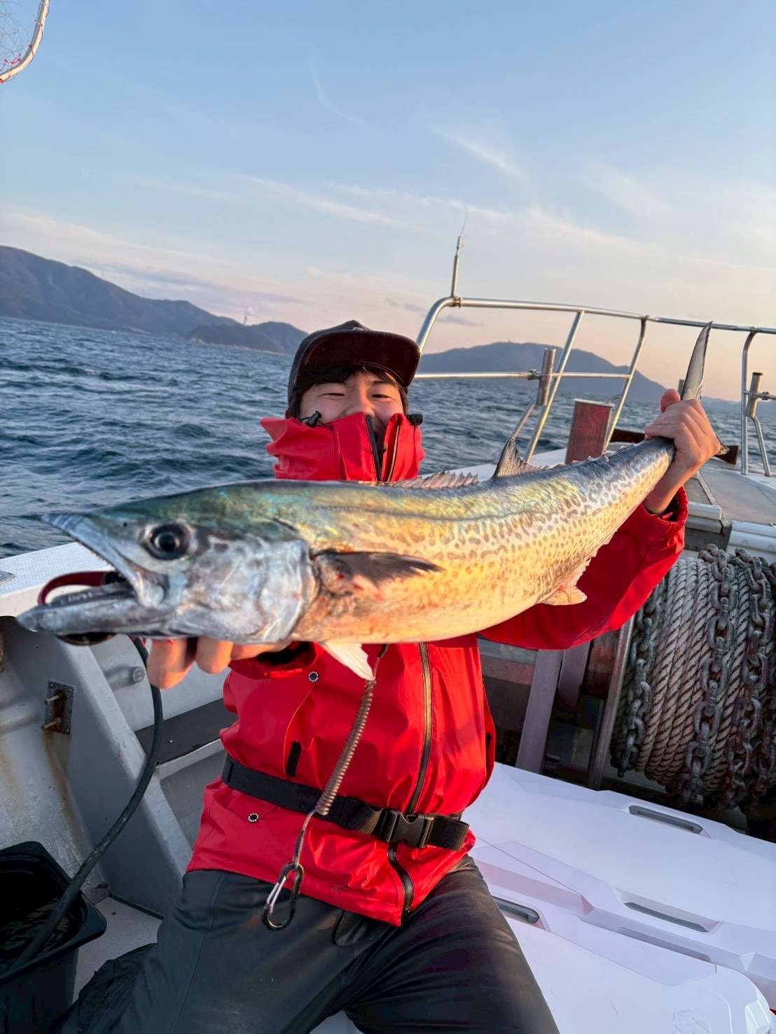 ポイント到着後、開始早々に同船者がサワラをキャッチ。幸先の良いスタートに船内の期待感も一気に高まります。