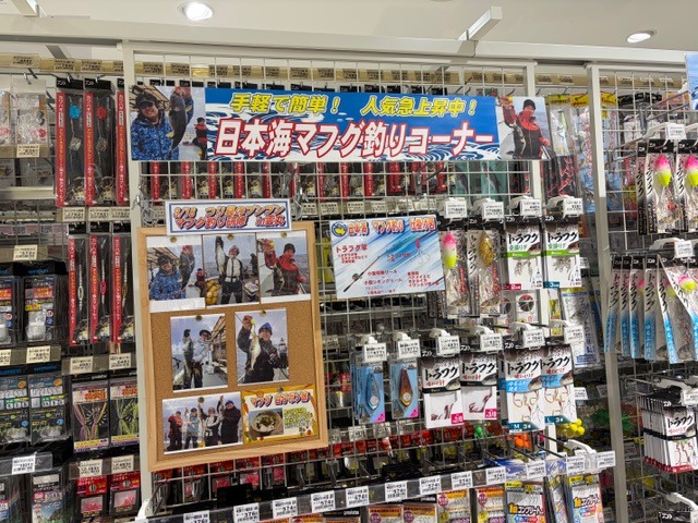 2026.03.23 印刷する 日本海マフグ釣り研修へ 魚種 フグ 数 マフグ*14匹 釣り方 ☆その他船釣り 天候 曇りのち雨 スタッフ 平山 武 店舗 リンクスウメダ店 釣行日 2026.03.18 コメント 最近流行りのターゲット、日本海マフグ狙いへ行ってまいりました! 今回はブンブン各店から研修という形で7名が参戦。 ほとんどのスタッフが初挑戦となります。 釣果は出ますでしょうか! 今回お世話になったのは小浜・雲丸さん。 イカメタルやカワハギなど様々な釣種を狙わせてくれる頼もしい船です ここ数年各地でトラフグ釣果が盛り上がりを見せていますが、それに負けないほどの盛り上がりを見せているのが今回のターゲットマフグ! トラフグがフグの王様と呼ばれるのに対し、マフグはフグの女王と呼ばれる高級魚! そのマフグが数を狙えるというのですから期待も膨らみます。 集合は朝の8時ということで、ゆっくり自宅を出発し無事に小浜に到着。 昼近くから雨の予報なのでレインウェアをしっかり着込み出船! ポイントまでは約1時間半。軽く睡眠をとり釣りに備えます。 ポイントに到着し、船長が反応の濃いエリアを探します。 良い反応が出たところで釣りスタート! 仕掛けはトラフグ仕掛をそのまま流用できるとの事。 今回は60号のオモリにオフセットフックを3本取り付けた仕掛で挑戦することに。 餌はスーパーで特売になっていたバナメイエビ。事前に殻をむいておきました。 しっぽの部分をハサミでカットし、オフセットフックにできるだけまっすぐになるよう餌を付けます。 反応のある指示ダナ付近をイカメタルの誘いを入れるように動きと止めを付けてアクションさせます。 しばらくするとコツコツッとした小さな当たり。 そのまま仕掛けを止めているとゴゴッと大きな当たりが出るのでそこが 合わせのタイミング! 口が堅いのでしっかり合わせを入れると小気味よいドスンとした重量感! 慎重に上げてくると本命マフグです! これは楽しい! 周りでも続々HITコール。 予報通り雨が降ってきて、反応の鈍い時間もありましたが最終14匹と大満足の釣果! 雲丸さんでは釣り上げたフグを10匹まで冷凍したマフグと一匹200円の捌き代を支払い交換という形が取れます。 大量のフグを捌く時間が短縮できますし、フグを捌く当てのない人には便利なサービスです! 捌く当てがある人はそのまま持ち帰りもOK! 釣って楽しい、食べて美味しいマフグ狙ってみませんか? リンクス梅田店では日本海マフグコーナー増設! 分からないことがありましたら、スタッフ平山までお声掛けください! 雲丸船長色々お世話になりました! 使用した釣具 ロッド ダイワ 極鋭タチウオテンヤSP197 リール ダイワ シーボーグLTD 200JL