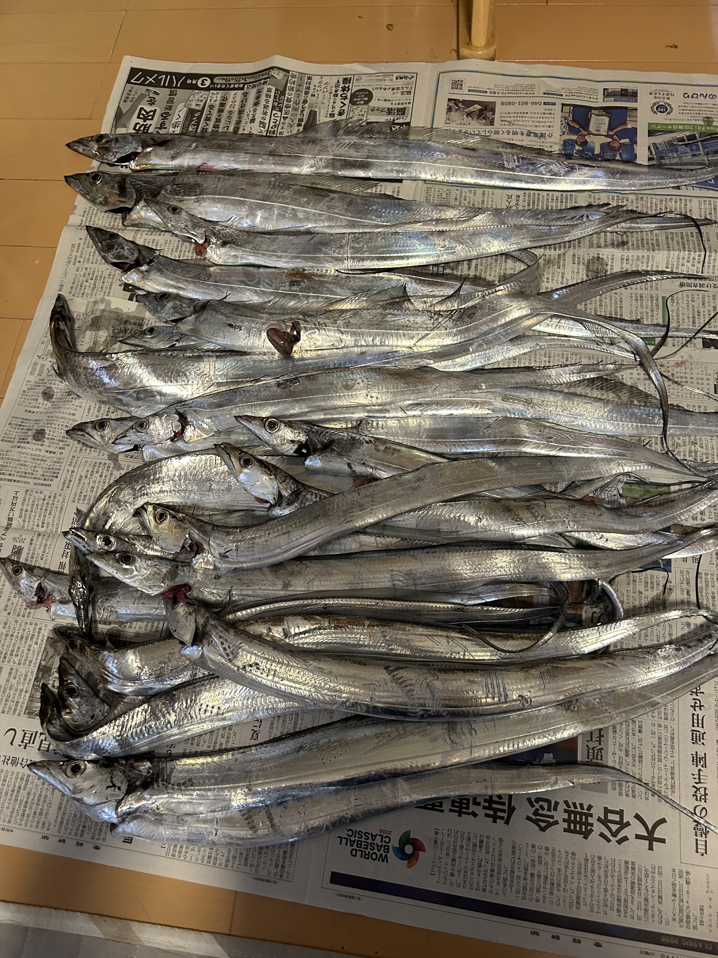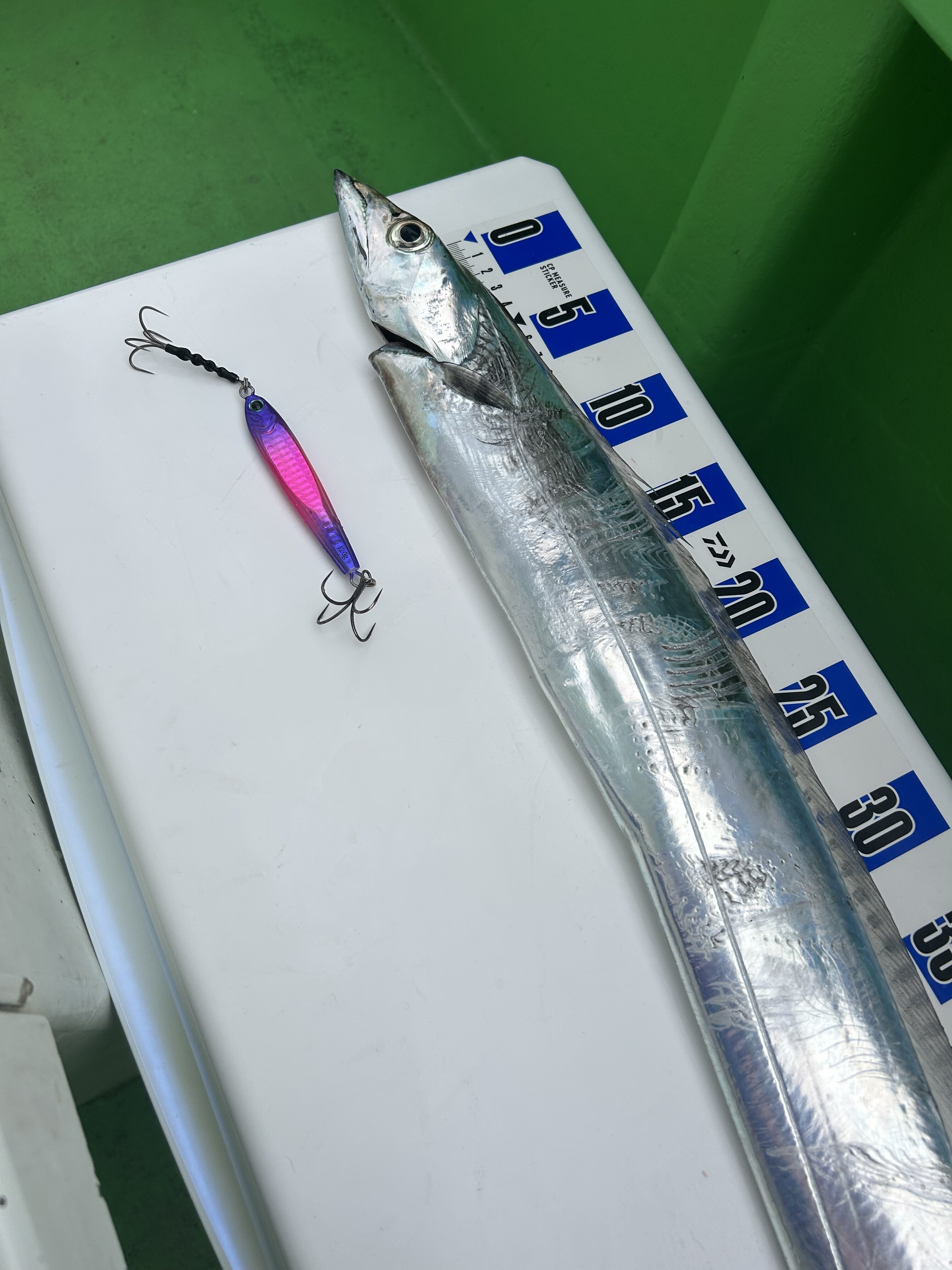 70センチほどのタチウオ、小ぶりですが嬉しい一匹目です!