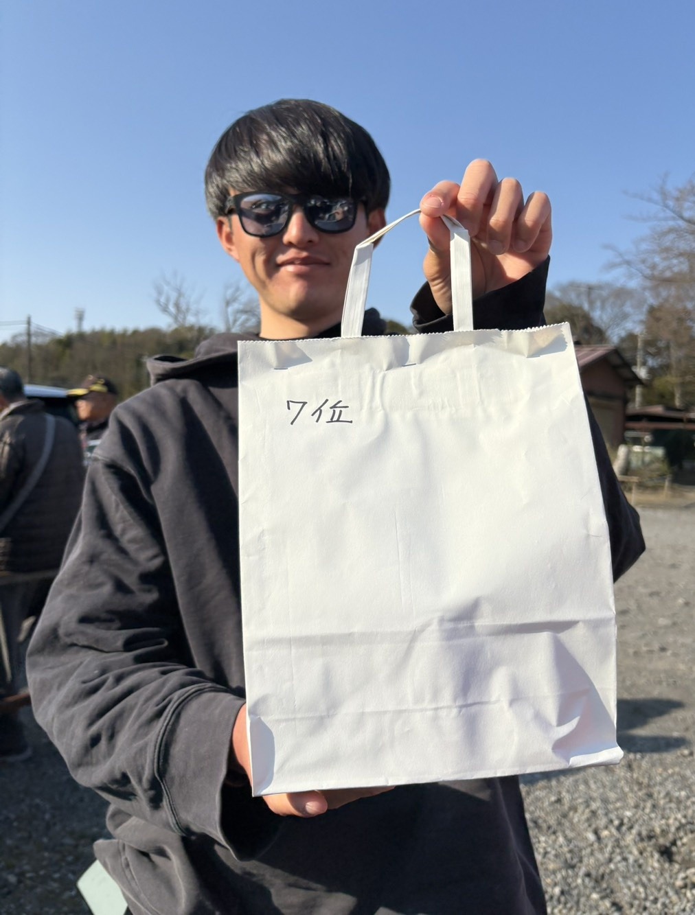 2026.03.27 印刷する 例会にゲスト参戦!inさくら湖 魚種 ヘラブナ 数 11枚(8.7kg) 場所 千葉県 天候 晴れ スタッフ 三井武蔵 店舗 柏店 釣行日 2026.03.21 コメント こんにちは!柏店三井です! 今回は柏店中村主任が所属するTEAM韋駄天の例会にゲスト参戦させていただきました! まずは座席抽選!周囲からのヘチ引きの期待が高まりますが、結果は手前から4番目!まだまだヘチパワーが足りないようです笑 雰囲気にヒヨって12尺のタナ1本半でエサ打ちスタート!笑浮子はもちろん風馬Type-Sです! 試釣の時と違って動き出しはかなり遅め。 お隣のD前さんはチョーチンセットでロケットスタート! 周りを見てもチョーチンがかなり良さそうです! 浅ダナも尻上がりに良くなり、だんだんタナを上げていって最終的に80cmでペースが安定します👍️ お昼休憩を挟み、浅ダナ続行! 午前中とは打って変わって魚の雰囲気が薄くなっており、タナを徐々に落として1本半ぐらいに。 風と流れも出だして落とし込みが定まらないため、浮子のサイズも風馬Type-Sの2番から3番に上げました。 午後はセッティングをうまく合わせきれず失速……ここでの引き出しの少なさが課題です。 最終釣果は11枚で納竿。 午前中に良型連発したこともあり、順位は第7位となりました! 更に上位を目指して今後も精進して参ります💪 使用した釣具 釣竿 シマノ:飛天弓柳 12尺 浮子 風馬Type-S