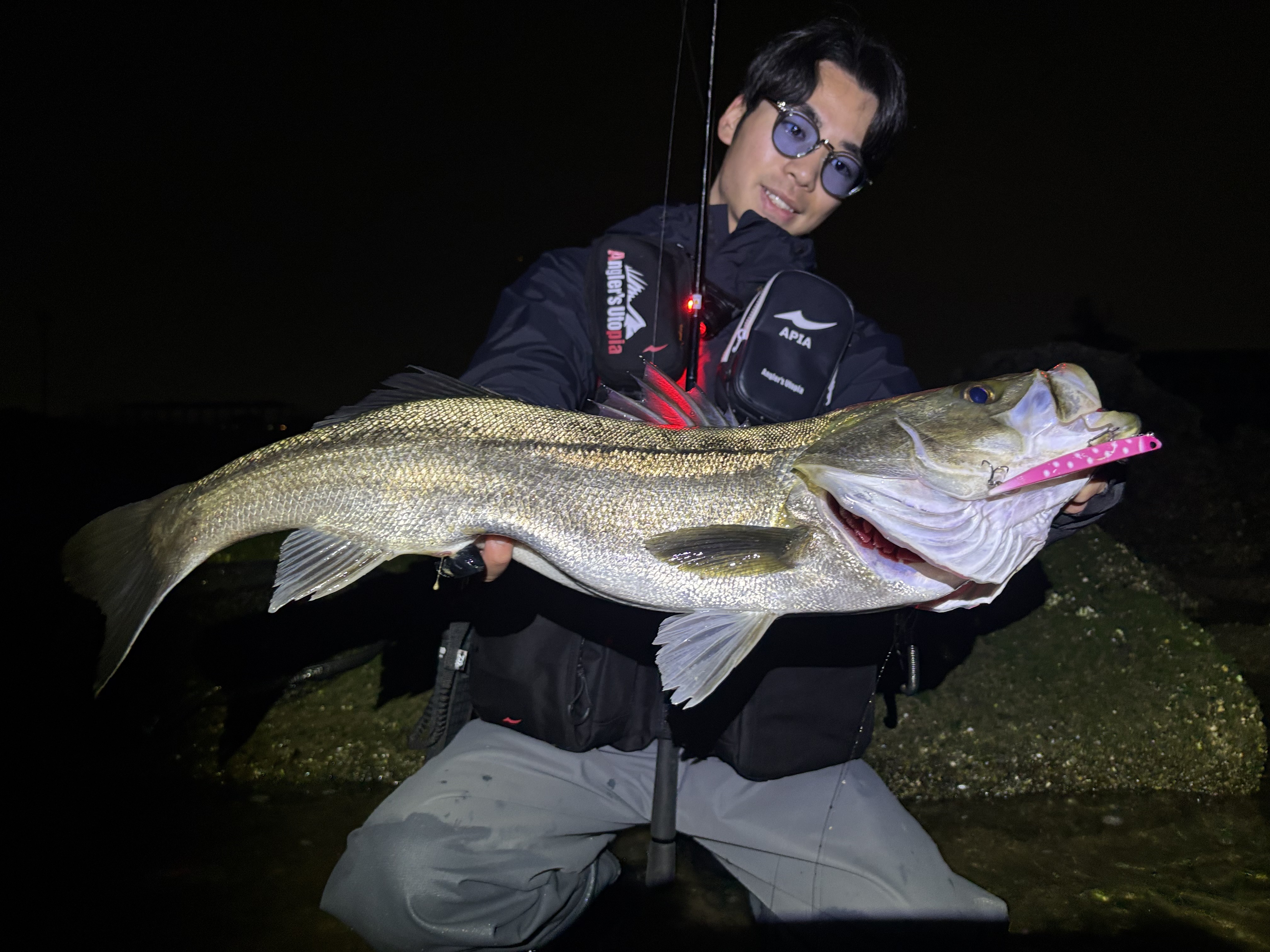 2026.03.30 印刷する バチ抜け調査① 魚種 シーバス/スズキ サイズ 70センチ 数 シーバス2匹 釣り方 ☆シーバス 場所 大阪府 兵庫県 スタッフ 木村直哉 店舗 高槻店 釣行日 2026.03.24 コメント こんにちは😃 高槻店の木村です! 今回も大阪湾のバチ抜け調査にやってきました! 前日と同じ夕マズメにエントリー、バチ抜けを待ちます。 日が落ち切ったタイミングで表層にバチらしき波紋がチラホラ、最盛期には遠いですがしっかり抜けてますね👍 まずはいつも通りマニック115を大遠投で広範囲を探ります。するとすぐヒット!しかしまだシーズン序盤ということもあり、吸い込みが弱いのか、エラ洗い一発でフックアウト… 2回バラシが続いたのち、しっかりした当たりが! 70アップのいい個体!ガッチリ食ってくれました! その後、表層に泳いでいるバチがほぼ見えなくなり表層1枚入るルアーへシフトチェンジすると小さいですが追加で釣れてくれました😊 まだまだシーズン序盤のバチパターン!フックやラインセッティングを見直して調査したいと思います! それではまた! 使用した釣具 ロッド セブンセンス MSS-962 リール 22イグジスト LT4000XH