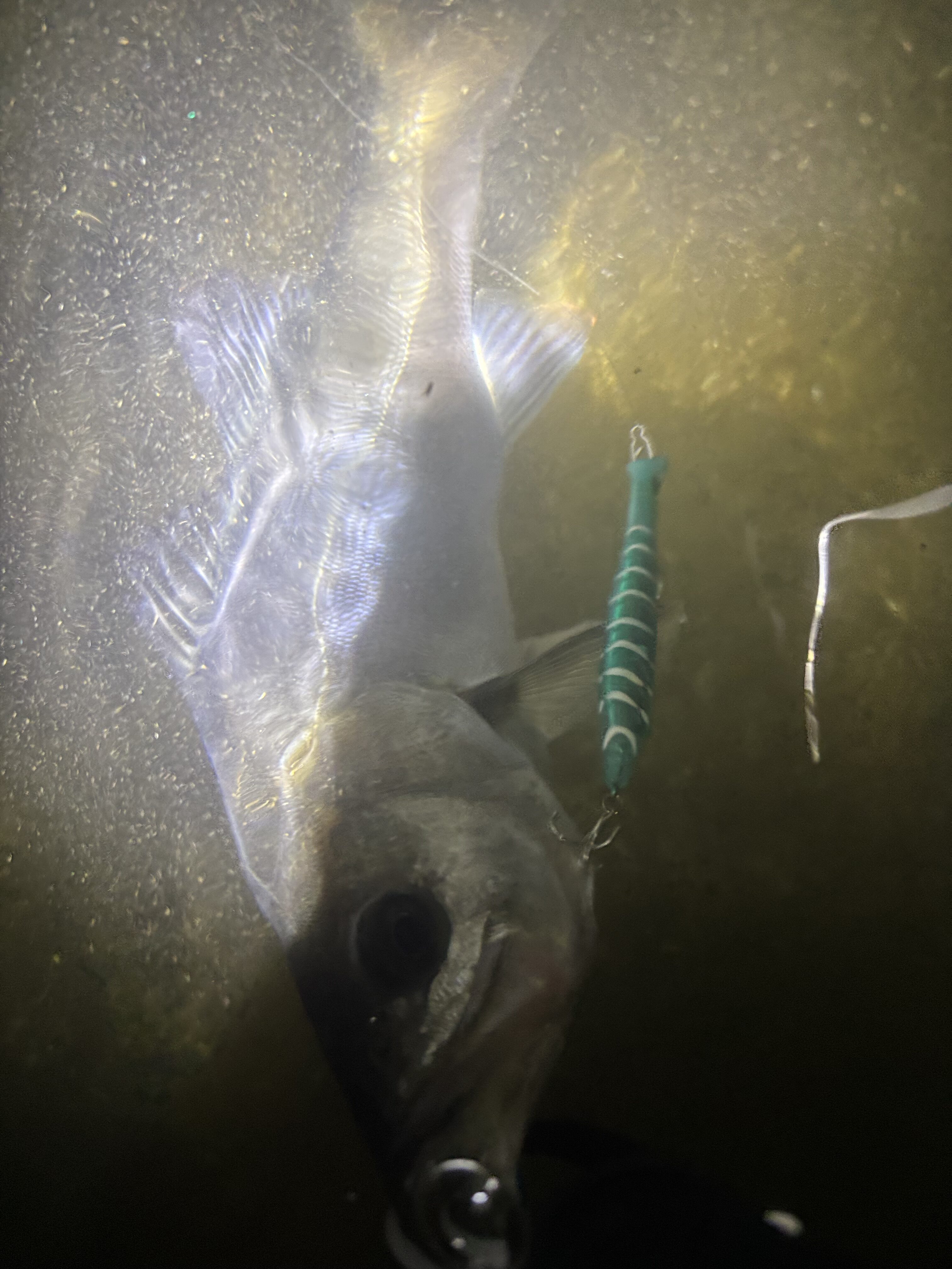 その後、表層に泳いでいるバチがほぼ見えなくなり表層1枚入るルアーへシフトチェンジすると小さいですが追加で釣れてくれました😊