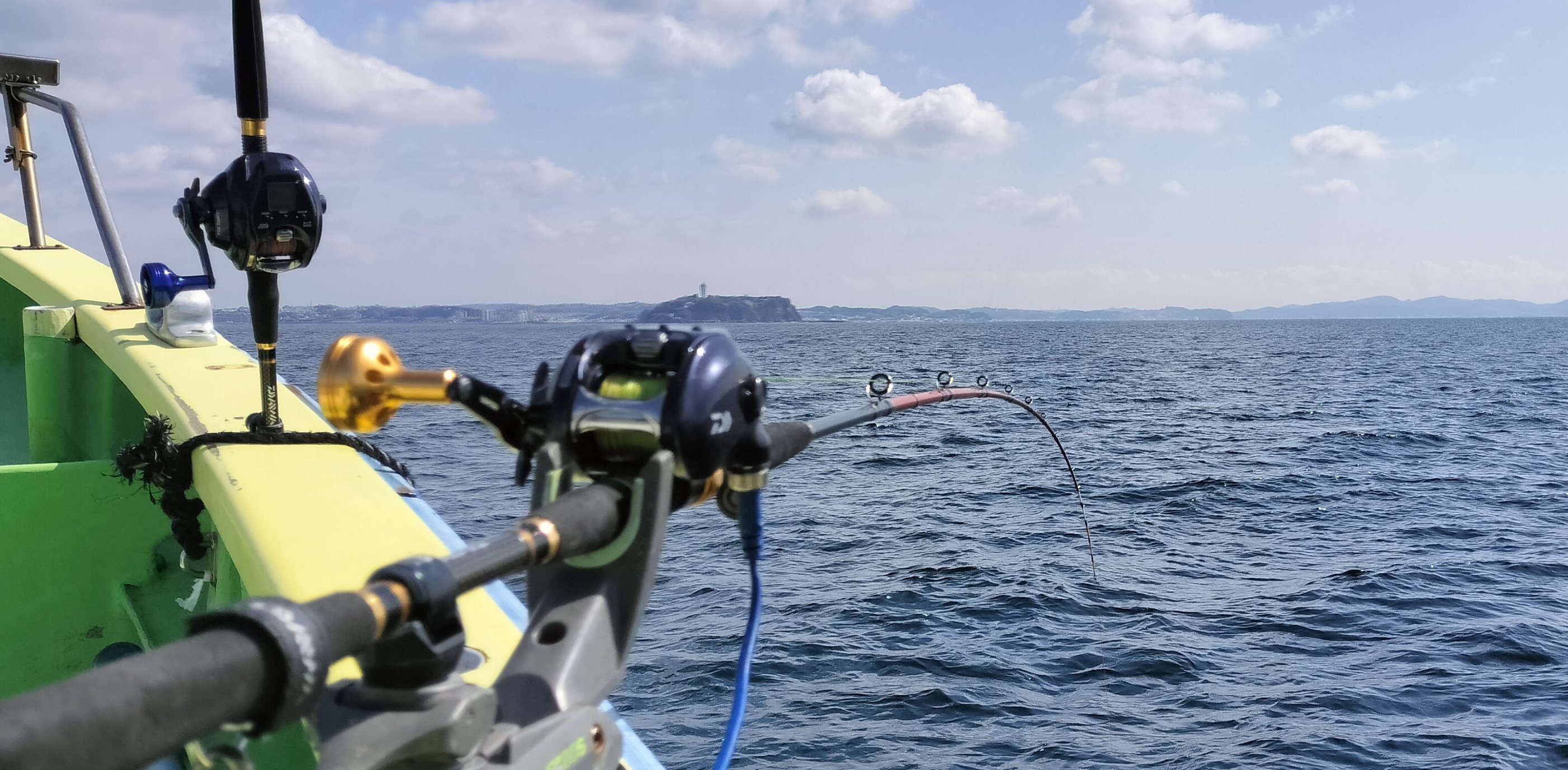 しつこい様ですが、今回のボウズも柔らかいロッドの方でした。終始、頑張って手持ちで誘っても、ロッドやラインスラッグ(糸フケ)が誘いを吸収してしまって100m先にある仕掛けは釣り人の思う通りの動きをしておらず、アマダイへのアピールが足りなかった事が原因と思われます。