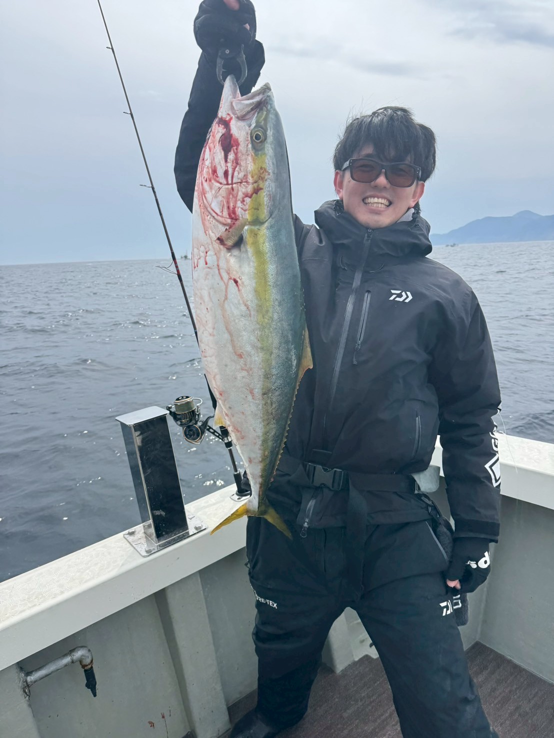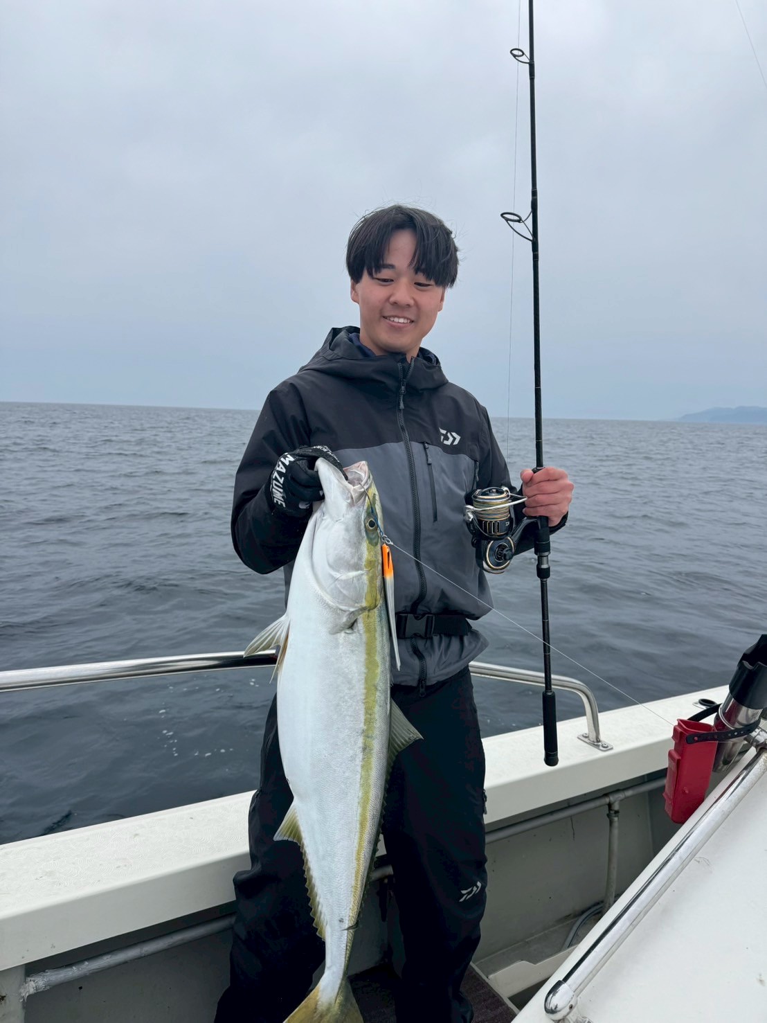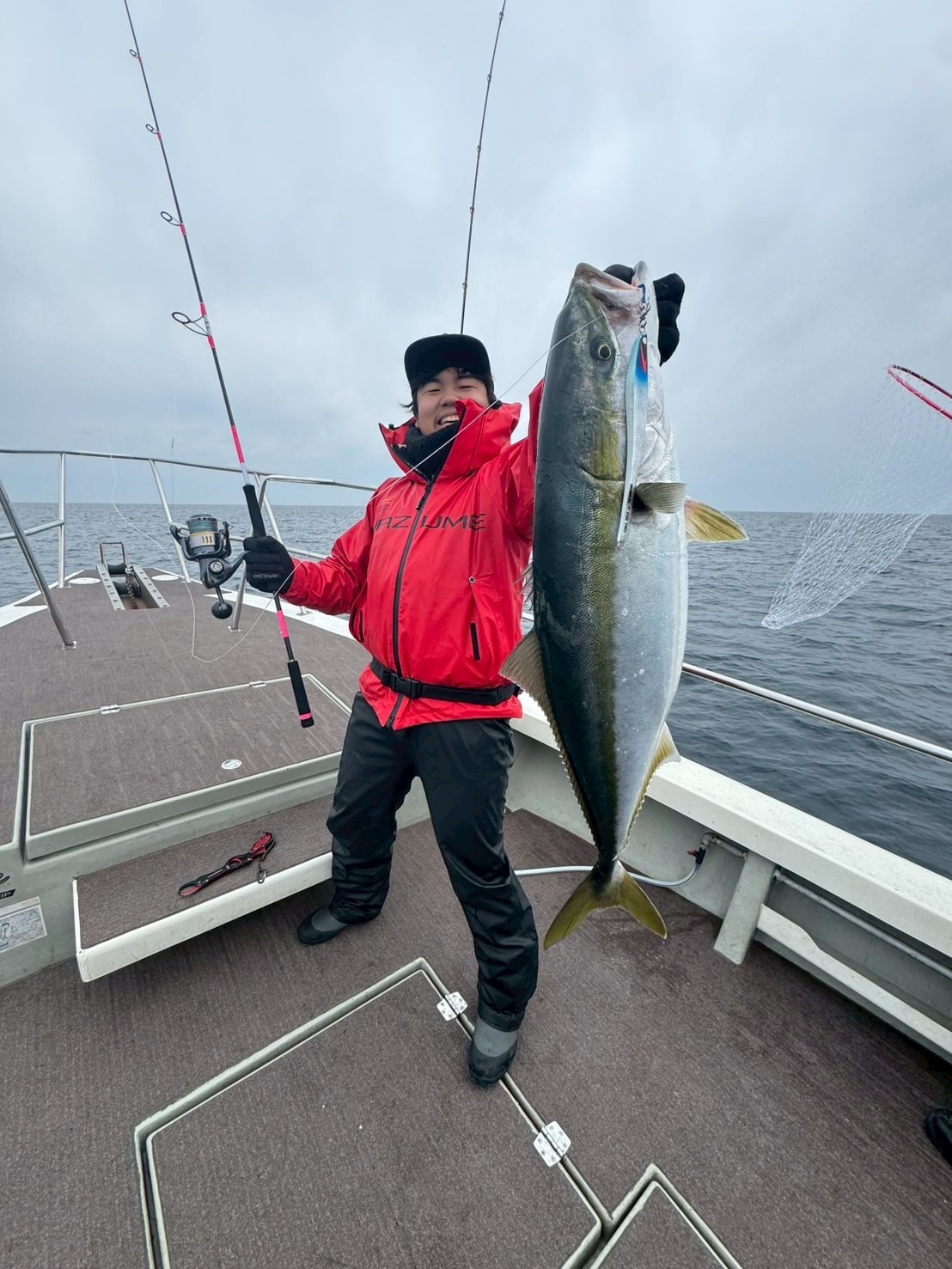 昼過ぎからは風が吹き始め、船内また鰤がヒットし始める。
