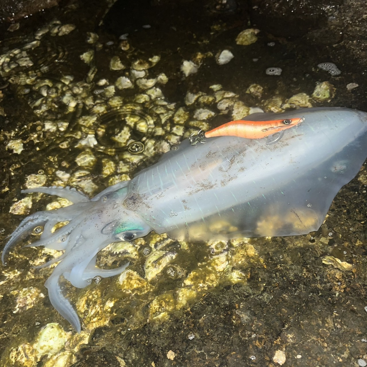 夕まずめは磯へエントリー、潮がいい感じに動いており、雰囲気ムンムン🦑