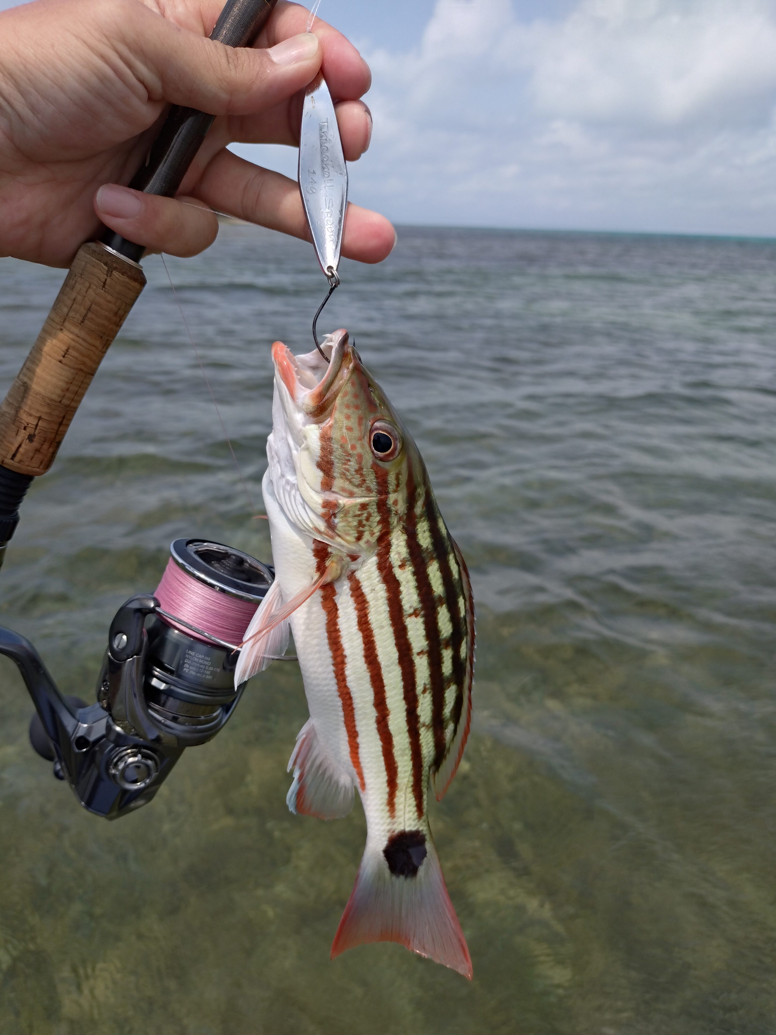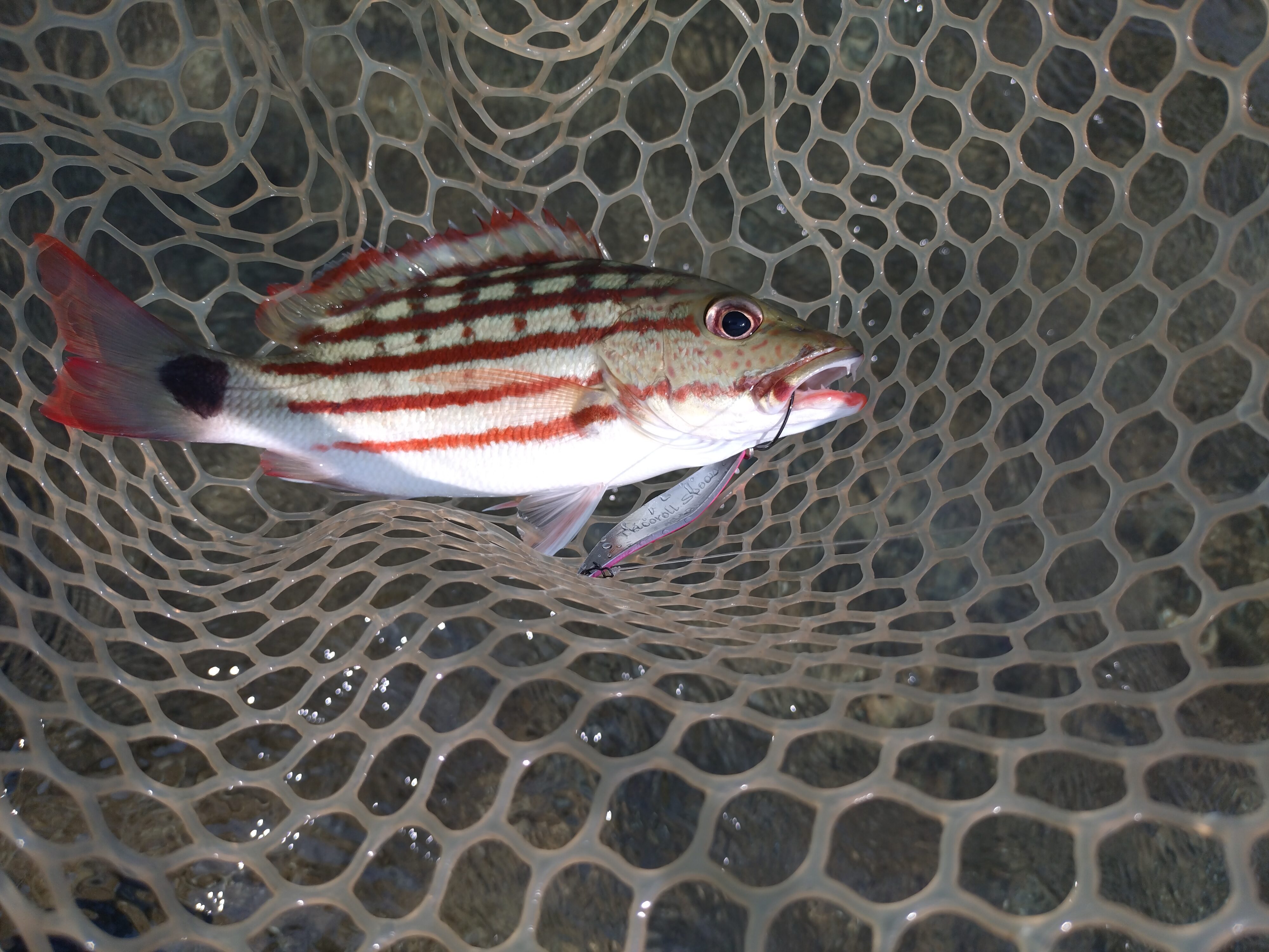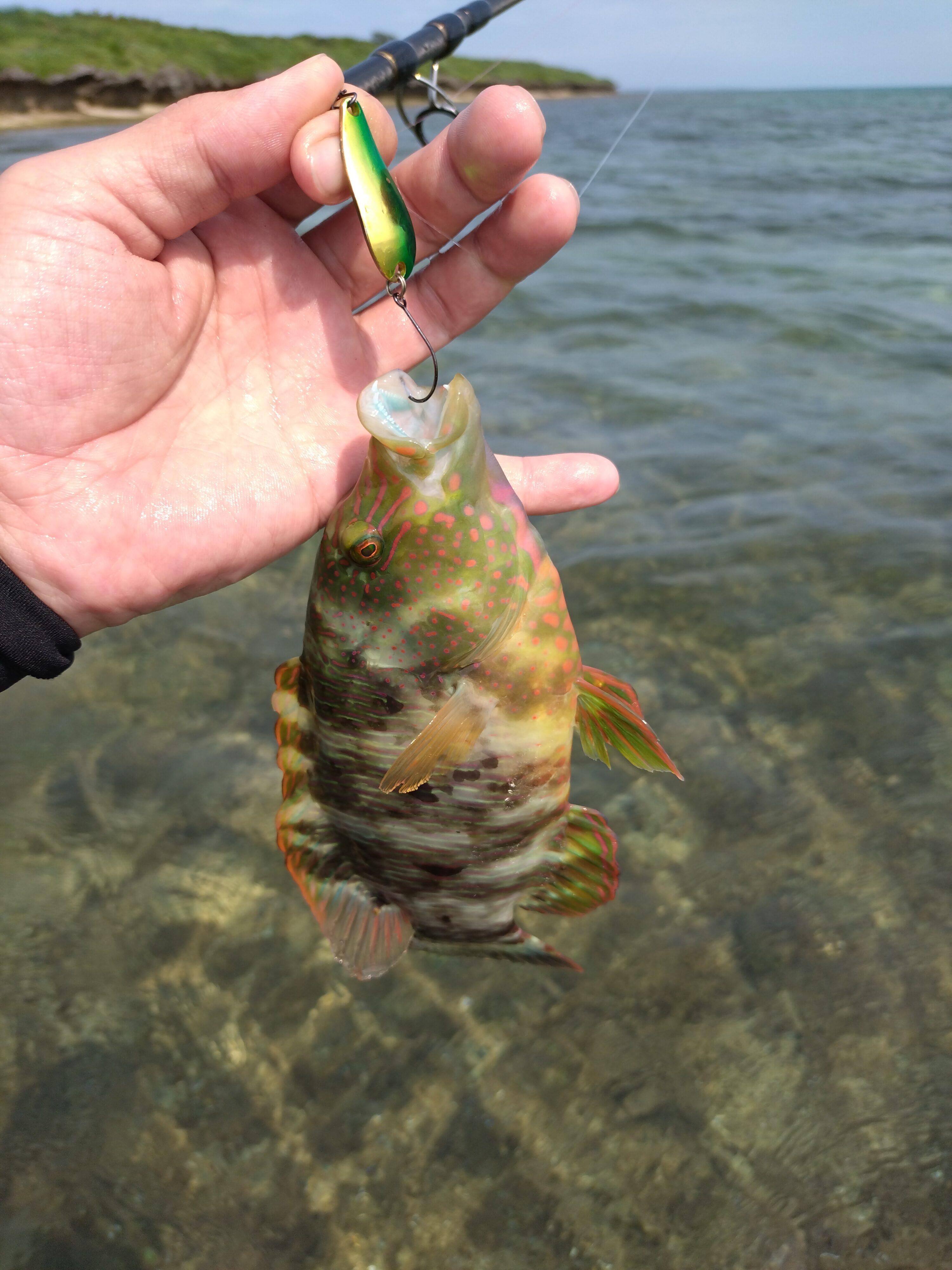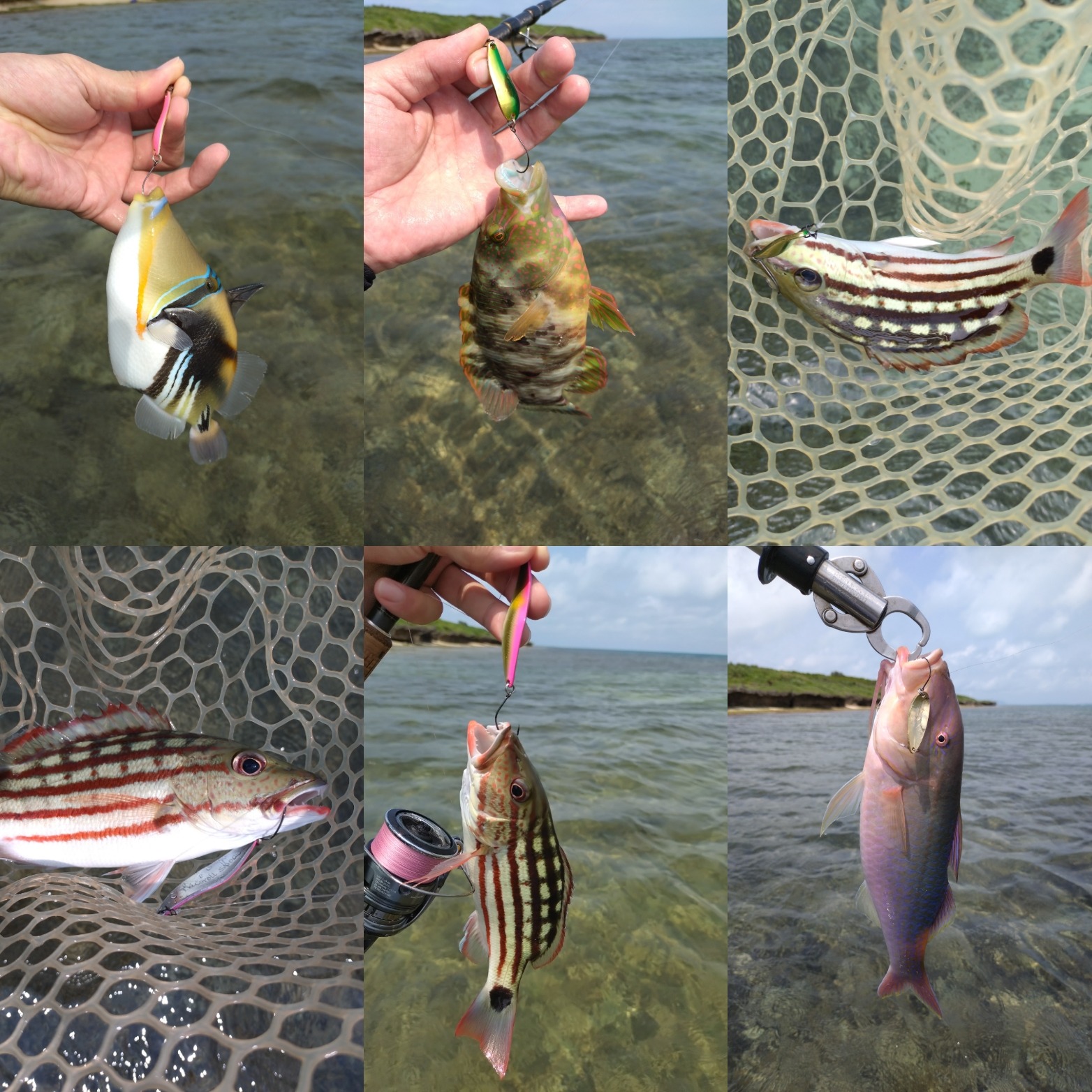 2026.04.01 印刷する 石垣島遠征DAY4 黒島リーフフィッシング 魚種 その他 サイズ 20cm~30cm 数 アミメフエダイ/5匹 イソフエフキ/4匹 キツネフエフキ/1匹 ミツバモチノウオ/1匹 釣り方 ☆その他SWルアー 場所 沖縄県 スタッフ 沼田武志 店舗 埼玉狭山店 釣行日 2026.03.28 コメント こんにちは狭山店沼田です この日は石垣島からフェリーで25分ほどで行ける黒島へ、リーフフィッシングへ行ってきました。 往復で¥3,000程で今回は時間の都合で行きは八重山観光フェリー帰りは安栄観光フェリーを利用しました。 黒島は牛の島と言われるぐらいで人口より牛が多い島です。 港に着いてすぐレンタサイクル屋さんがあるので自転車を借りてすぐに出発。(4時間¥1,300でした) 潮の高さによりポイントは変わりますがお昼に最干潮で50cm以下になる下げがお勧めです それぐらいだとちょうど膝下ぐらいの水深でちょうど魚の多いリーフエリアを攻めることが出来ます ルアーはスプーンの5~10gでフックを太めのシングルに変えます。 タマンなどのフエフキ系を狙う場合でしたら15~20gの流れに強い本流トラウト系のスプーンがお勧めです。 いいサイズがヒットするも一瞬でフックを伸ばされバラシてしまいました そのほかシンキングペンシルでフォールを多用するのもフエフキ系にはお勧めです。 9時から13時の短時間釣行でしたが十分な釣果を得ることが出来たので大満足の釣行でした。 石垣島にもリーフフィッシングが出来るところはたくさんありますが魚影の濃さは黒島の方が段違いです。 今回もパックロッドと小さなケース一つで行ける釣りですので興味のある方は挑戦してみてはいかがでしょうか。 使用した釣具 ロッド ディアモンスター MX7S リール ツインパワーC5000XG ライン ピットブル8+ 1,5