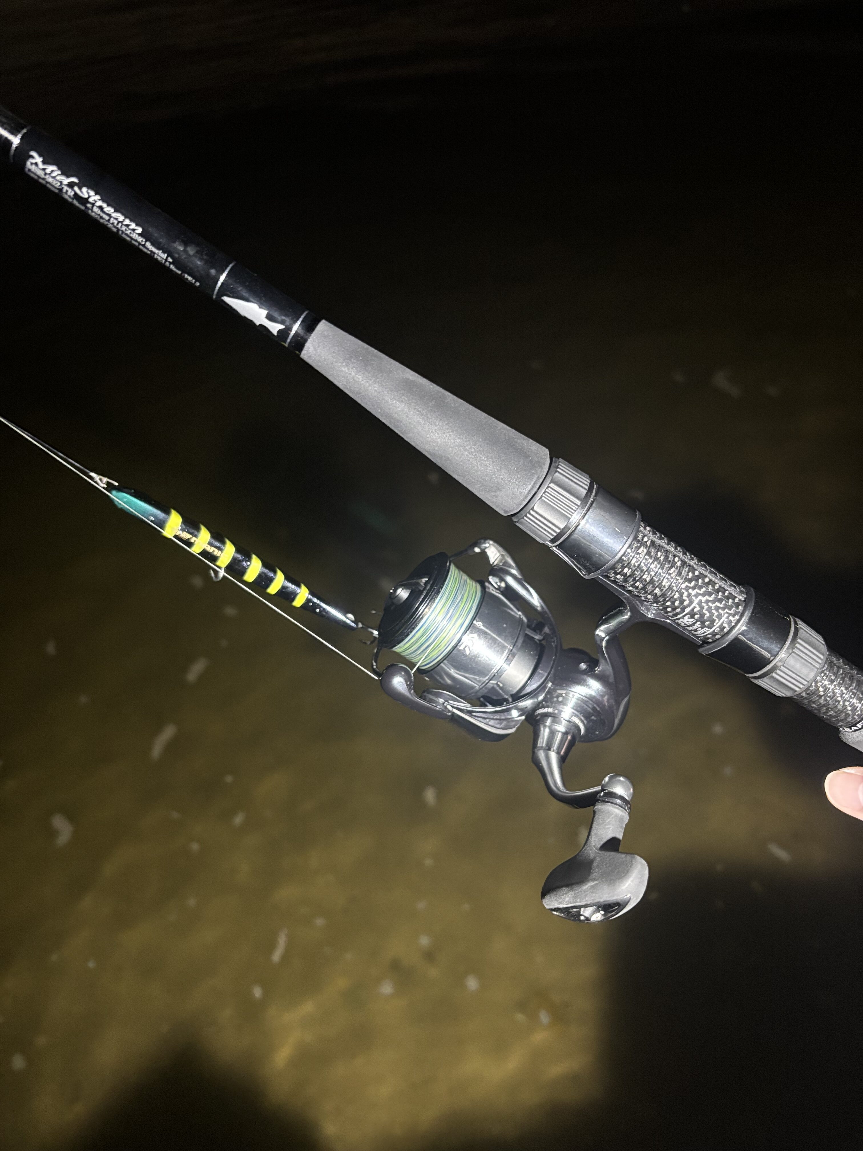 今回の釣行は爆風のため風裏のエリアを探してのエントリー、遠浅のサーフで流心が遠いためいつもよりラインを細くしメインライン0.6号リーダー2.5号のセッティングで臨みます!