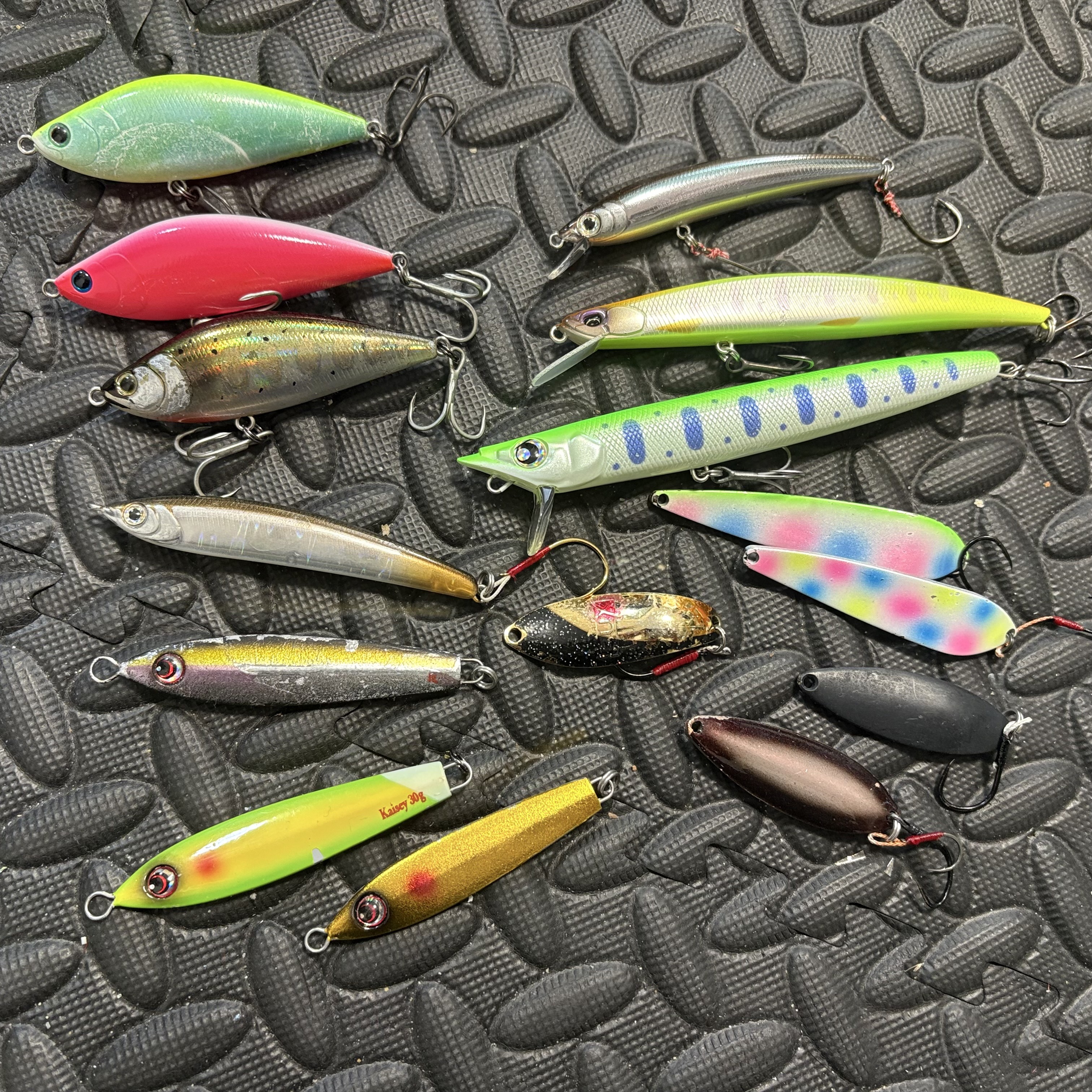 - シンキングシャッド70、MTボルツ130、MTレイクス16~19g、ノアG8~14g、政影スリム120F、パニッシュ85F、ヘブン13g、トラウティンサージャー、海晴レイクスペシャル18~30g、バックス8~11g、モーダグラマー18g