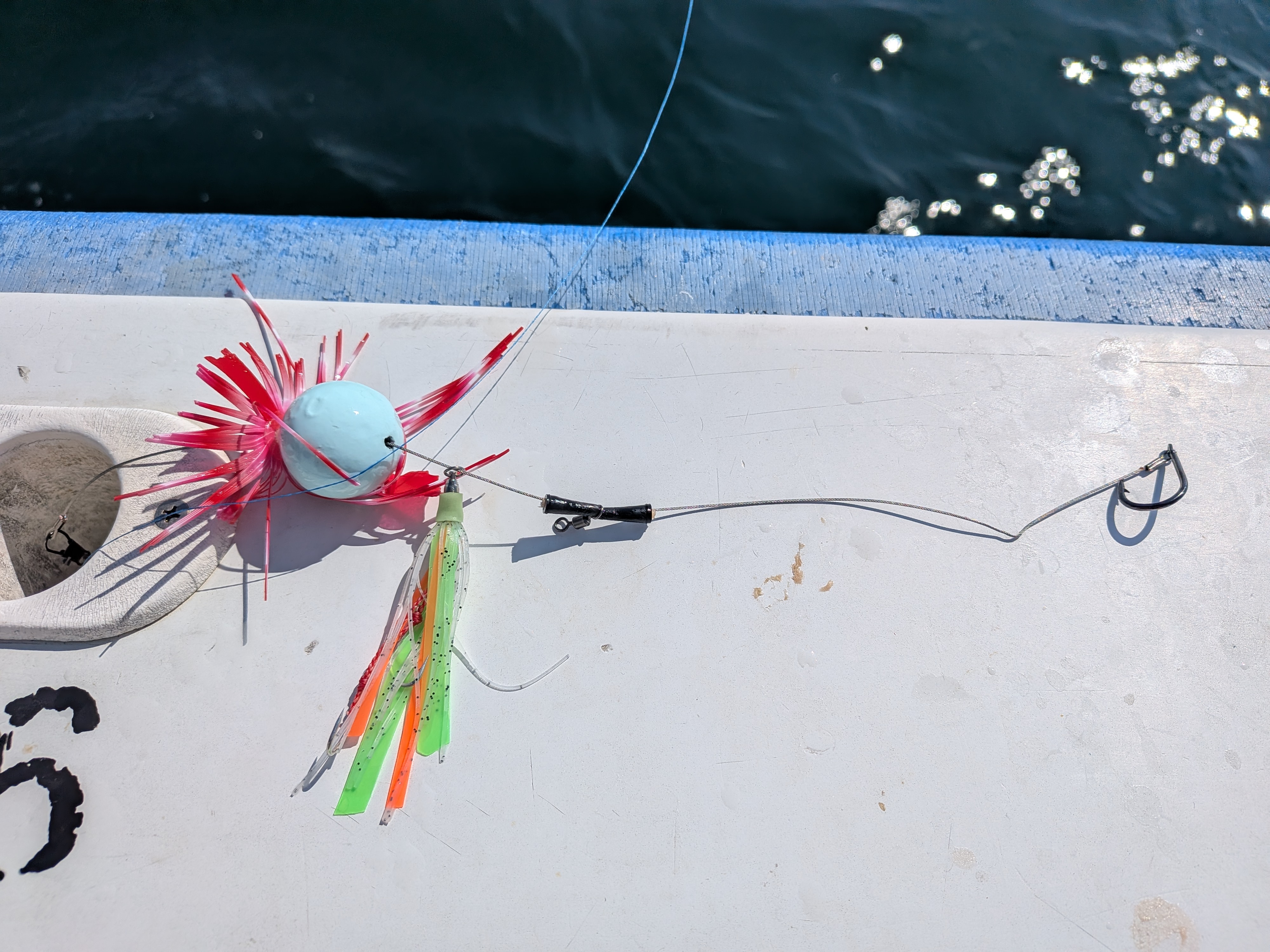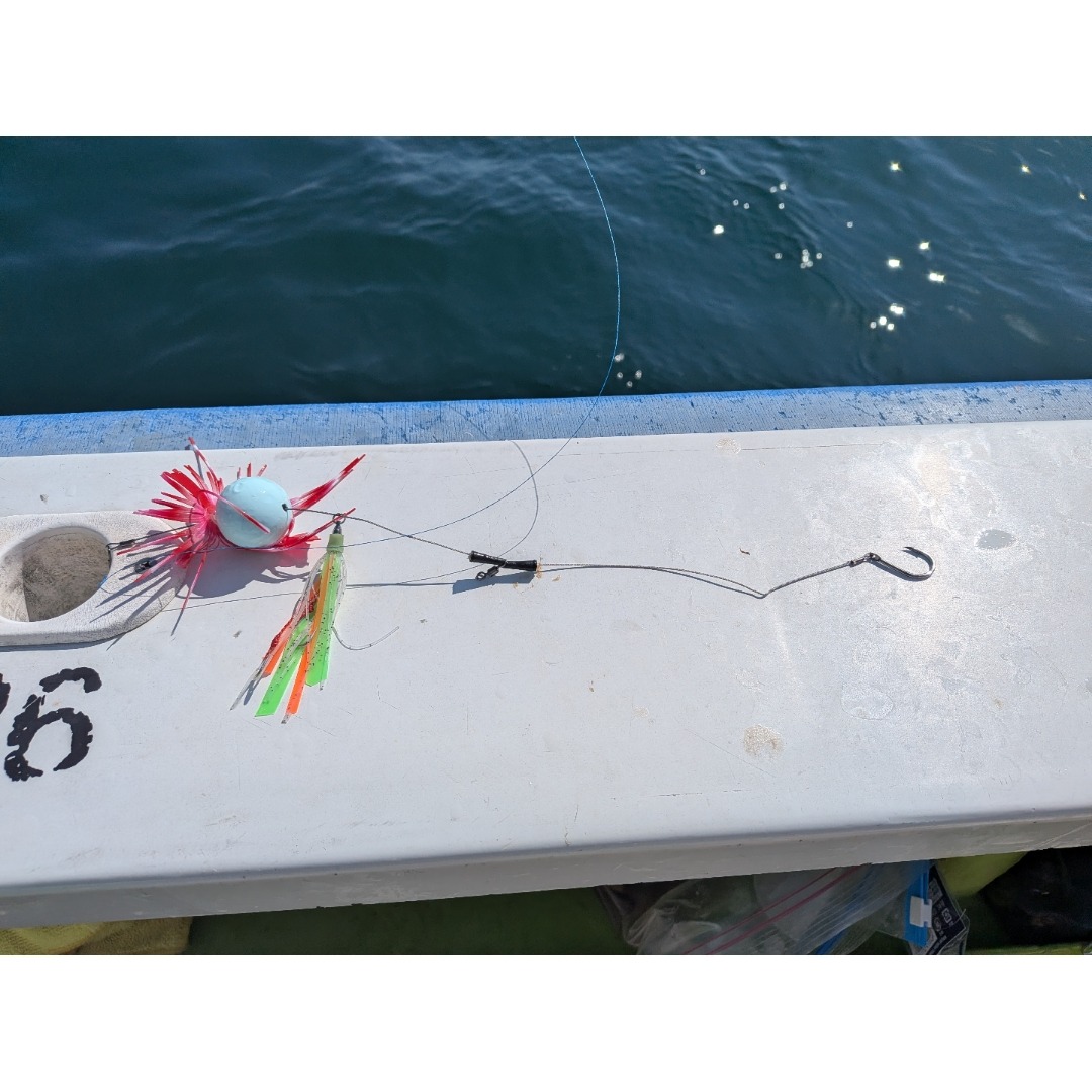 今回私が使用したのは石鯛仕掛け。30cmのものにうき止めゴムで錘を調整して…と針は小さいですが頑丈でワイヤーも丈夫‼️