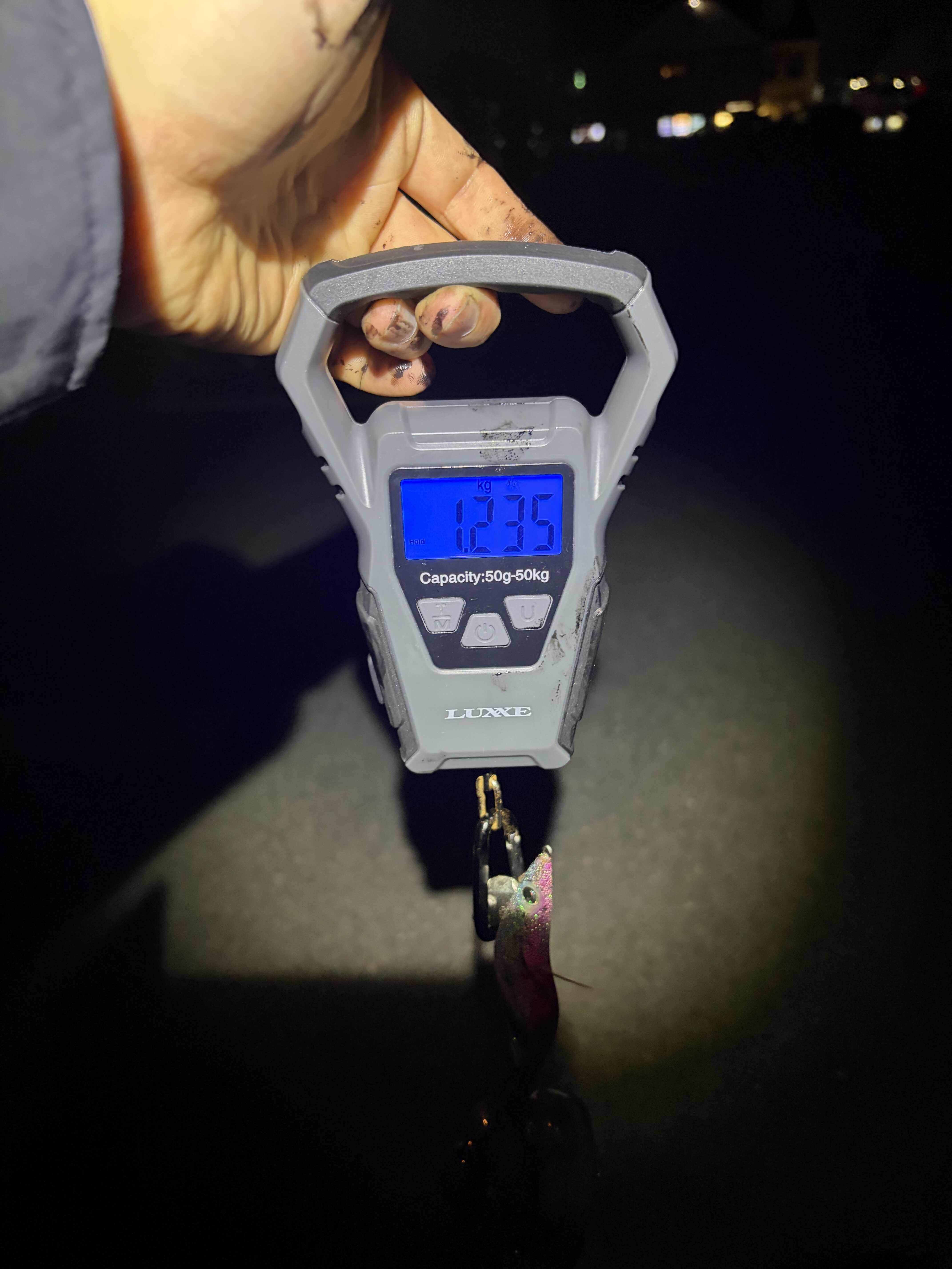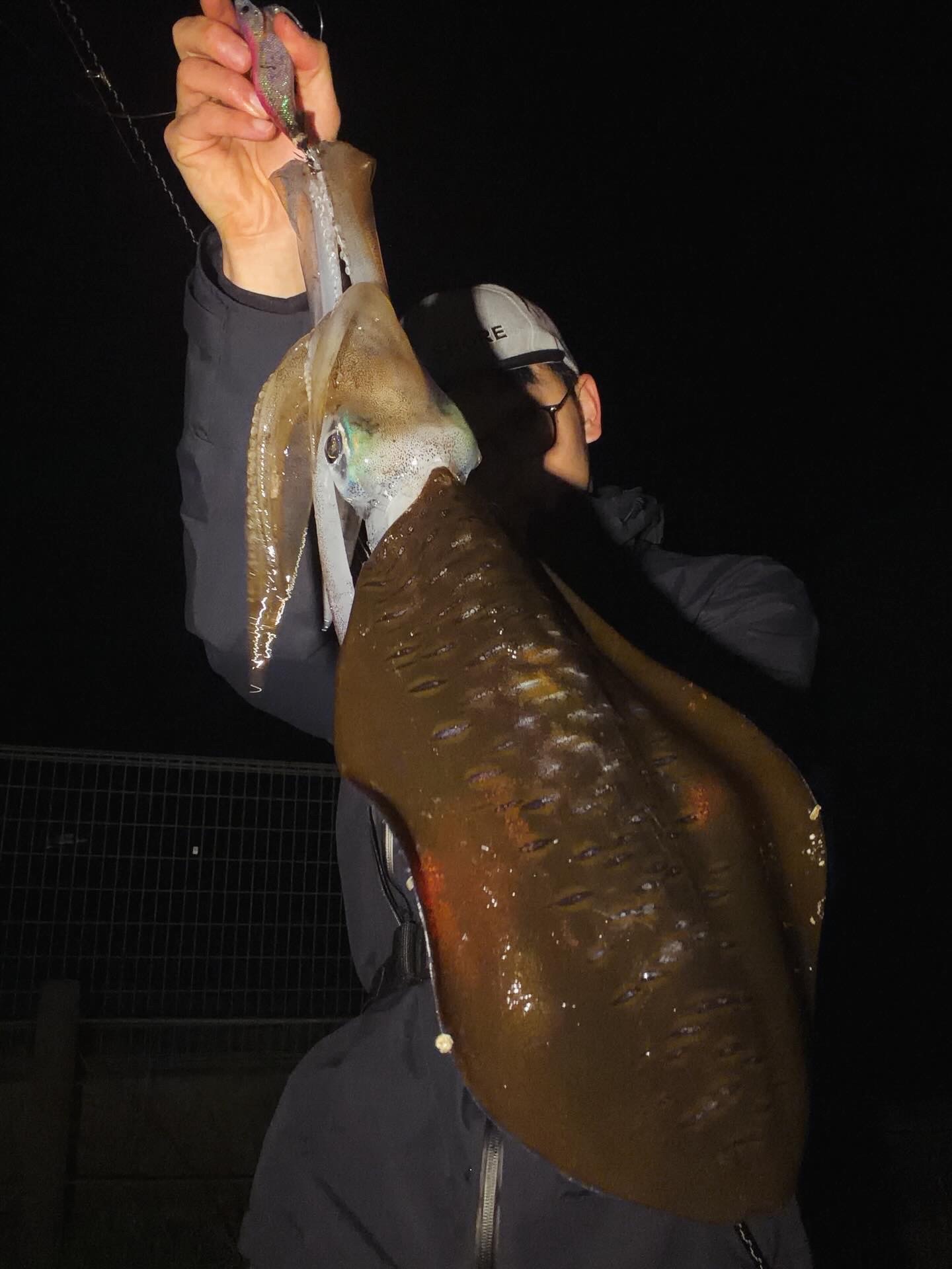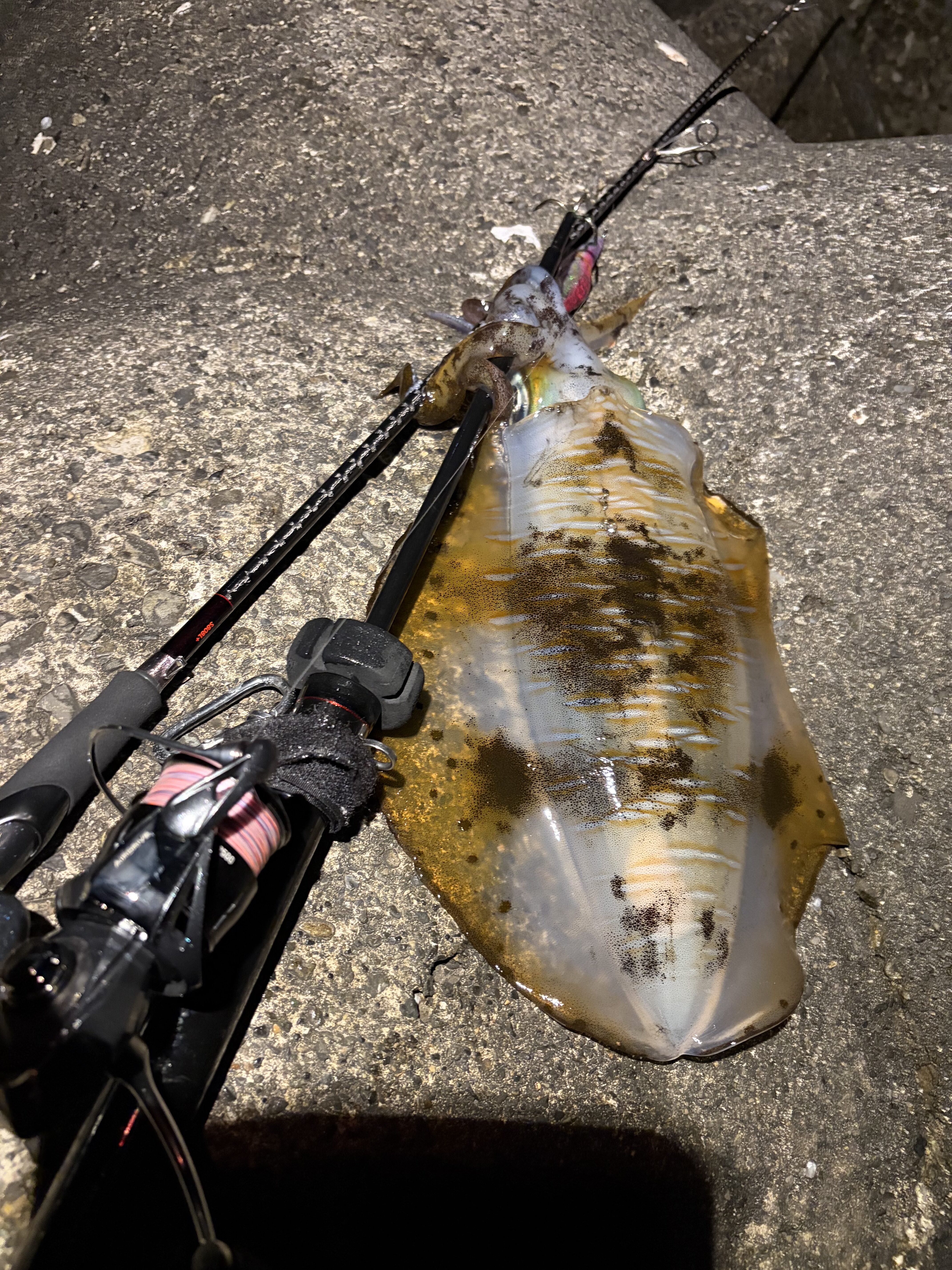 2026.04.07 印刷する 伊豆春爆エギング 魚種 アオリイカ 数 アオリイカ1235g 釣り方 ☆エギング 場所 静岡県 スタッフ 今中颯 店舗 イオン相模原店 釣行日 2026.04.06 コメント お疲れ様です。相模原店今中です。 今日も今日とて、仕事終わりにナイトエギングに行ってきました。 前回 、700弱が釣れたポイントへ。前回は夜中の潮止まり前にヒットしたので、今回は潮止まり直後のタイミングに行ってきました。 夜中の1時半に着き、潮止まりから1時間程経過したところでエントリー。 月明かりで明るかったので赤テープのエギは使わず、ケイムラのエギ王ムラムラチェリーをキャスト。 今回も潮は流れており、波もあったのでなかなかアタリが分かりにくい状況。 底まで落として、3、4回シャクリをいれてテンションフォールをした後… 波ではないモゾモゾした違和感があり、 合わせるとヒット‼️ ドラグがかなり出ましたが、数分で上がって来たのは1235gの春イカ‼️ かなり前からエギングをしていますがキロオーバーを釣ったのは今回が初めてでした。 やはり潮止まり前後が良い説はあるかもしれません。 かなり春イカは忍耐との勝負ですが、行かれる際は潮止まり前後に是非注力してみてください‼️ 使用した釣具 ロッド 17セフィアエクスチューン808L+ リール 24セルテートLT2500