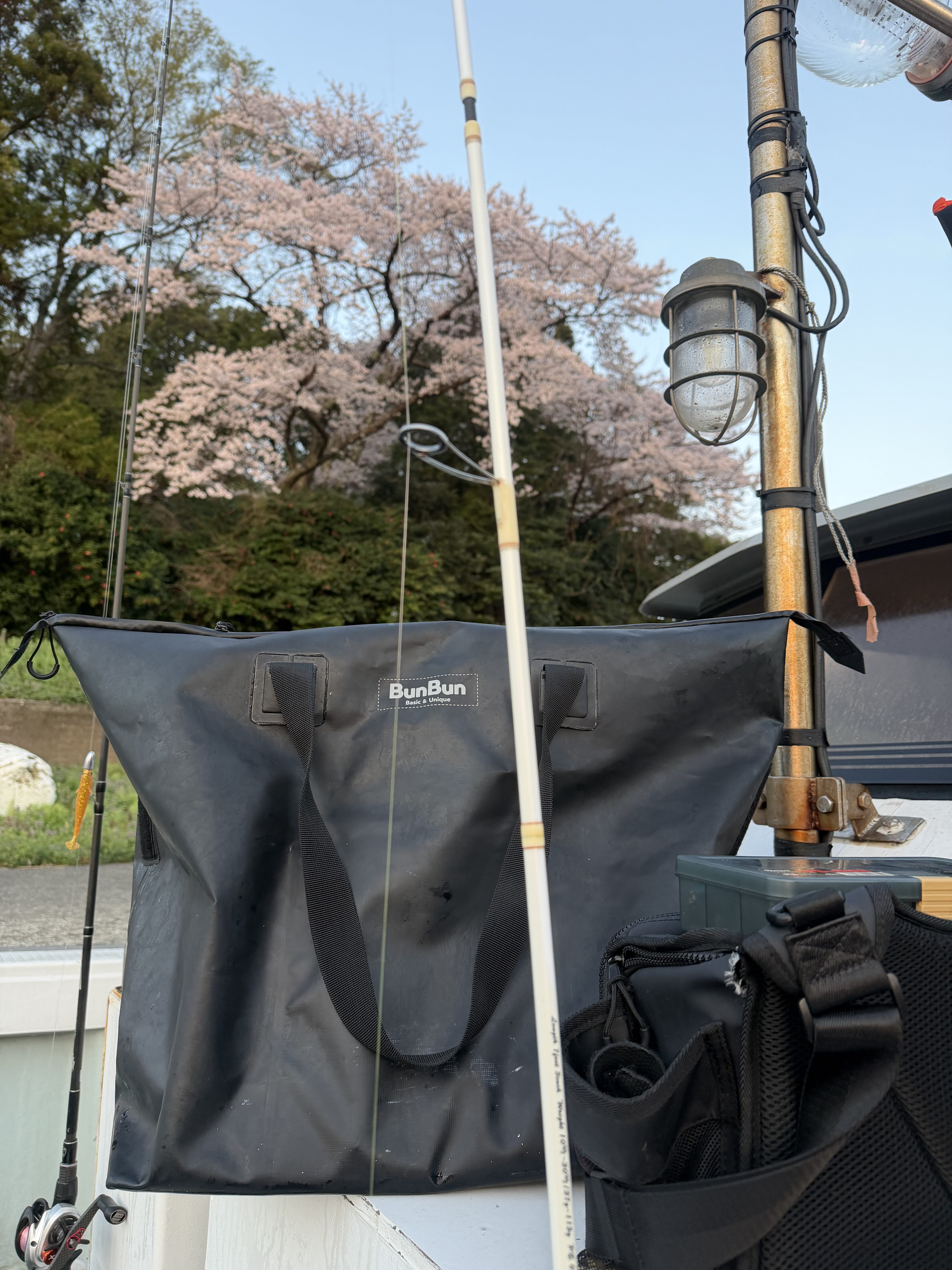 当日は晴れで昼からは気温が上がりましたが、朝一はまだ寒かったです💦そんな時に役立つのがブンブンオリジナル防水トートバッグです😊大容量で、防水機能もあり朝一着ていた衣服も余裕ではいります😊本当にオススメですよ😊