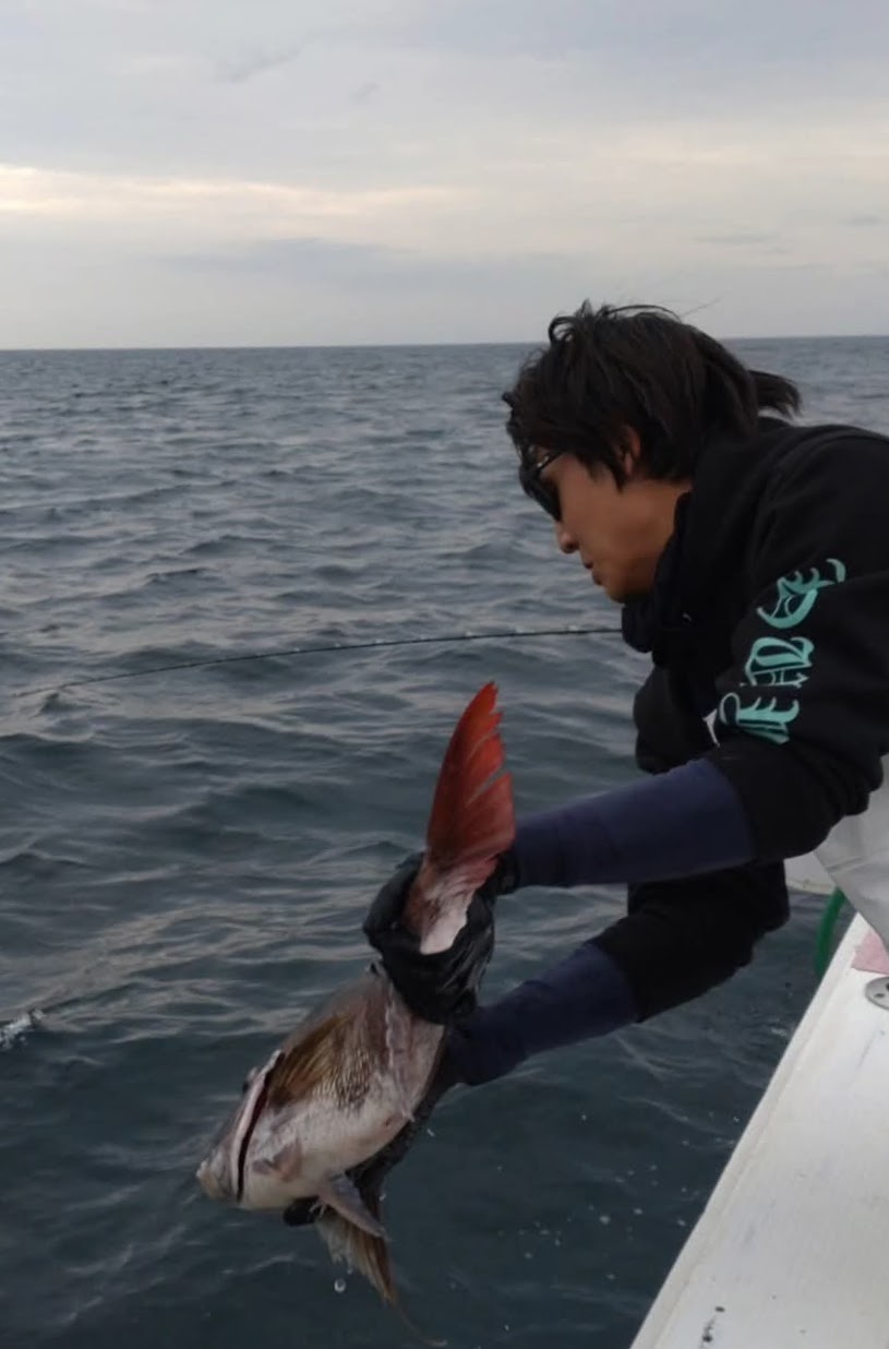 手馴れたヤリトリで数分間、ラインが船下に入ってヒヤヒヤしていたが、何とかオマツリせずタモに収められたのは後検量4.6キロの婚姻色バリバリのオスのマダイ。