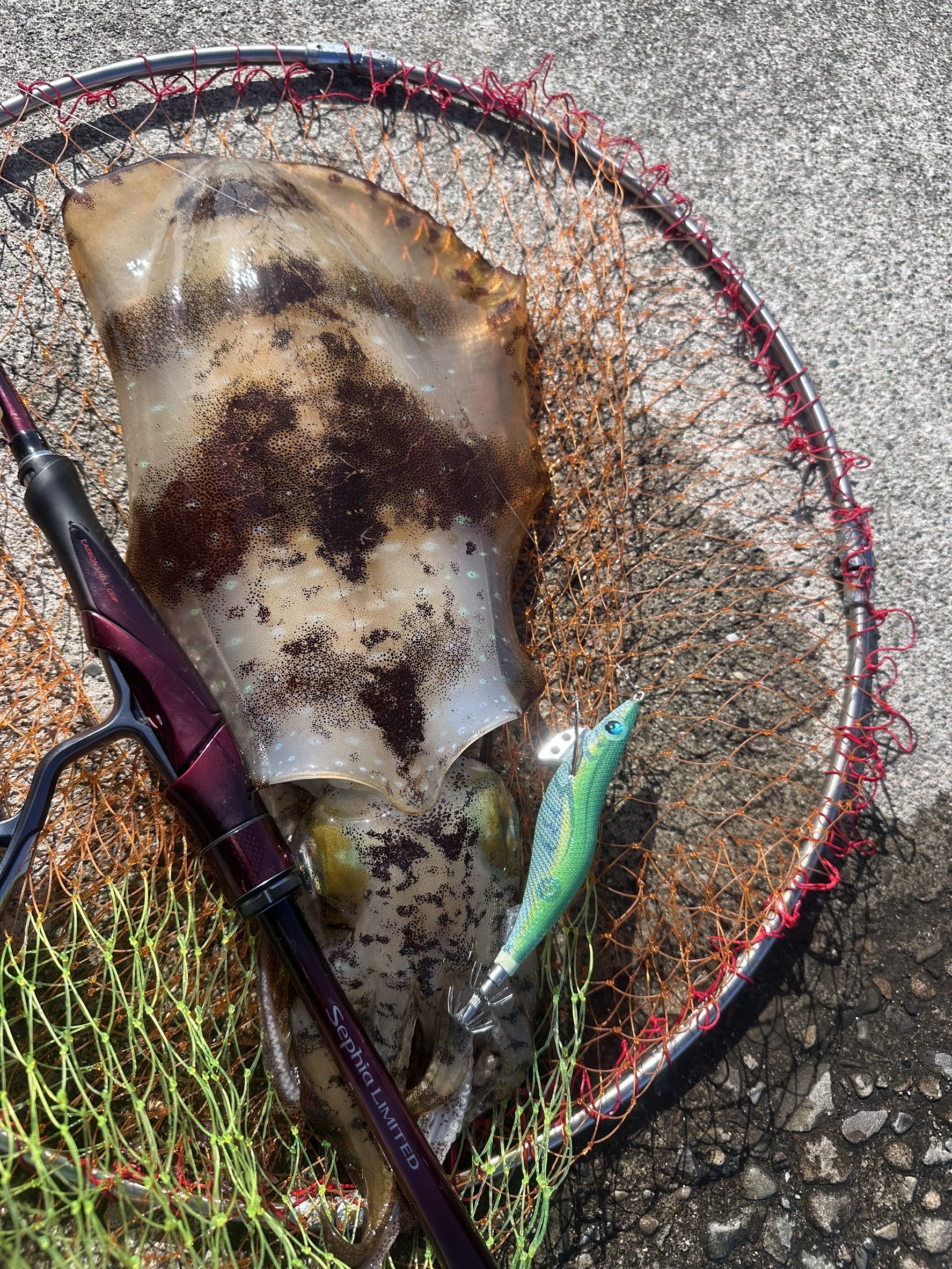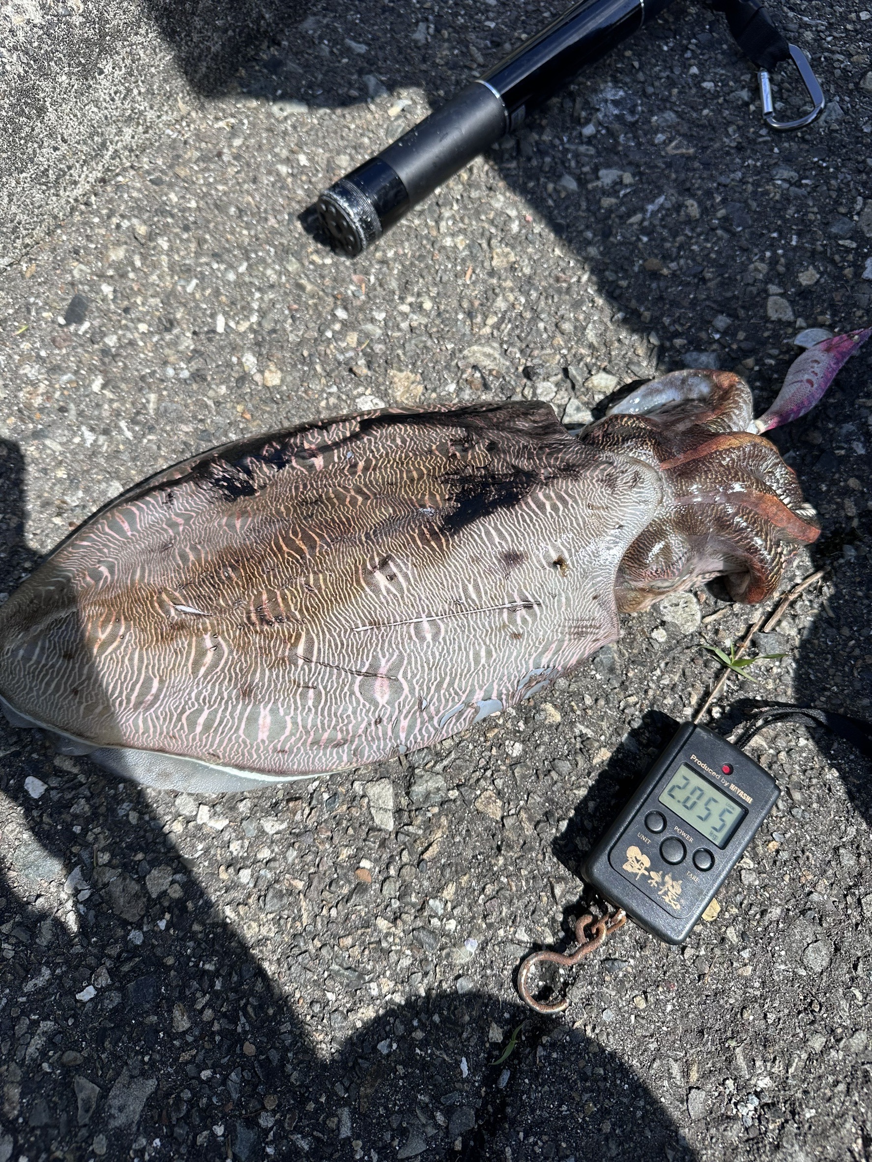 ついに来た!と思い慎重に上げてきたらまさかの2キロのモンゴウイカ🦑