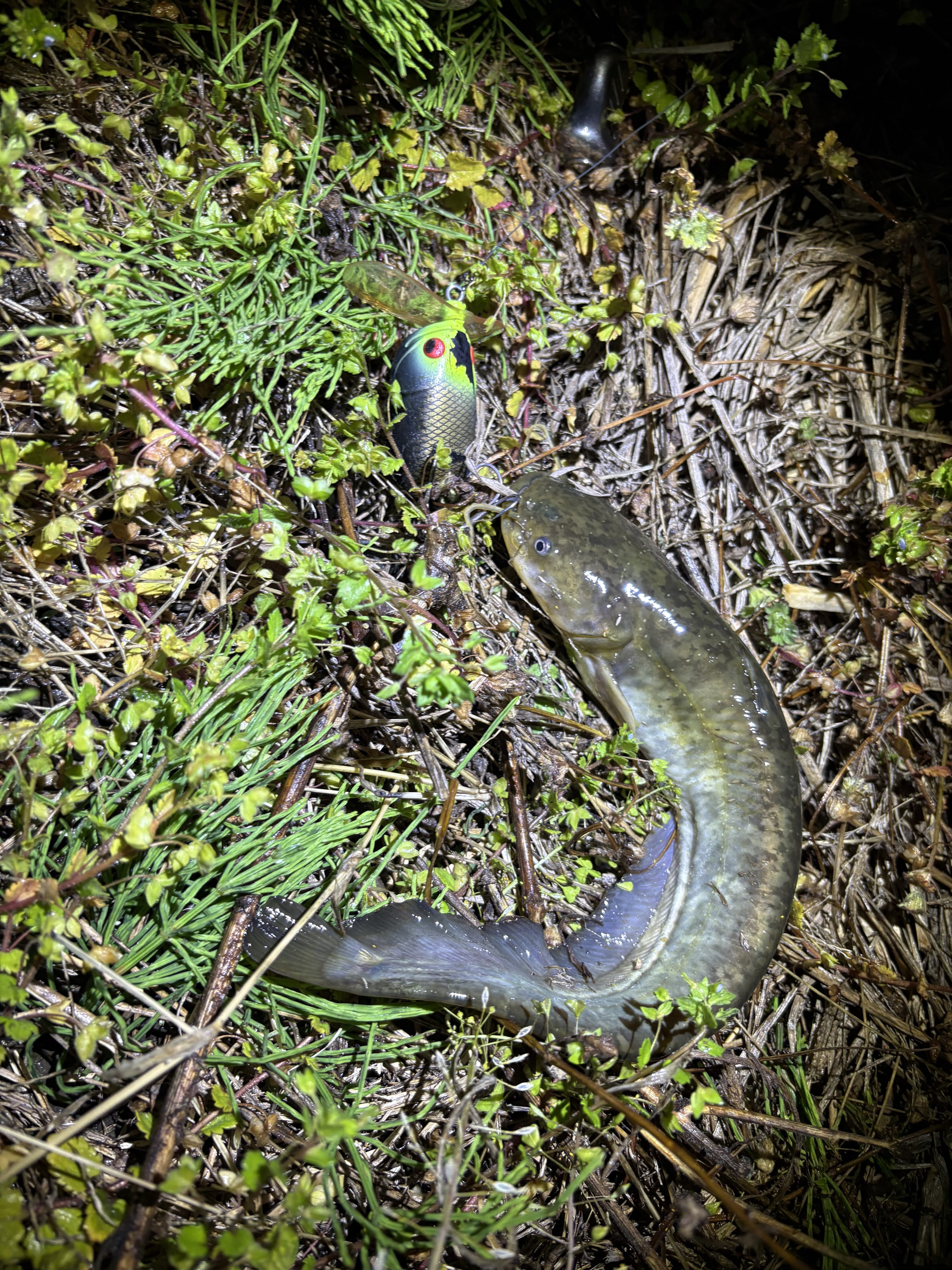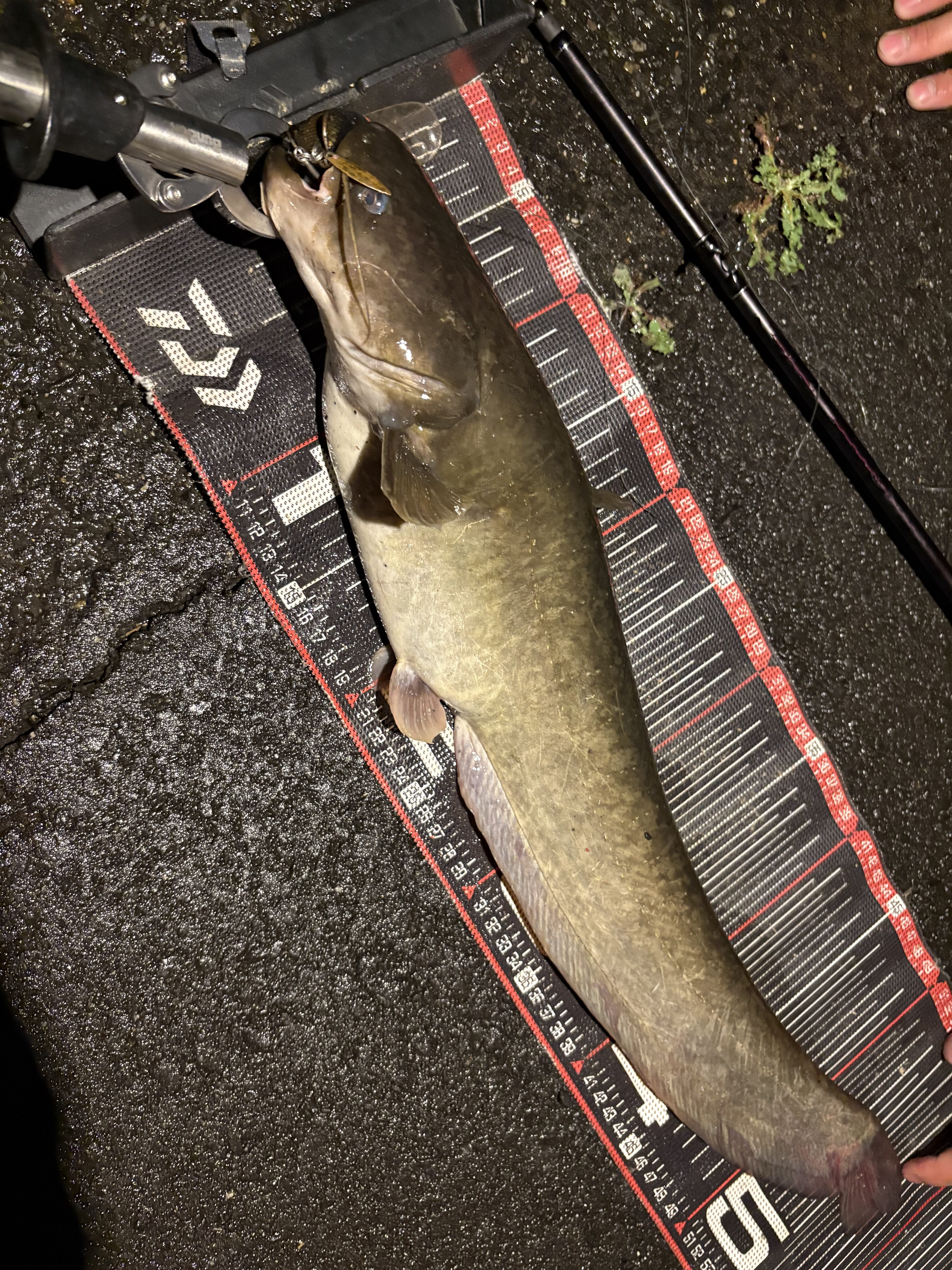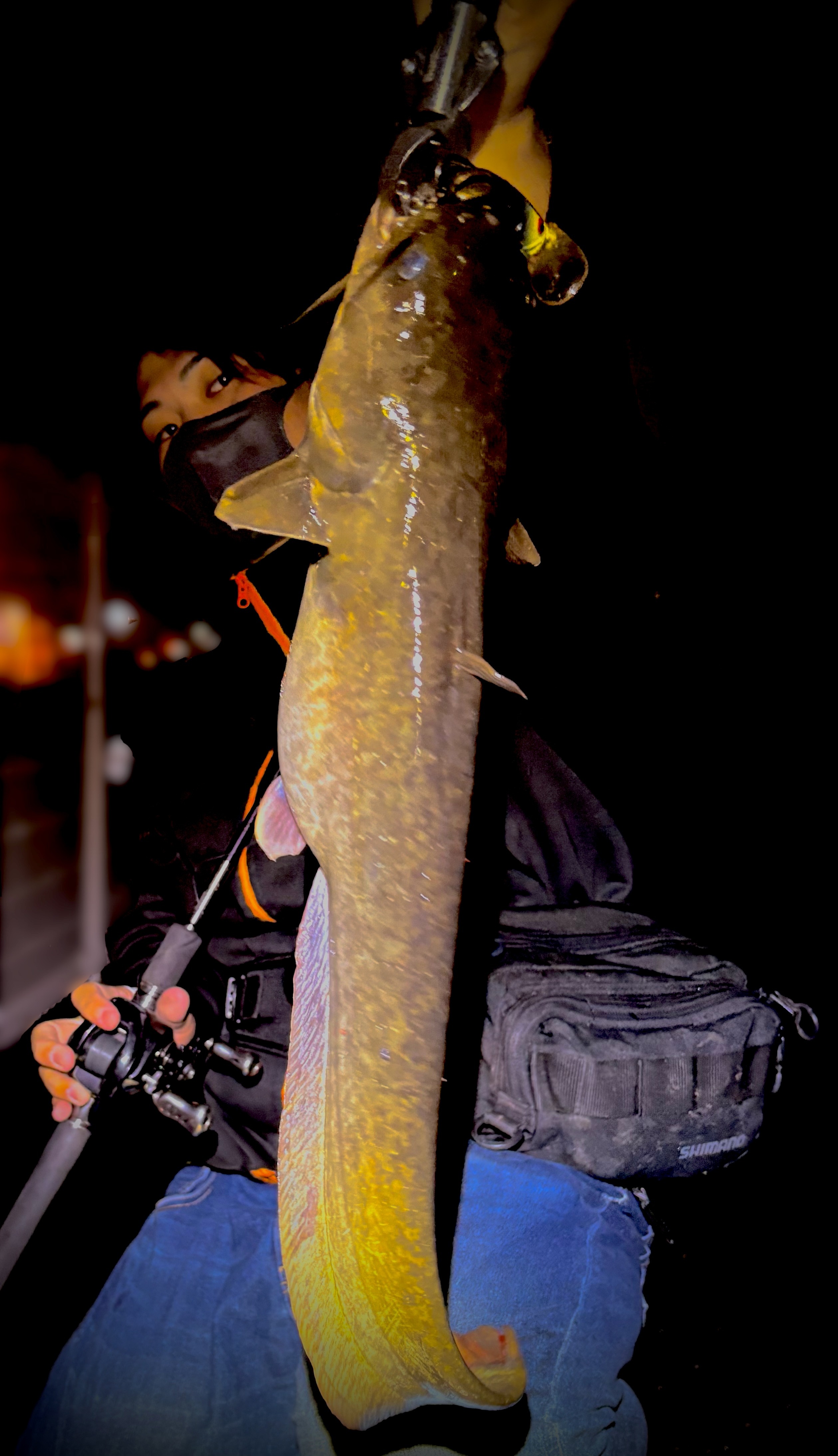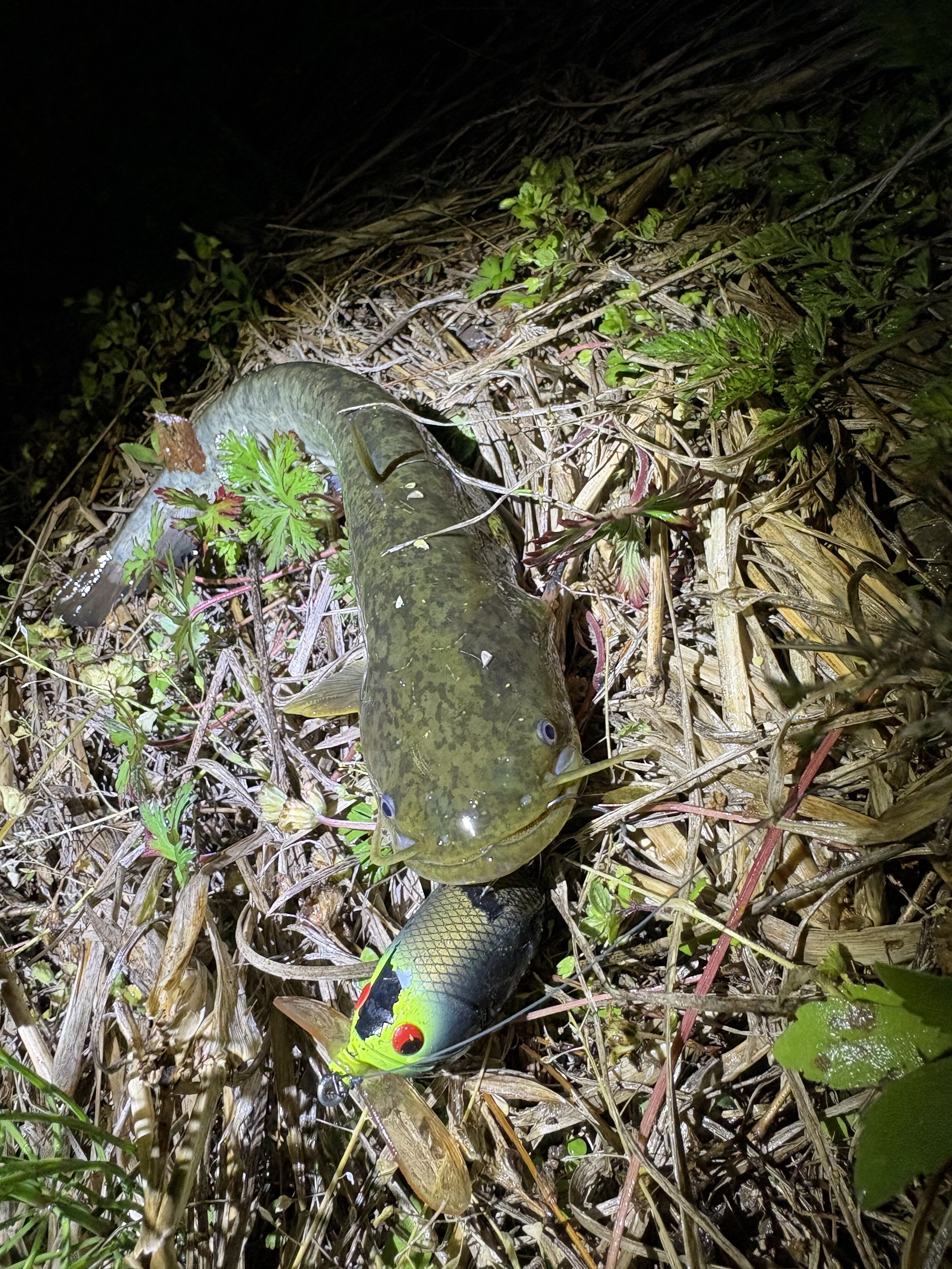 2026.04.14 印刷する ナマズに取り憑かれた男たちの遊び 魚種 ナマズ サイズ 58cm 数 3本 釣り方 ☆ナマズ 場所 埼玉県 天候 雨 スタッフ 中村祐 店舗 柏店 釣行日 2026.04.09 コメント 柏店中村です! 今回は柏店剱持リーダー、越野君と勤務後ナマズゲームに行ってきました! ナマズに取り憑かれた男たち3人が向かったのは、今年もそこそこ調子の良いポイント。去年のこの時期くらいは、上流を目指す個体がかなり見られ、バクバクでしたが今年はそこまでではない印象。 早速ランガンし始めると、定番の小さなインレットで引き波を立てて追いかけてきましたがミスバイトに終わります…。 その先ランガンしていくと、今年1本釣っている土管のポイントで、手前の足元まで巻いてくるとピックアップ寸前に真下でバイト!! 58のナイスサイズゲットです! 剱持さんも1本獲ったようで、残すは越野君のみ!しかし、これがまた釣らない男、越野…笑黙々とナマズを狙っていくものの、全く反応なく1人だけキャッチならず、ここで2人は納竿。 中村はその後別ポイントで2本追加! 今シーズン18本!順調に釣れ出しています! ナマズルアーをお探しの方はぜひ柏店へお問い合わせ下さい♪ 使用した釣具 ロッド レサト16102R-2 リール メタニウムDC70XG
