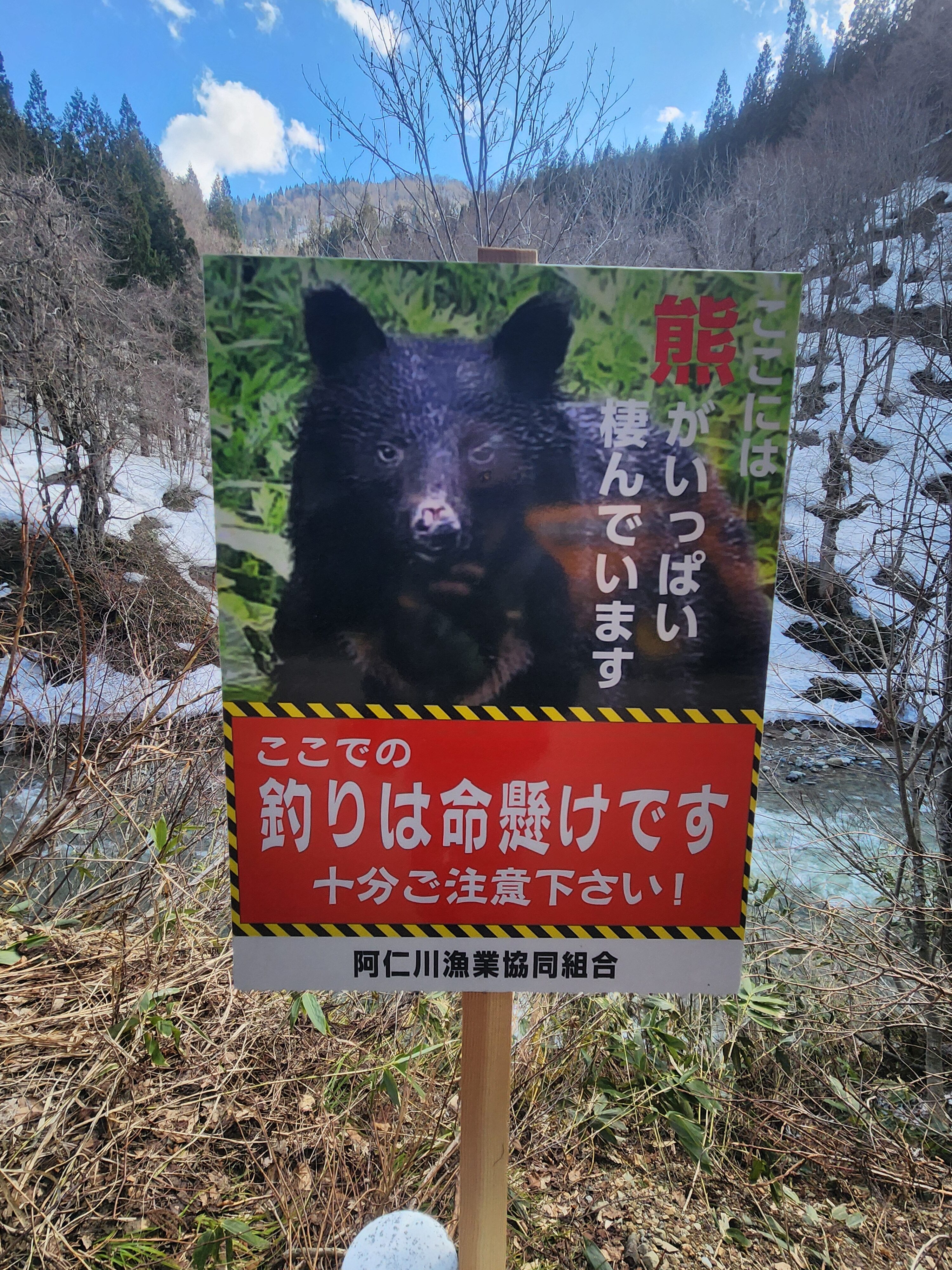 熊鈴、撃退スプレー、ラジカセ、爆竹など野生動物のテリトリーの中に入って釣りをしているということは常に意識しなければなりません。