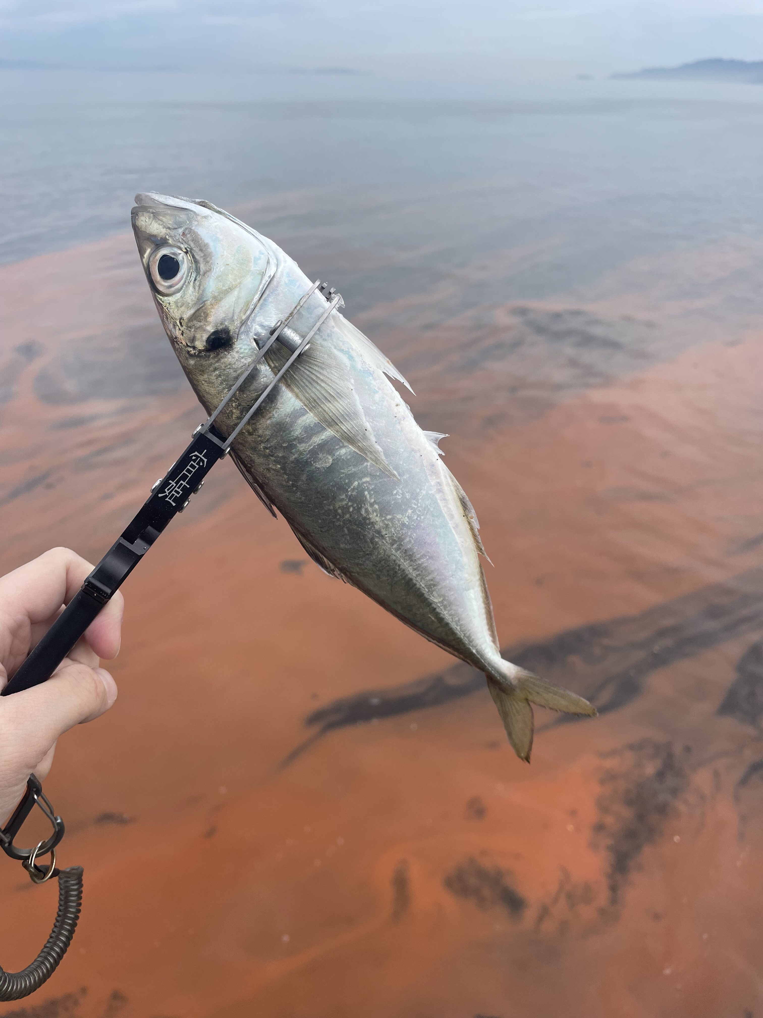 この赤潮プランクトンの集合で、実は表層に浮いてるだけなんです。水深があり、中層からボトムを探れる場所なら問題無し‼️釣り方も横の釣りでは無く、縦の釣りを意識して下さい🎣中層からボトムをリフト&フォールです