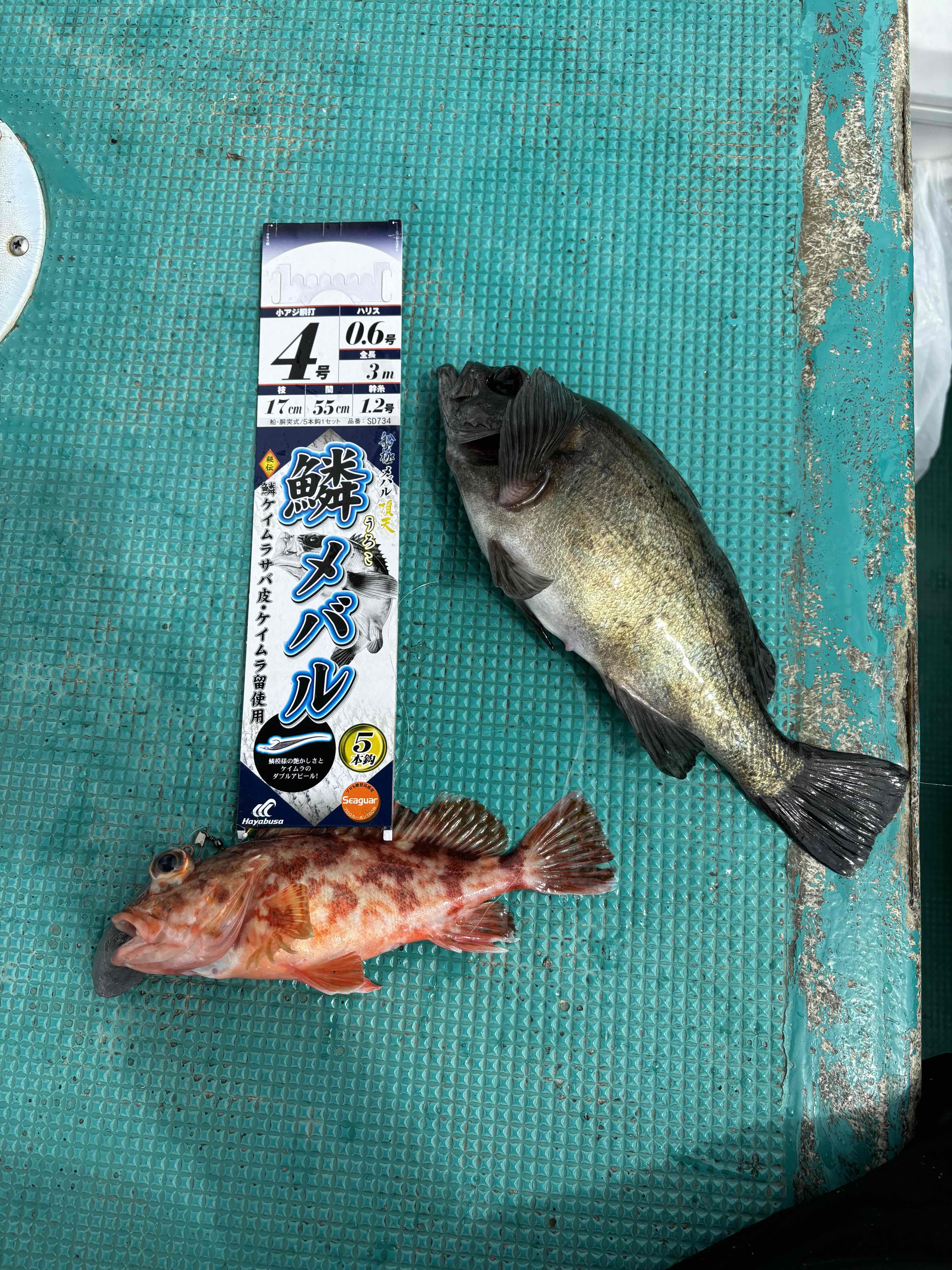 仕掛けをゆっくり底にゆっくりな誘いをかけて誘っていきます。巻き上げの誘いでゴンゴンとアタリ そのまま巻き上げて上がってきたのは中型サイズ 1投目よりヒット 大きくポイント変更 ゆっくり誘いをかけていくもメバルからのアタリがない 掛かってくるのは小ダイ ベラ 船中では中型メバルがポロポロ釣れています。潮も変わり後半戦 潮の動きに合わせてポイントも変わっていきます。大きな漁礁まわり仕掛けを着底させて誘い上げで根がかり 両隣とも専用ロッドで長さを活かして誘い 根をさけています。ここのポイントは大型メバルが多数 Wヒットもしております。25~30cmと大型が船中釣れています。仕掛けをセットしてゆっくり巻き上げて誘っていくとヒット かなり強い引きで上がってきたのが良型メバル その後もヒットやアタリがあっても乗らず苦戦 メバル2匹 ガシラなどで終了となりました。