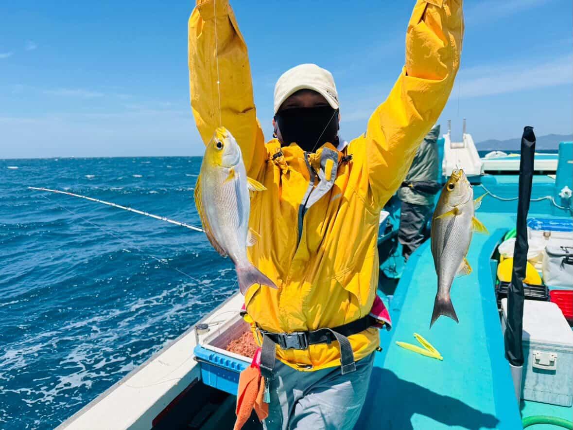 2026.04.16 印刷する 南塩屋出船谷口丸さんにて天秤ズボアジ・イサギ釣り 魚種 アジ イサギ/イサキ 数 イサギ多数 大サバ・アジ・レンコダイ 釣り方 天秤スボ 場所 和歌山県 天候 晴れ スタッフ 白川 亜矢 店舗 本社 釣行日 2026.04.12 コメント 和歌山県御坊市南塩屋出船の谷口丸https://tanigutituribune.wixsite.com/my-site-10さんで、天秤ズボのアジ・イサギ釣りに行ってきました。AM5時出船、夜明けと同時に釣り開始のため少し早めに集合。まずは仕掛けを付けずに底取りを行い、タナを底から6m上げてセット。正確にタナが取れたところで仕掛けを投入。当日は12名の満船だったため、カゴに詰めるアミエビは通常より控えめの6分目に調整。タナ到着後に軽くシャクって撒き餌をし、ハンドル2回転ほど巻き上げて待つと、1投目からイサギがヒット。オキアミが取られる状況を見てタナを5mに上げると、ここで良型イサギが連続ヒットしました。途中、浅ダナでソウダカツオが回遊し苦戦する場面もありましたが、うまく回避してタナに入れれば高確率で本命がヒット。ポイント移動後もタナを意識することでアジ・イサギともに順調に釣れ続け、大サバも混じりクーラーボックス満タンで納竿となりました。シーズン序盤ながらイサギ優勢の好釣果で、白子や卵も入り脂乗りも抜群。食味も良く、これからさらに期待できるおすすめの釣りです。 使用した釣具 ロッド ピュアテック 無限ピュア船100-210 リール シマノ フォースマスター3000XP しかけ アジイサキ用天秤仕掛け4本針(一番下カラ針) 道糸 PE4号 エサ アミエビ (サシエはオキアミ)