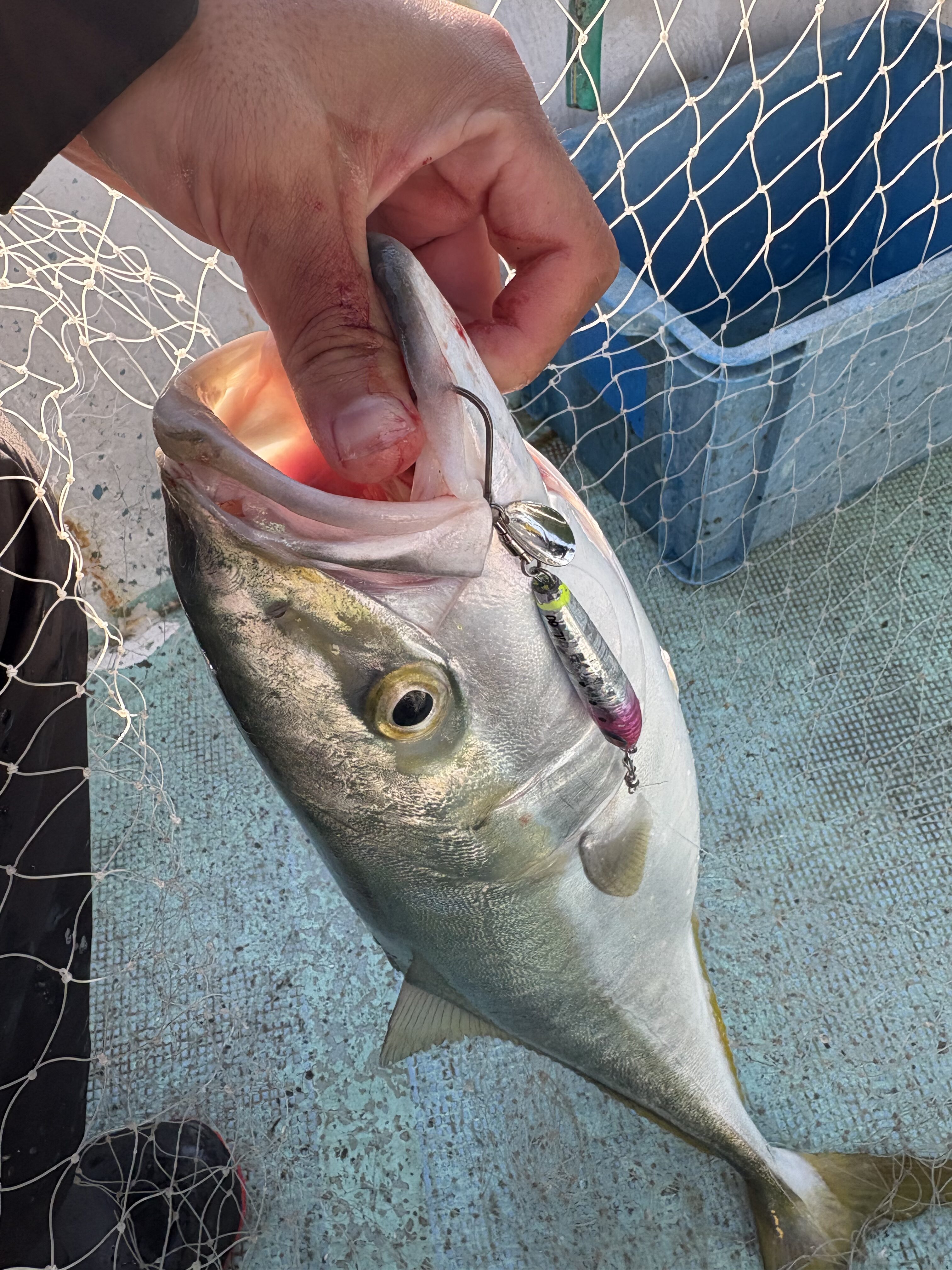 2026.04.20 印刷する 明石迷走ブレードジギング 魚種 ブリ/メジロ/ワラサ/ハマチ/イナダ/ツバス/ワカシ サイズ 67cm 数 メジロ1匹 釣り方 ☆ジギング 場所 兵庫県 スタッフ 平岡祐汰 店舗 高槻店 釣行日 2026.04.16 コメント みなさんこんにちは! 高槻店の平岡です🍄 今回は久しぶりに明石の魚英さんでジギングに行ってきました! 最近はサワラやメジロが釣れ始めて春を感じますね。 この日はもちろん安心と信頼のキャラックのトレイルジグ縛り! ポイント付近ではボトムにポツポツと感度が入っており期待大! 僚船ではすでにメジロが釣れておりこちらも続きたいところでしたがなかなか食ってこない。 少ししてから僕にもメジロが来てパターンを掴めたかと思いましたがその後まったく当たらなくなり迷走状態。 巻き速度なのか角度なのか、それとも竿がブレすぎてるのか正解に辿り着けませんでした。 何かが違っているのに何が違うのかが分からない時間がもどかしいですがそれはそれで面白い! 魚英に乗ると毎回勉強になることばかりでほんとに飽きないですね。 今年はジギングダービーに参加してるので1匹でも多く釣りたいところです! もし魚英で僕を見かけたら声をかけてくださいね! 使用した釣具 竿 ゲームタイプJ S64-3 リール セルテートSW 6000-H