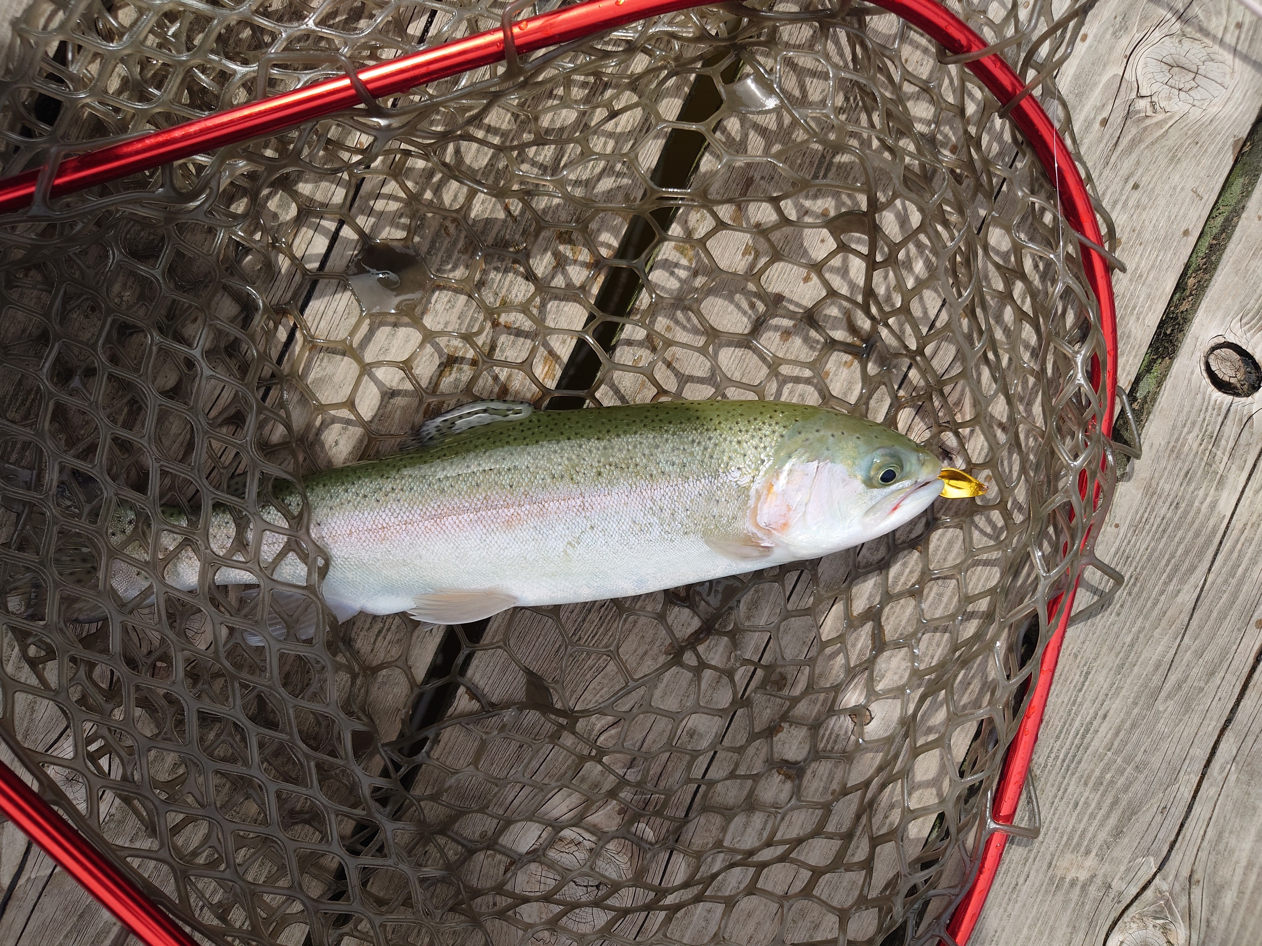 そして、放流タイムには、まさに放流したてと思われるきれいな大きめのが釣れてくれました。