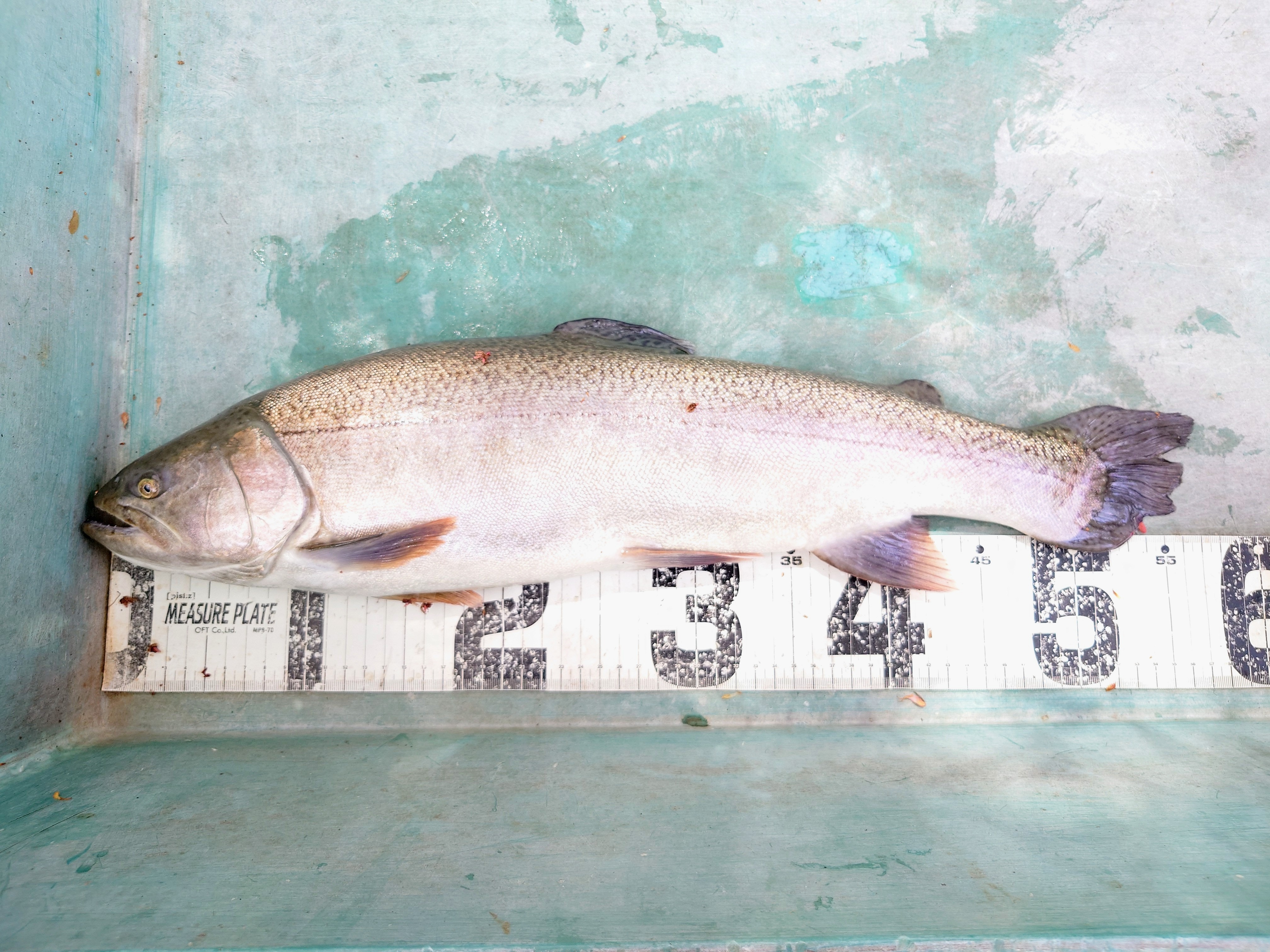 そしてそのすぐ後、すごいドラグ音とともに重さを感じ思い切り走られ驚き、、、跳ねた体を見たら白くて大きく、、、慌ててやりとり。同行者にタモを頼んで、なんとか釣り上げたのが、赤身が絶品と噂の(冨士の介)でした!