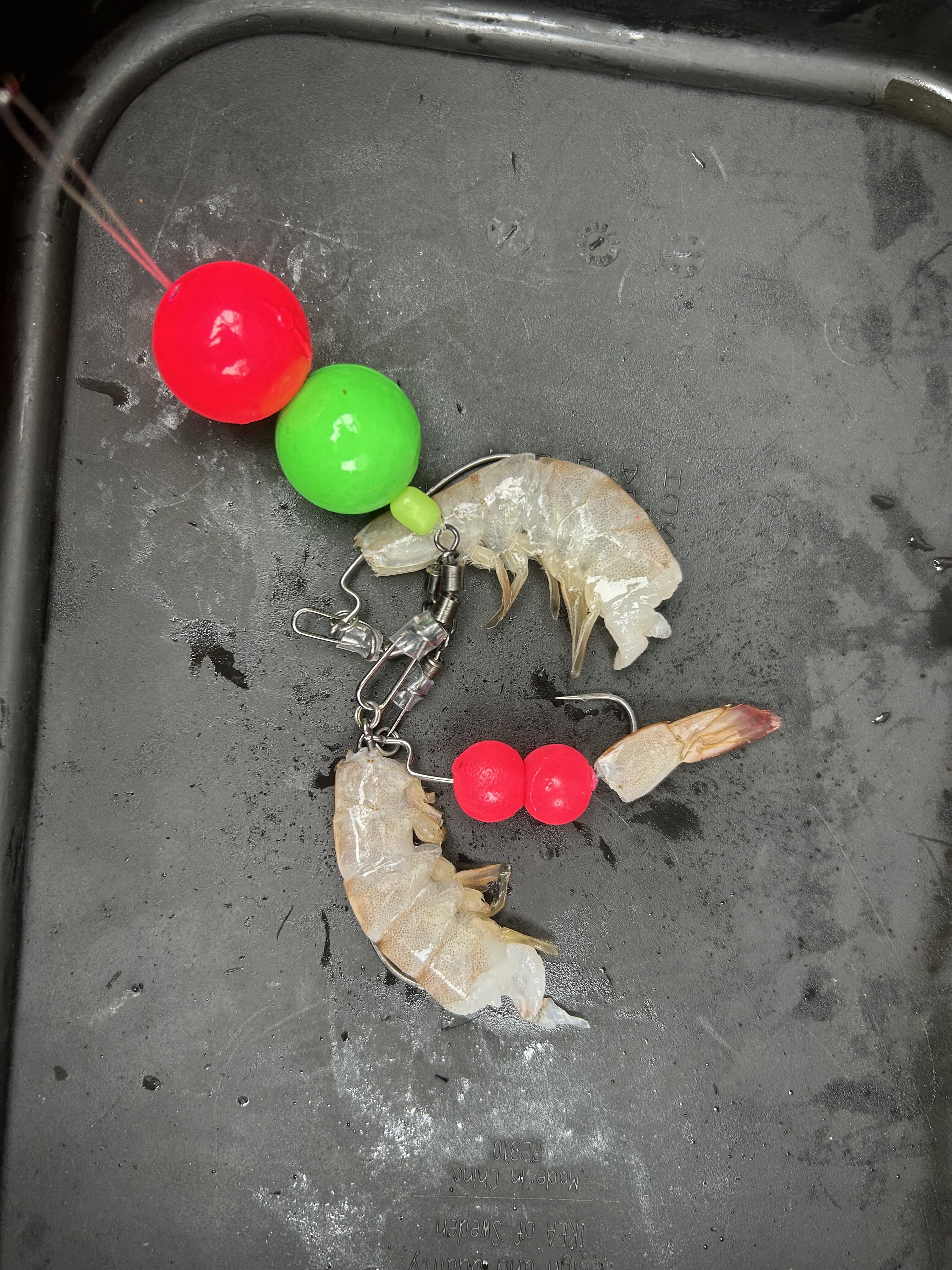 今回エサはバナメイエビとホタルイカを用意しましたが、最近はイワシの切り身もつれているということです。