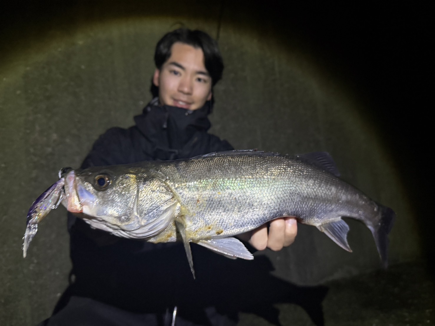 2026.04.21 印刷する バチ抜け調査⑤ 魚種 シーバス/スズキ サイズ 60cm 数 シーバス/2匹 釣り方 ☆シーバス 場所 大阪府 スタッフ 木村直哉 店舗 高槻店 釣行日 2026.04.14 コメント こんにちは😃 高槻店の木村です! 夕方にバチ抜けの調査に行きましたがバチは抜けているもののシーバスの姿は見えず、他のベイトを探して延長線に突入です! 河口付近の常夜灯のあるポイントをのぞいてみると細くて動きの早いベイトが集団になっています。 小さなカタクチイワシでしょうか、フローティングのゆっくり誘うルアーを通してみるも無反応、そこでカタクチパターンで強い急潜行するシャッドをベイトの下に通すと何かがギラっと反転します! リアクション的に食ってくれました! ベイトをたくさん食べているようでよく引く個体をゲット! その後も同じパターンでもう1匹追加、 小場所ということもあってすぐスレてしまいました。 この時期はベイトが豊富なのでバチで外しても魚を見ることができるのはいいですね! 使用した釣具 ロッド セブンセンス MSS962 TR リール 22イグジスト4000XH