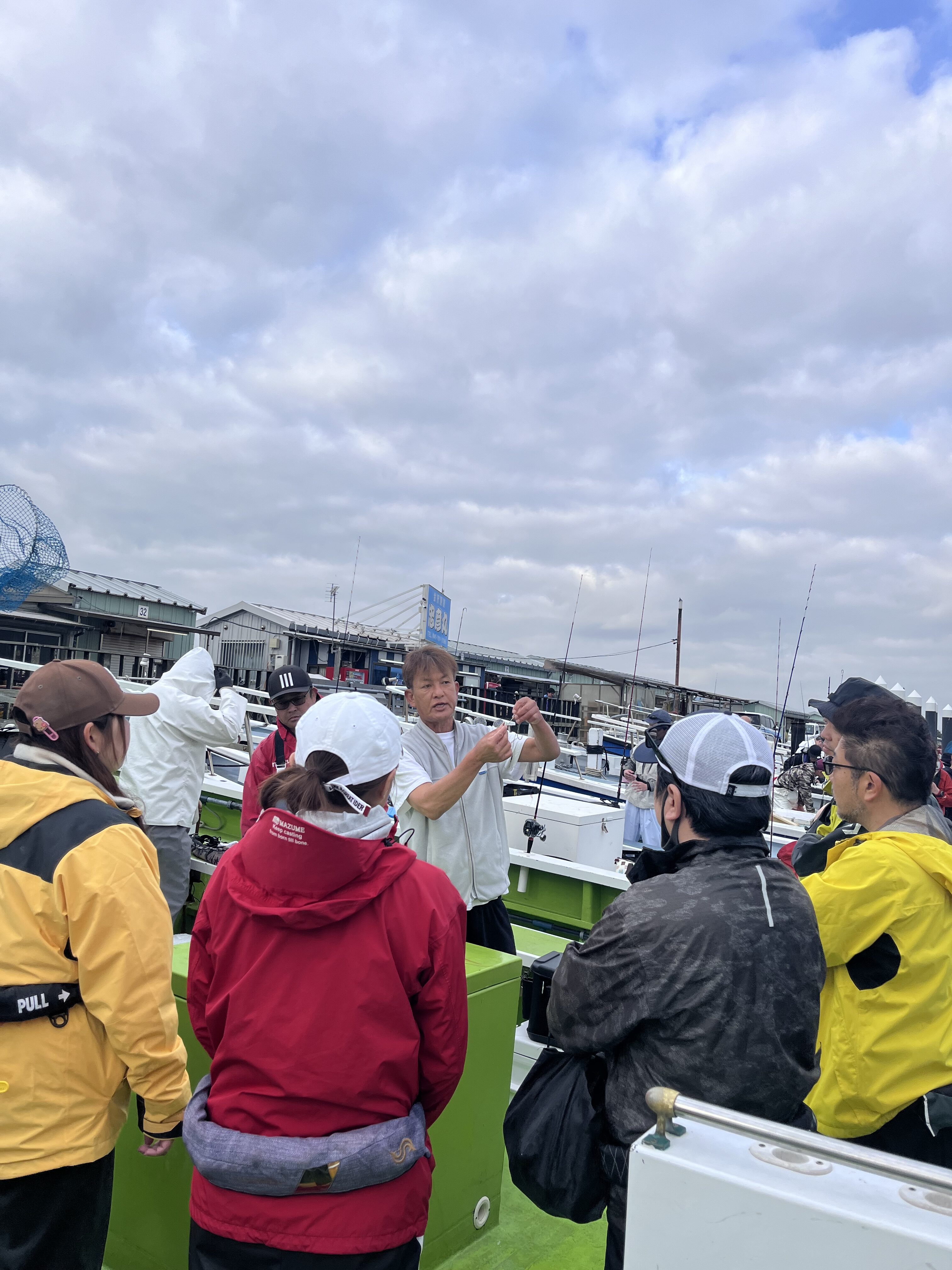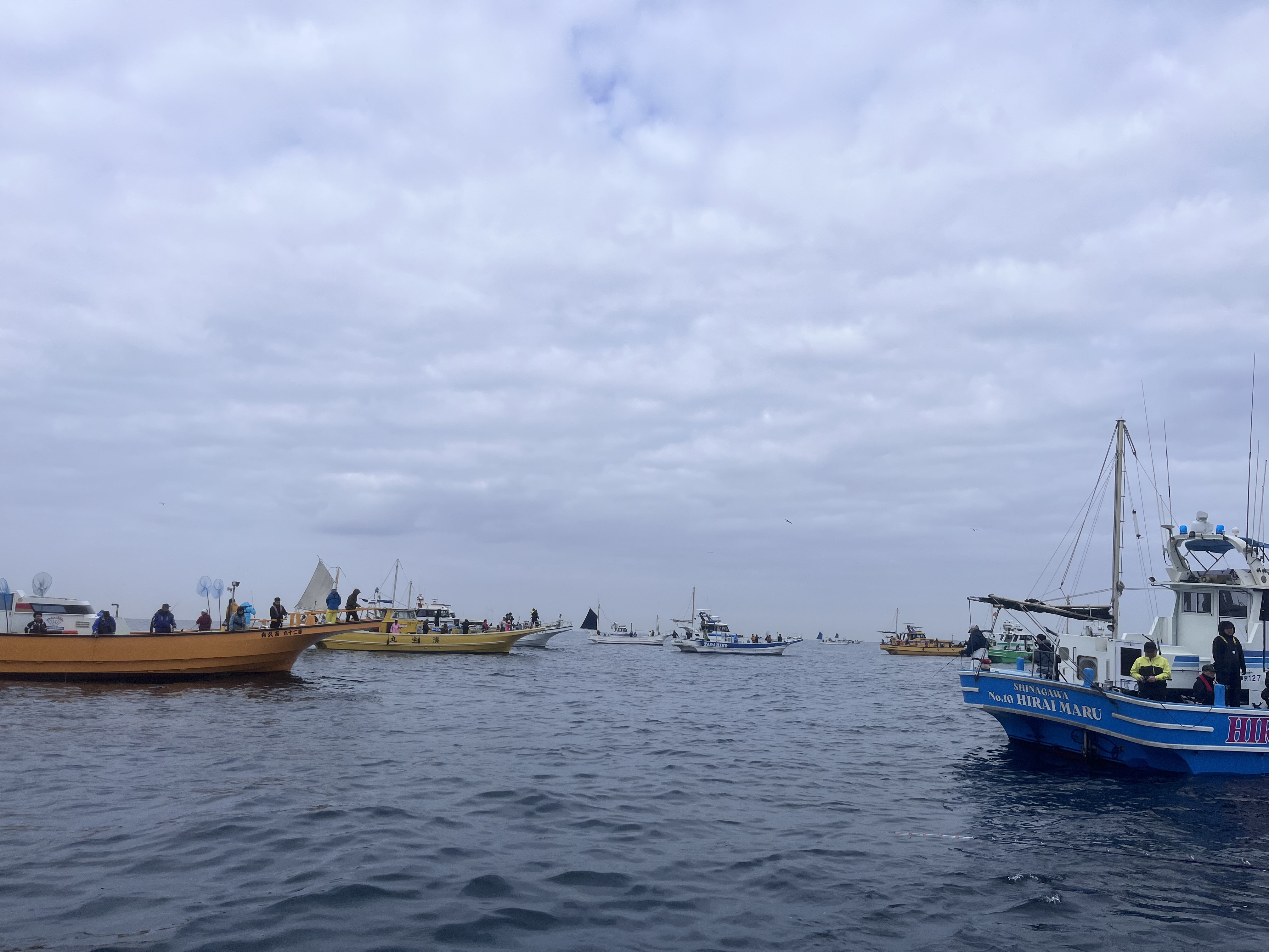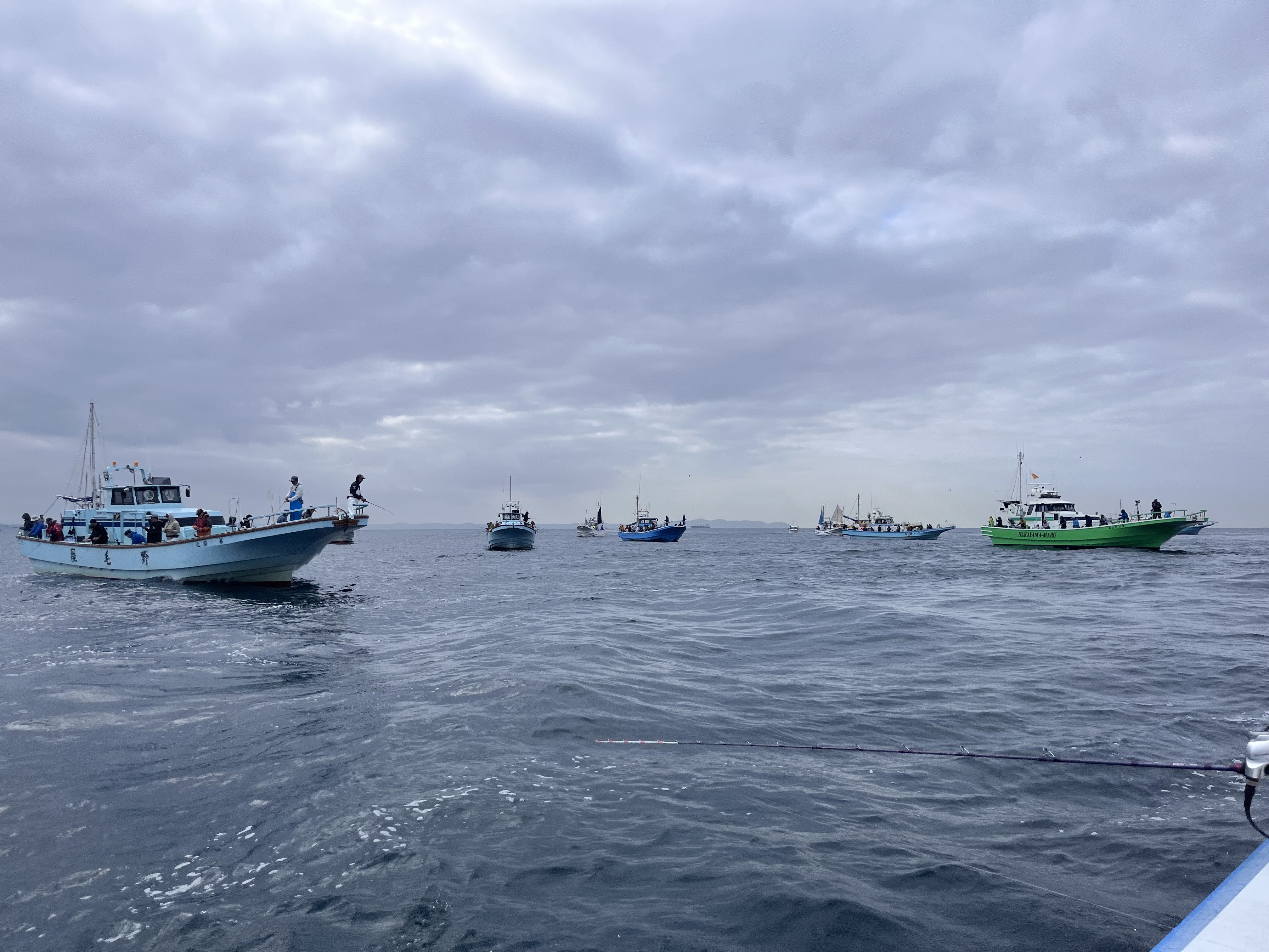 午前7時船長さんによるレクチャータイムがあり程なくして出船40分程走らせポイントに付くと沢山の船が集まっておりどの船も満船の様子…