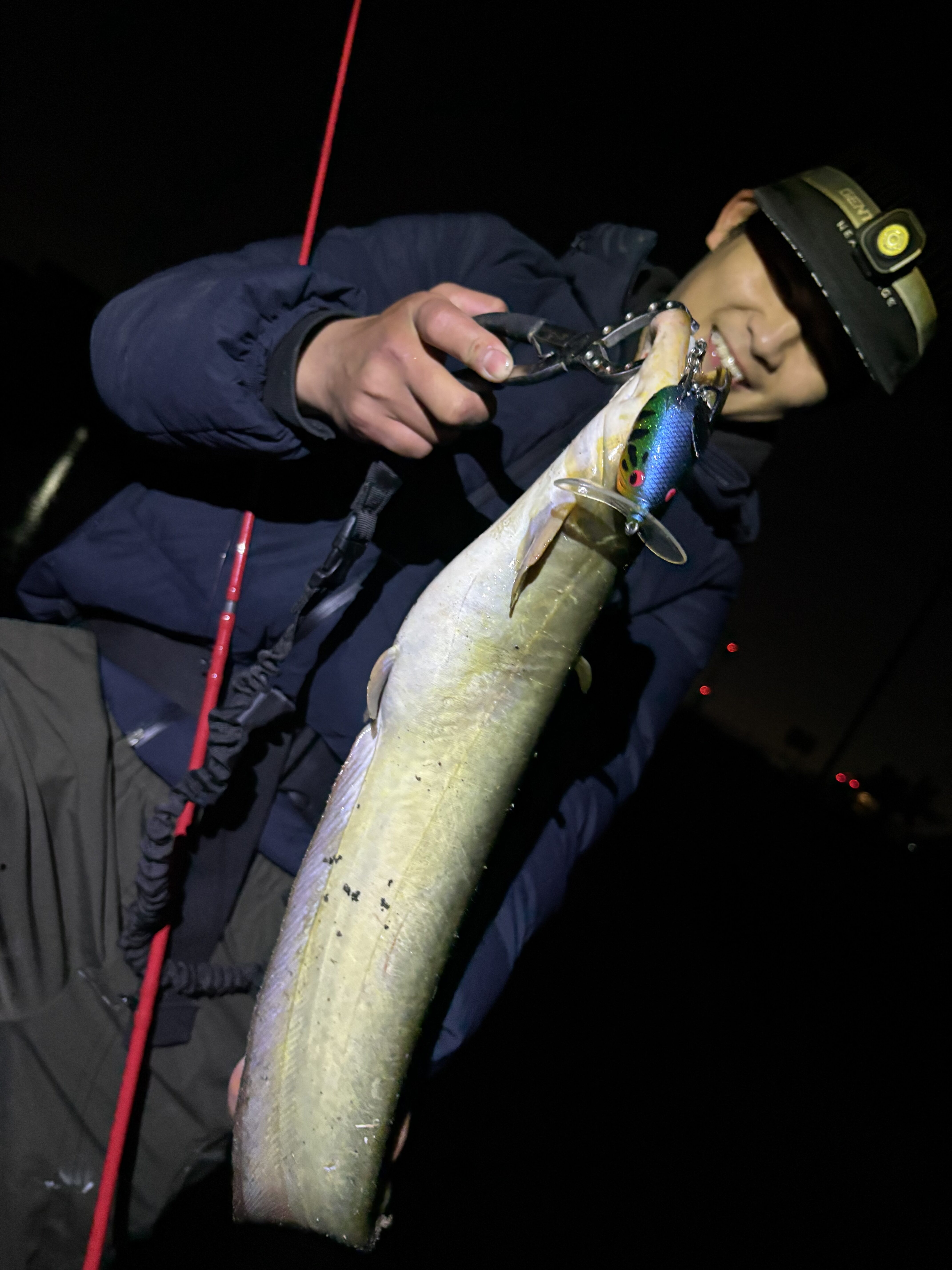勤務後ポイントへ向かうと、休みの柏店越野君に遭遇。もうすでに1本釣っているとのこと。