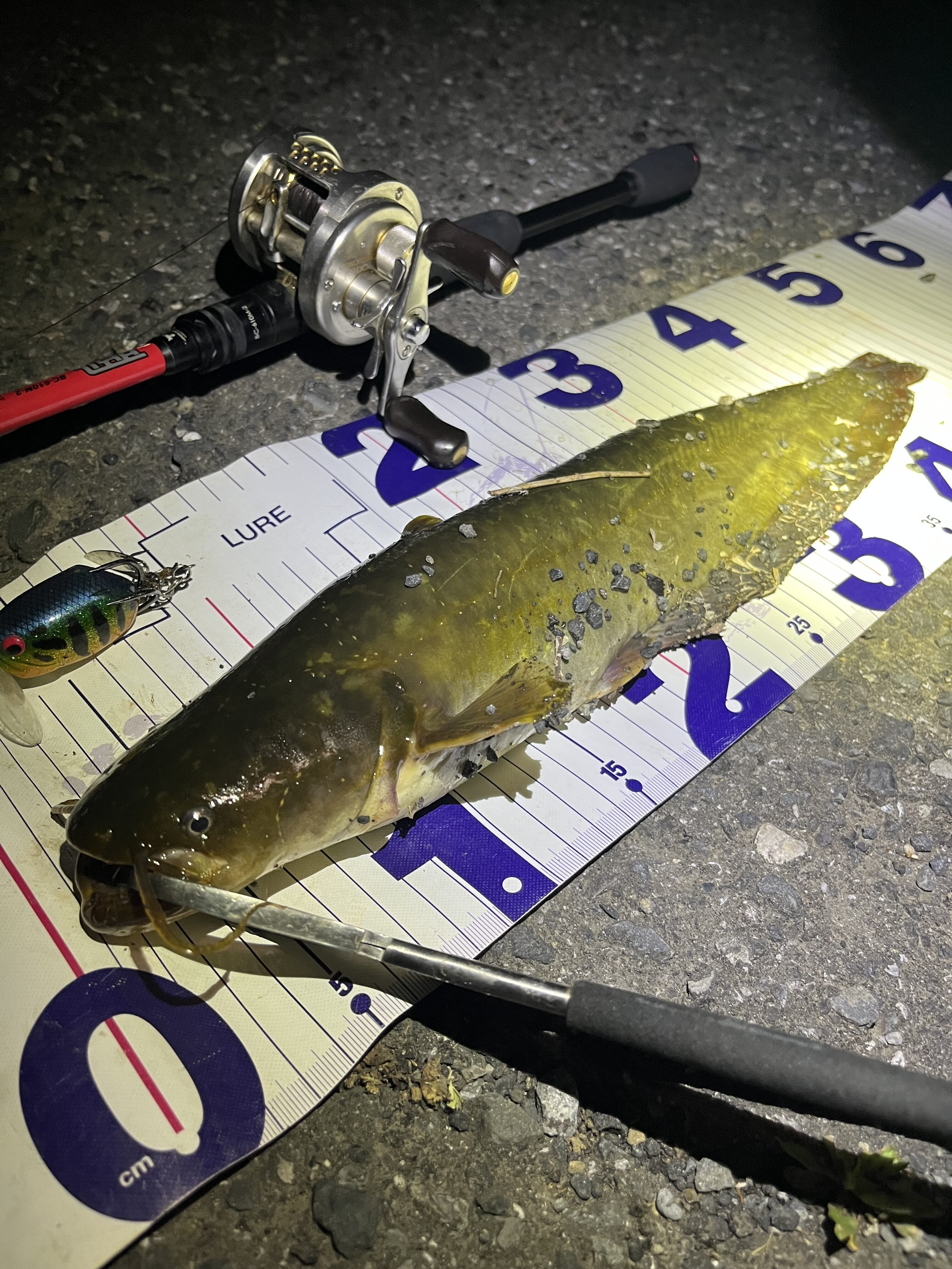 2026.04.22 印刷する オフショアアングラーが行くナマズトップゲーム⑧ 魚種 ナマズ 数 ナマズ 釣り方 ☆ナマズ 場所 埼玉県 スタッフ 越野光希 店舗 柏店 釣行日 2026.04.20 コメント こんにちは!柏店SW担当スタッフ越野です!本日も出勤終わりにナマズトップゲームを楽しんで参りました!本日は23時03分スタートでした!最初は昨日釣れたポイントでナジーバグベビーをチョイスして様子見です!!!バイト!バイト!バイト!バイト連発ですがなかなか乗らない、、、でもやはりナマズが駆け上がりについてハクと思われれるベイトを食べてるみたいです!そこから24時まで粘りバイトは10数回とあるものの、乗り切らない、、、流石に魚をかけすぎてフックが鈍ってきた感あります💦場所を休ませるためにもフックを新品に交換しつつ少しポイント移動して小場所へ!小場所に来てバイトも減ってきて現在の時間が1時30分に、、、明日は午後出勤とはいえ流石に体がしんどくなってしまうのでラスト一投で切り上げようと決めキャスト、木の下スレスレに良いところに入りました!2秒放置してスローにただ巻き、、するとバイト!一発で深いバイト!乗りました!!!!ラスト一投げで46センチのナマズが釣れてくれました( ; ; )諦めずに粘れば結果がついてきてくれる日もありますね!!!!個人的には価値ある1匹でした!最後までご視聴ありがとうございました!今月末はヒラマサに行く予定なのでそのレポートもお楽しみにお待ちくださいませ!以上スタッフ越野でした! 使用した釣具 ロッド BPMC61M-2 リール カルカッタコンクエストDC101 ルアー バトラクス