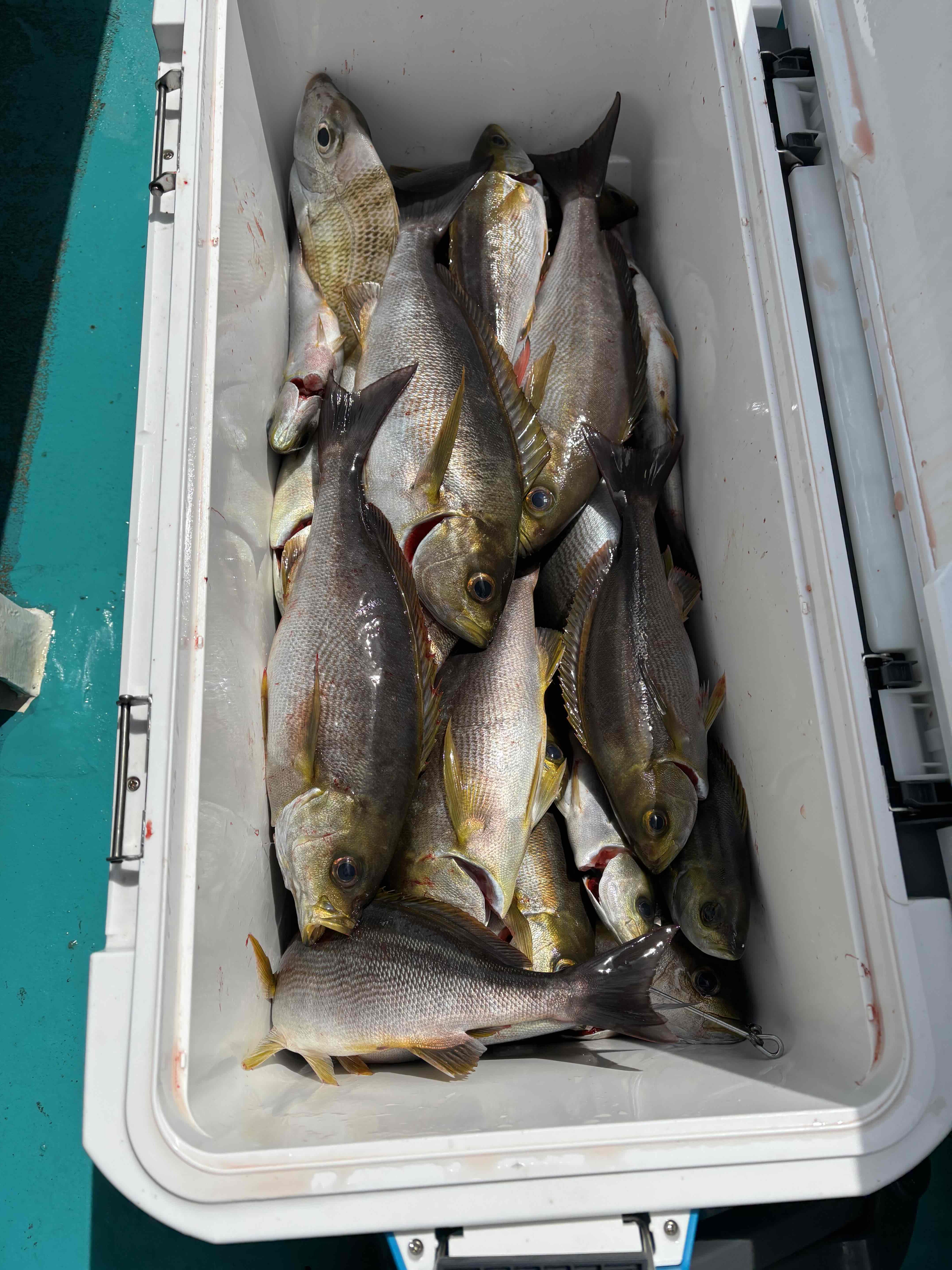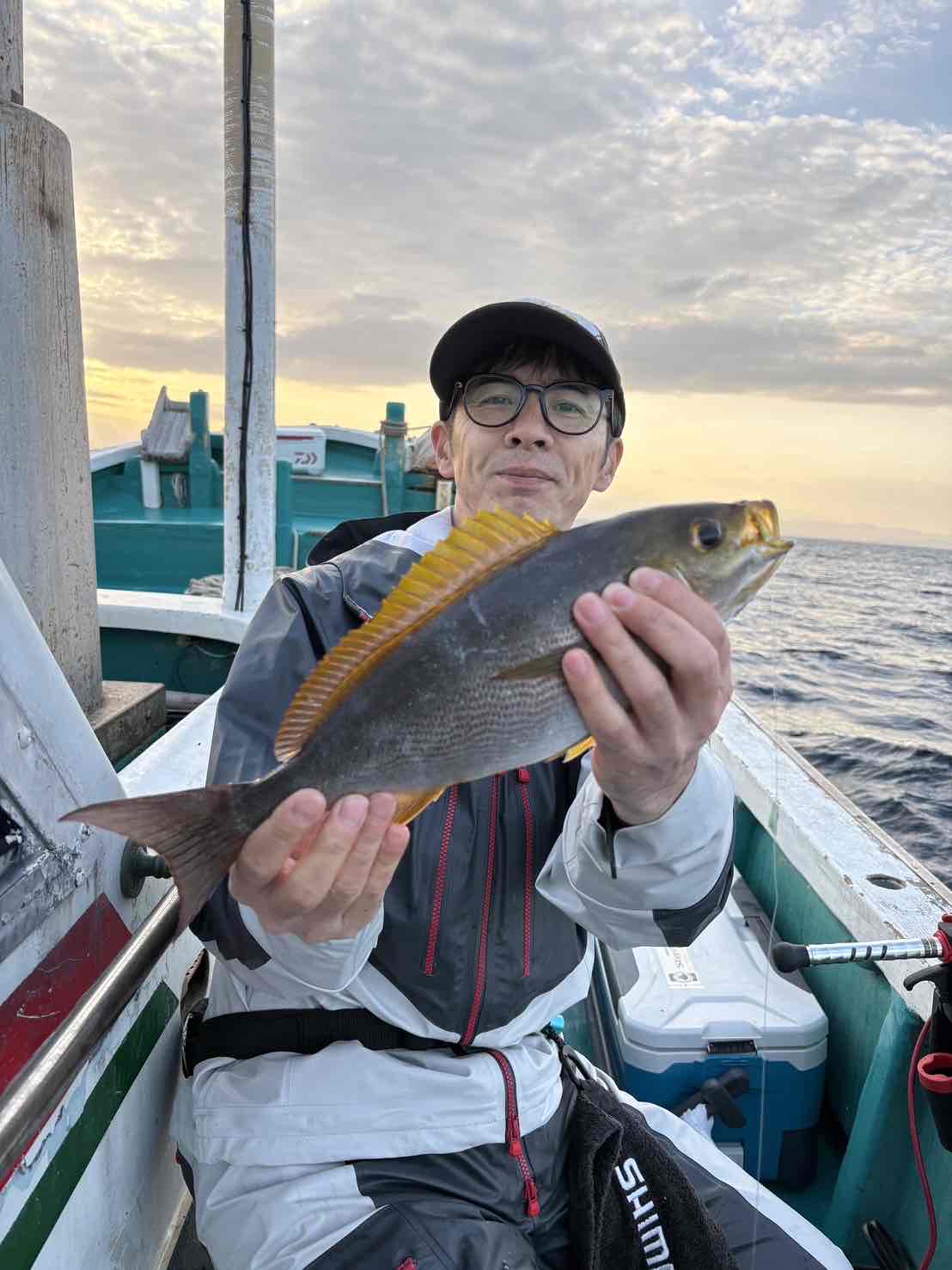 印南 木下丸さんでのイサキ釣りに行ってきました。今が一番のイサキ釣り 脂のノリもよく何をしても美味しい。4時半集合 船に乗り込み出船 ポイントまでは近く30分ほど仕掛けは天秤仕掛け 通常はアミエビの釣りとなるが最近はエサ取りのカツオが多くオキアミでの釣りになっています。4月後半にはまたアミエビ鉄仮面での釣りに変更するそうです。早速仕掛けを投入上から25mで止めて待っているとアタリ 小型イサキ 少しタナを下げて35mでヒットなかなかの引きで上がってきたのは35㎝クラスの良型イサキ 連続ヒットもあり釣果が伸びていきます。しかしエサ取りが上に上がってくるとアタリ無し ポイント移動 移動したらイサキがヒットしていきます。しばらくするとアタリもなくなりエサだけが無くなります。棚を上下させてイサキのタナを探していくとヒットします。周りでも良型イサキがヒット数を伸ばしている感じ イサキの他にマダイ メイチダイなどヒット 色々な魚が釣れるのもオキアミの釣りならではです。後半も浅場のポイントでさらに追加して終了となりました。 これからがよくなりアミエビの釣りではさらに数も伸びるようです。
