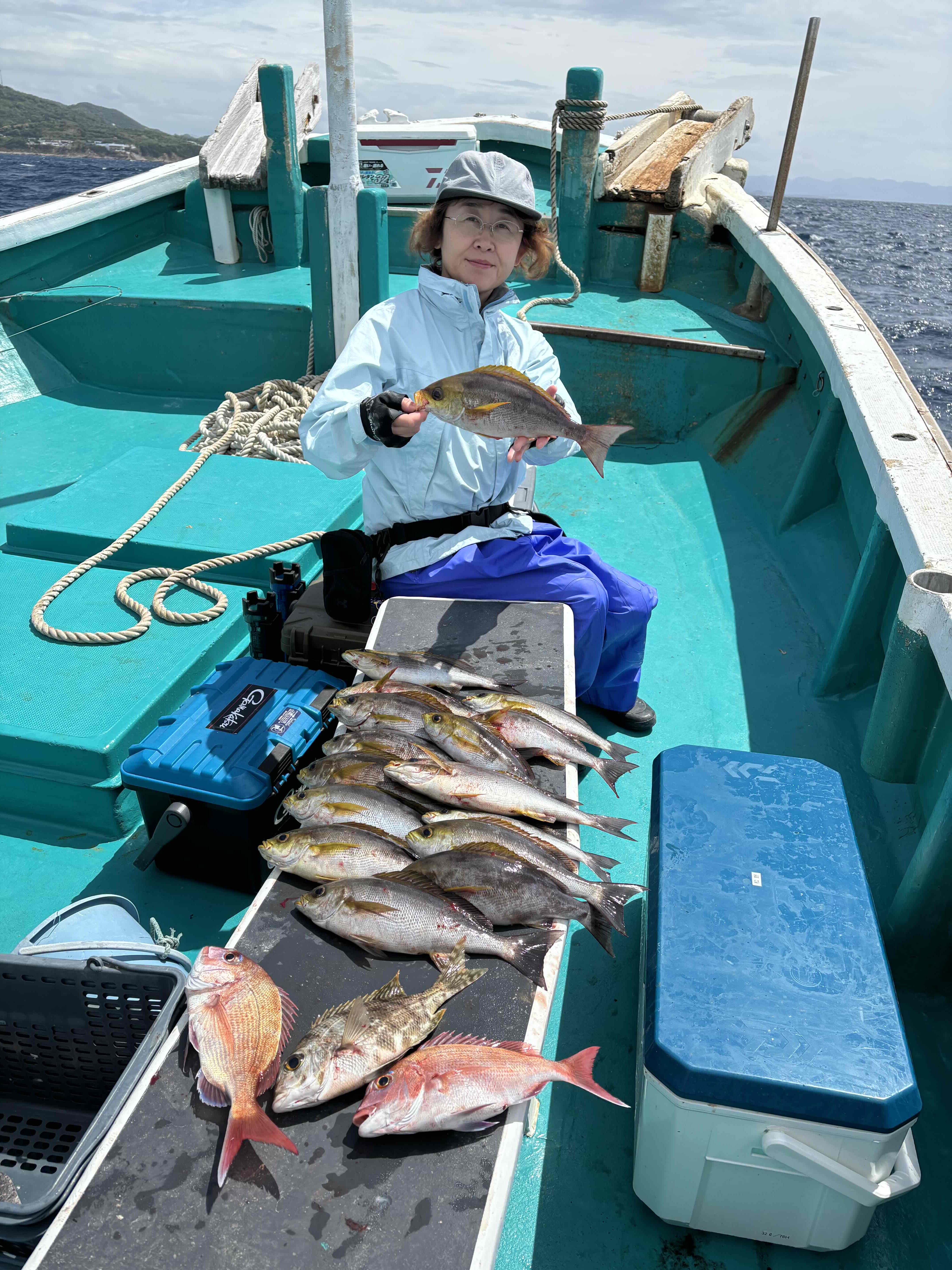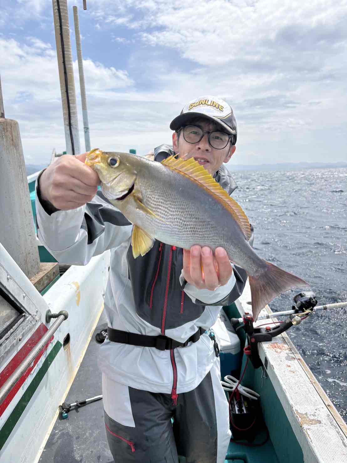 2026.04.23 印刷する 印南 木下丸 イサキ釣り 魚種 イサギ/イサキ サイズ 25~40 数 イサキ20匹以上 マダイ メイチダイ 釣り方 船イサキ 場所 和歌山県 天候 晴れ スタッフ 佐野政雄 店舗 堺店 釣行日 2026.04.20 コメント 印南 木下丸さんでのイサキ釣りに行ってきました。今が一番のイサキ釣り 脂のノリもよく何をしても美味しい。4時半集合 船に乗り込み出船 ポイントまでは近く30分ほど仕掛けは天秤仕掛け 通常はアミエビの釣りとなるが最近はエサ取りのカツオが多くオキアミでの釣りになっています。4月後半にはまたアミエビ鉄仮面での釣りに変更するそうです。早速仕掛けを投入上から25mで止めて待っているとアタリ 小型イサキ 少しタナを下げて35mでヒットなかなかの引きで上がってきたのは35㎝クラスの良型イサキ 連続ヒットもあり釣果が伸びていきます。しかしエサ取りが上に上がってくるとアタリ無し ポイント移動 移動したらイサキがヒットしていきます。しばらくするとアタリもなくなりエサだけが無くなります。棚を上下させてイサキのタナを探していくとヒットします。周りでも良型イサキがヒット数を伸ばしている感じ イサキの他にマダイ メイチダイなどヒット 色々な魚が釣れるのもオキアミの釣りならではです。後半も浅場のポイントでさらに追加して終了となりました。 これからがよくなりアミエビの釣りではさらに数も伸びるようです。 使用した釣具 剛樹 シマアジリミテッド220SS シマノ ビーストマスター3000