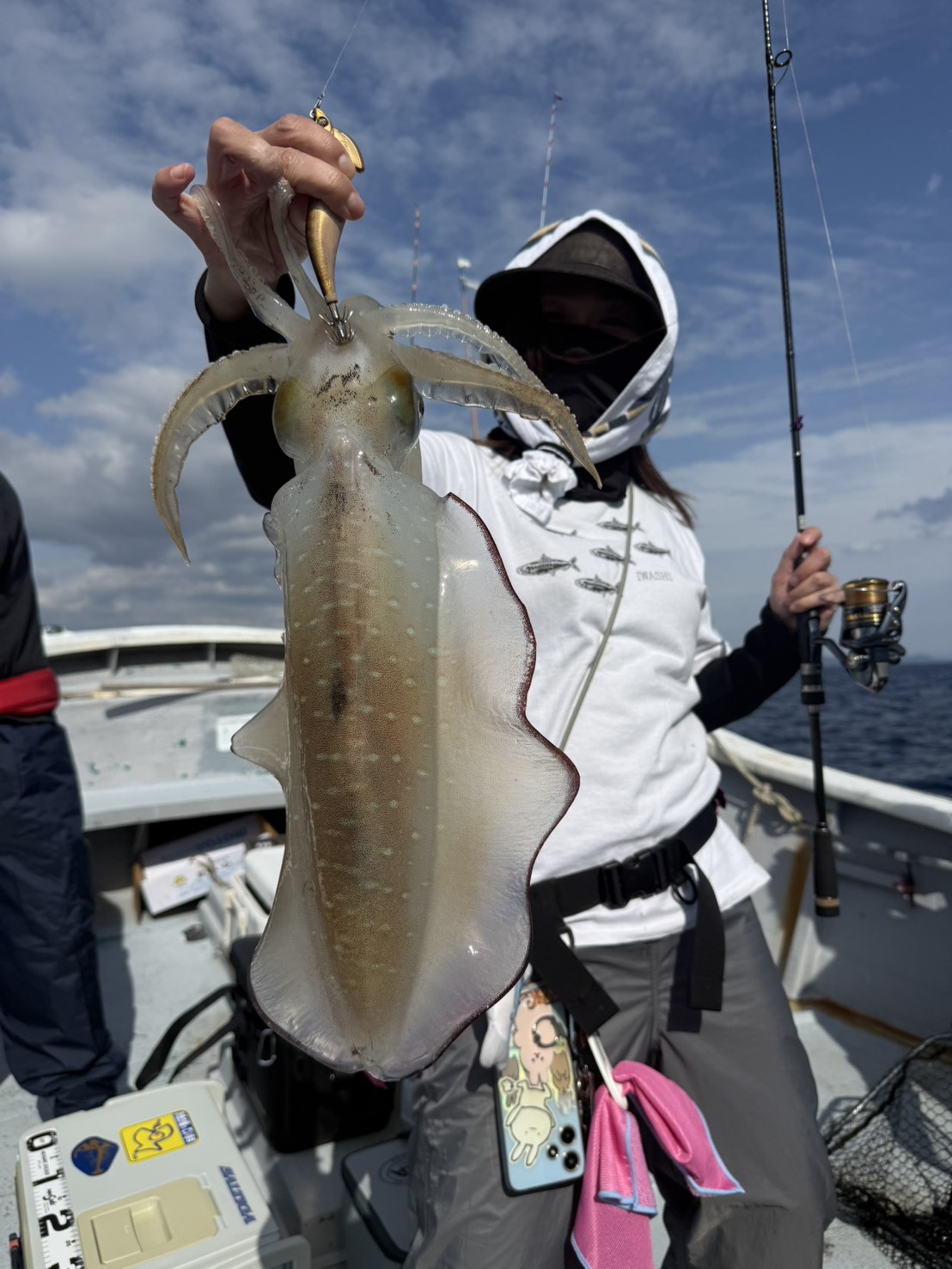 2026.04.28 印刷する 和歌山県北塩屋漁港より出船のみなと丸さんにてティップラン 魚種 アオリイカ 数 アオリイカ 1パイ 釣り方 ☆ティップラン 場所 和歌山県 天候 晴れ スタッフ 白川 亜矢 店舗 本社 釣行日 2026.04.25 コメント 和歌山県北塩屋漁港より出船のみなと丸さんにて、ティップラン釣行に行ってきました。今回は午後便での挑戦。開始直後は潮があまり動かず、アタリも遠く焦る展開に。しかしポイント移動後は状況が一変し、同船者の方がポツポツとヒット。流れに乗るように集中して探っていると、ついに待望の一杯、1.5キロの良型を釣り上げることができました。その後もイカパンチと思われる繊細なアタリはあるものの、なかなかフッキングに持ち込めず苦戦。それでもこの難しさこそがティップランの醍醐味であり、攻略する面白さを改めて実感しました。今後もさらなる大物の気配を感じつつ、引き続き挑戦していきたいと思います。 使用した釣具 ロッド メジャークラフト KGワン KGE-782ML/TR リール シマノ アルテグラ C3000HG 道糸 PE0.6号+リーダー44号 エギ ティップラン用30g 当日は金アジに好反応