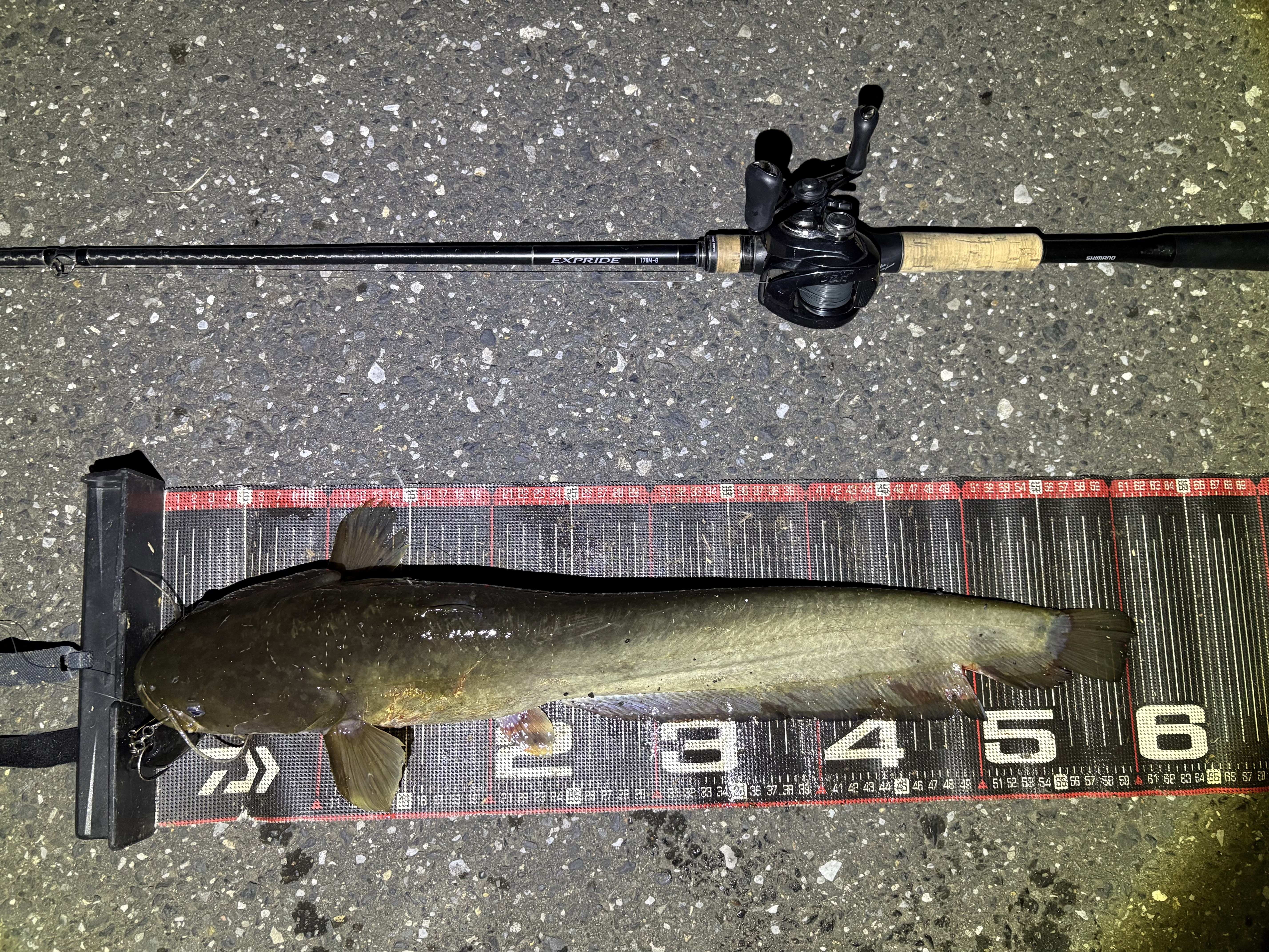 2026.04.30 印刷する サイトでロクマル! 魚種 ナマズ サイズ 60cm 数 1本 釣り方 ☆ナマズ 場所 埼玉県 天候 曇り スタッフ 中村祐 店舗 柏店 釣行日 2026.04.25 コメント 柏店中村です! 今回は勤務後のナマズゲームです!先に柏店越野君、杉田さん、冨澤さんが繰り出しているようなので合流してみます。 話を聞くとかなり渋いもよう。バイトこそあったものの3人ともオデコ…。 しばらく中村ガイドでやってみますが、反応は出せず…。3人は納竿。 1人になったところで本命ポイントへ向かいます笑いちばんアツいところは人には教えない中村笑 本命ポイントにてナマズを探していると、足元を泳ぐナマズを発見!サイトナマズはアプローチが大事!ルアーの向きを考えキャスト!一瞬逃げるような素振りを見せますが、反転してバイト! 慎重に抜きあげると上がってきたのはロクマル! やはりこのポイントは一味違いますね♪ その後さらに1バイトありましたが、残念ながらバラしてしまい、1キャッチで納竿でした!今シーズン64本!今年はかなりのハイペースですね!今後も楽しみです♪ スタッフ中村おすすめのロッドは、シマノ エクスプライド170M-G!ショートロッドのイメージがあるナマズですが、結局はポイント次第。手前に葦がある所などではショートロッドはやや不利なときも…。大は小を兼ねる!ナナマルを釣ったロッドなので、自信を持ってオススメできます♪ぜひ使ってみてください♪ 使用した釣具 ロッド シマノ エクスプライド170M-G リール メタニウムDC70XG