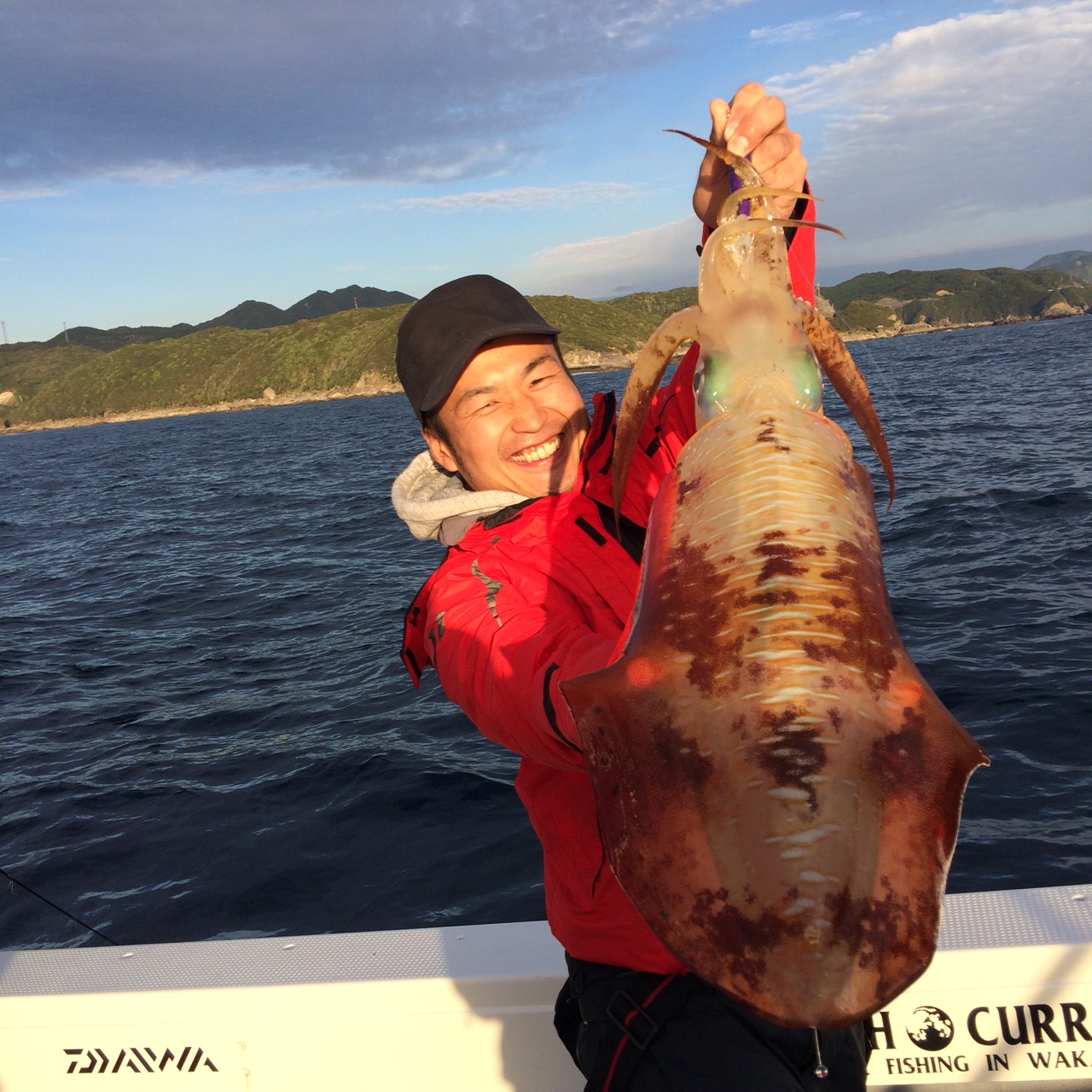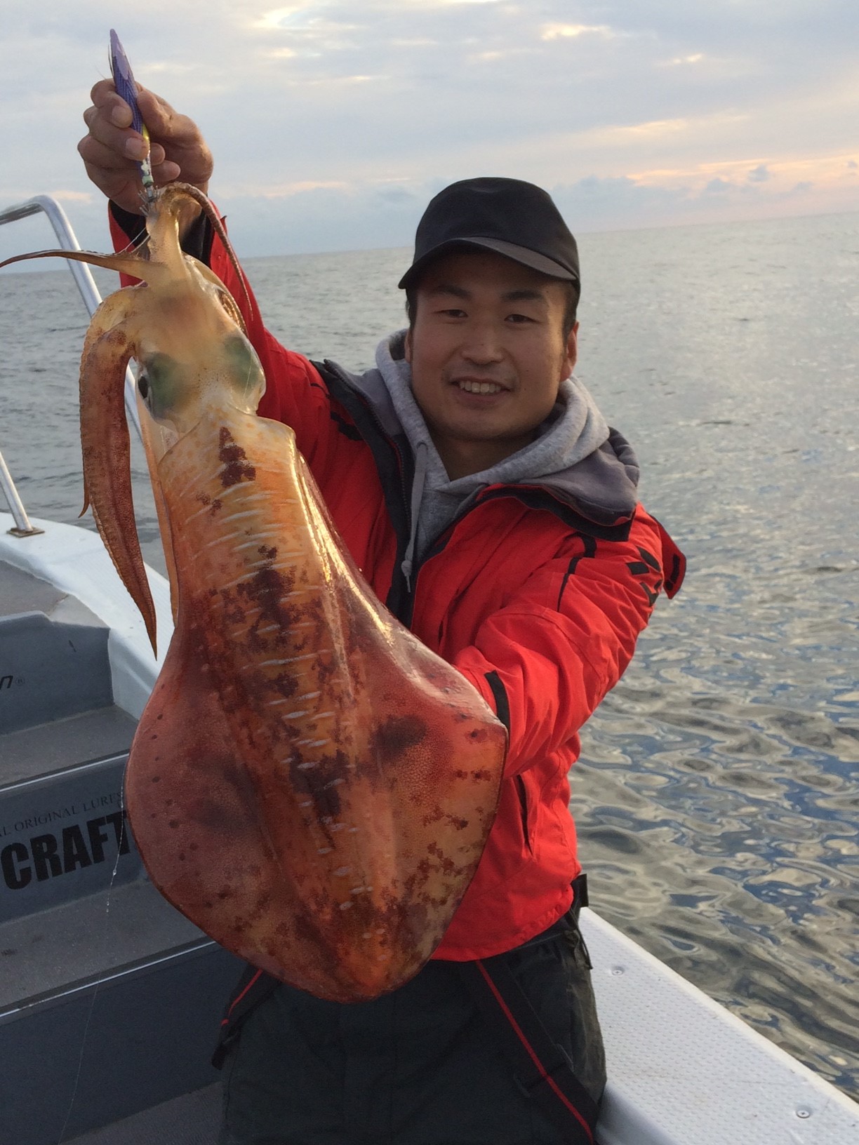 最初は湾内の白系アオリイカ狙いで平山氏にバイトあるが乗らず。