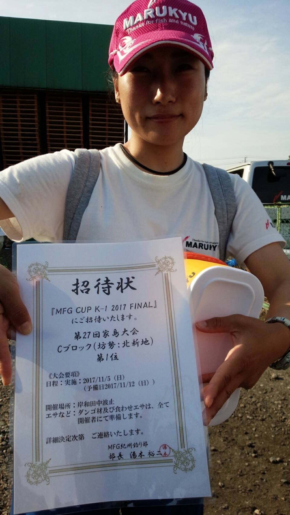 2017.06.26 印刷する MFG紀州釣り部親睦釣り大会 IN 家島諸島♪ 魚種 クロダイ/チヌ 数 チヌ/1枚 アジ/4枚 フグ/1匹 タコ/1 場所 兵庫県 天候 晴れ スタッフ 梶田祐子 店舗 郡山店 釣行日 2017.06.18 コメント こんにちは奈良郡山店 梶田です 18日(日)、今年も待ちに待ったMFG(マルキューファンクループ)紀州釣り部の親睦釣り大会が姫路市は家島諸島にて開催!参加してきました♪ 当日、受付は午前2時・・・前日仕事が終わりすぐさま帰らせて頂いても、荷物の準備と積み込み、お風呂入ったら・・・22:30。即出発です(泣)ご飯もろくに食べずゴー! 相変わらずですが、今回は一人で現地に向かうのでいつも以上にかなり厳しい・・・ まーそんなこんなで頑張りまして。 まずは無事に現地到着! 今回はアルバイター平木くんも参加です。 普段は筏師の平木くんですが紀州釣りもします。一緒に竿を出すことはもちろん初めてなので楽しみです♪ 友人とも合流し、この時期のみ顔を合わす会員の方々や部長にも挨拶をし、まずは受付と抽選を。 ゼッケンは3番! 女子選手はトイレの関係もありポイントは決まっています。家島諸島坊勢島の「北新地」 事前に行われた試釣では一番好釣果のあったポイントとのことです・・・ 友人は抽選にて1番を。もちろん大本命の船着きをチョイスするとのこと。 みんな意気込んでます。 開会式を終え、今回は参加人数も多く4隻に別れての出船です。 家島大会エントリー102名参加人数88名入賞上位3名と各6ブロックの1位の計9名が11月に岸和田で行われる「MFG Kー1 CUPファイナル」出場の権利を得ることとなります。 さてさて今回はどーなることやら。 渡船にのり高速で30分~ポイントに到着。 ゼッケンの若い人から釣り座を決めます。 私は船着きからほどよく近い内向きをチョイス。左横に平木くんが入ります。 さてさて準備を♪ 事前にダンゴ材を作っておいたので竿のセッティングからです。 今回もピンクの寝ウキを迷うことなくチョイス! さー頑張るぞーぃ♪ 北新地はかなりタナが深く。竿2本ちょいといったとこでしょうか。 しっかり底に届くダンゴを握らないとダメ。べちゃべちゃだと芯残りし、パサパサだと底へ届く前にサシエが途中で出てしまいます。 水分調整と握り具合が大事です。プラスアルファ、タナの調整が大切で、毎投ごとに微調整したりも・・・ まぁ私はコントロールがへたっぴなのでその辺は運任せですが(笑) 数時間経ち、20名程北新地に降りましたが、一向に当たる気配はありません。 試釣では良かったのになぁと皆さんヤキモキ。 アジ、フグが邪魔をしています。 ウキにアタリがないのに知らぬ間にエサがとられてたりと。 う~ん難しい。厳しい・・・ そんなこんなでしたが、午前8時前でしょうか。 良い雰囲気のアタリをキャッチ! 一気に目が冴えます。 よし!次!次のアタリは絶対とったるねん!と。 丁寧に丁寧に握り、投げてからはめーっちゃ集中! で! ついにきました! きましたよ~♪ 微かな前アタリを我慢し、もう一度きたアタリを鬼合わせ♪ あがってきたのは小ぶりも小ぶりの・・・だけど本命の・・・おチヌちゃん♪!!! きゃー!!! タモが必要サイズではないけれど、丁寧に失敗しないように保険でタモをIN! くは~!嬉しすぎる! てことで!あとは平木くん!友人!頑張って!だったんですが。 いいアタリで竿が曲がるも・・・ボラ。・・・ヘダイ。・・・フグ。・・・良型アジ。(持ち帰り)でした。 私ももう一枚!と頑張りましたが・・・ アジのタナにドンピシャ。平木君のお土産にと数枚連チャンで良型を釣り上げ。 なんやかんやと試行錯誤試みましたが・・・ 納竿14:45。 北新地でその後おチヌ様の姿を見ることはなく。周り皆様もぐったり。 なんとま、私の1枚のみという結果に。 帰港し、表彰式では相変わらずレディース賞を頂き。29名の釣果があった中、私は28位(25.5㎝ 470g)でした。 が! 北新地でブロック1位を頂き、ファイナル出場が決まっちゃいました♪ 平木くんは初めての大会。結果は残念でしたが楽しんでくれた模様。8月の岸和田大会でもオブザーバーにて参加を意気込んでます。 友人とともに結果を出してもらいたいなぁ~と願いつつ。 ヘトヘトクタクタな身体にムチを打ち、帰路へとつきましたとさ。 この時期の釣行。暑さ対策、日除け対策万全にし、水分をしっかりとって楽しみましょうね! 使用した釣具 釣竿 がまかつ チヌ競技スペシャルⅢ 0.6ー50 リール シマノ BB-Xハイパーフォース2500DHG 道糸 ラインシステム 2号 ハリス 東レ 1.5号 浮き 寝ウキ エサ オキアミ、練り餌、コーン、サナギ、ボケ