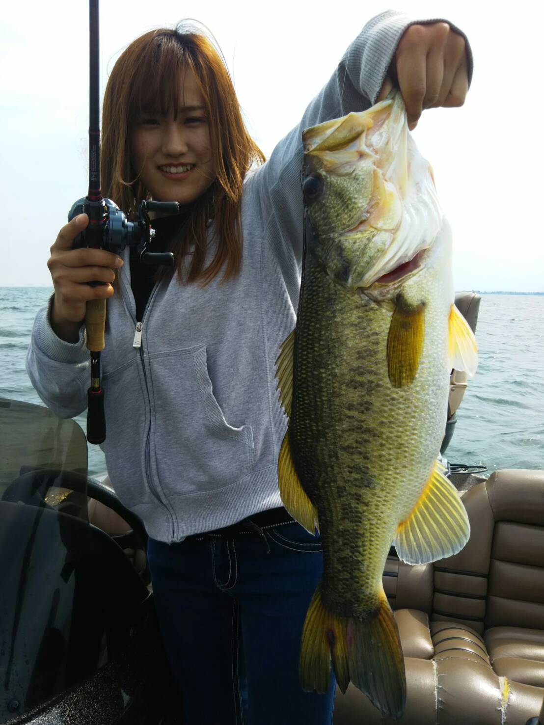 2018.06.06 印刷する 琵琶湖バス釣り!\20匹/ 魚種 ブラックバス サイズ 30~40cm台 数 20匹 釣り方 ☆バスフィッシング 場所 滋賀県 関西 天候 くもり スタッフ 松山 里穂 店舗 大津店 関西 釣行日 2018.05.28 コメント 本日は大津店スタッフ馬場さん、平塚さんと共に琵琶湖バスボートへ 行ってきました。 今回もフィッシングゲートさんにお世話になり朝5時頃出船しました。 飲み物もたくさん買い準備万端にしましたがこの日は曇りで気温も 低く集合した時にパラパラと雨が降っていました。 ですが雨も止み最初のポイントへ! 今回も馬場さんに教えていただきながら初めて スタッガーオリジナルの4インチを使いダウンショットで始めていきました。 開始して1時間ほど経ち平塚さん馬場さんと1匹目GETっ(´∇`) 私も横で羨ましいなーと思いながらめげずに頑張っていると 竿をもっている手に違和感が!!!あわせができずとりあえず巻いていると フックが上手くかかっておらずバスが暴れた瞬間一気に軽くなり 逃がしてしまいました(;д;)前回のブンブンクラブでは跳ねることが なかったので今回初めて跳ねて竿を下げると知らずまたしても 残念なことをしてしまいました…笑 さらにその後2匹目もまた逃がしてしまい…今日はバイトはあっても 引き上げることすらできないのかとちょっと不安でした。 そこから馬場さん、平塚さんに跳ねた時の対処の仕方ともう一度合わせ方を 教わりワームもバルビュータ―3.5インチに変え再度開始♪ お腹も減ってきたのでちょくちょくごはんを食べながら何か所かポイント移動し お昼すぎくらいにいった場所で本日初のバスが釣れました。 まだまだ合わせることはできないですがなんとなく 感覚が分かり始め竿先の感覚もつかめてきました! 馬場さんが「今日は3人で10は釣りましょうっ!」と言っておられ 二ケタもいけるのかなーと心配でしたが途中から皆良い感じで釣れ 皆釣れてはバレての繰り返しで笑いもあり楽しかったです。 残りあと2時間ほどって時に静かな中釣りをしてたら横から 「ぴゅっぴゅっ」と可愛い鳴き声が(・ω・☆)ボートの下をみてみると はっきり何の鳥かは分からないですがよく琵琶湖にいる鳥だと思います。 見ているとあきらかにこっちを見ながら近づいてきました…笑 ボートの真横まできて止まったまま動かないので確保してあげることに!! 手にのせてみると可愛い声で鳴きながら目をパチパチさせながら 親とはぐれたようで逃げることなくずっと私たちの傍にいたので このまま返すのは可哀想とマリーナさんに戻ることにっ♪ ボートを飛ばし過ぎたらビックリしてしまいそうだったので 馬場さんにゆっくり運転してもらい鳥さんは帽子の中で 守り 平塚さんがずっと持っていました。 後から聞くと帽子の中で眠っていたようです…(‘∇´)可愛すぎましたっ マリーナさんで無事に鳥をおろしもう一度釣り開始! そこからは釣れそうな感じはありましたが釣れることなく時間になりました。 結果は合計みんなで20匹は釣れ私は10匹も釣れとてもうれしかったです。 サイズは春みたいに大きいのはなかなか難しいですが数はたくさん釣れ 良かったです。 まさかこんなにたくさん釣れるとは思ってなかったので是非また挑戦したいと思います。 馬場さん、平塚さん今回もありがとうございました。 使用した釣具 釣竿 ブレイゾン 6101MH リール TATURA7.3 ルアー スラッガーオリジナル