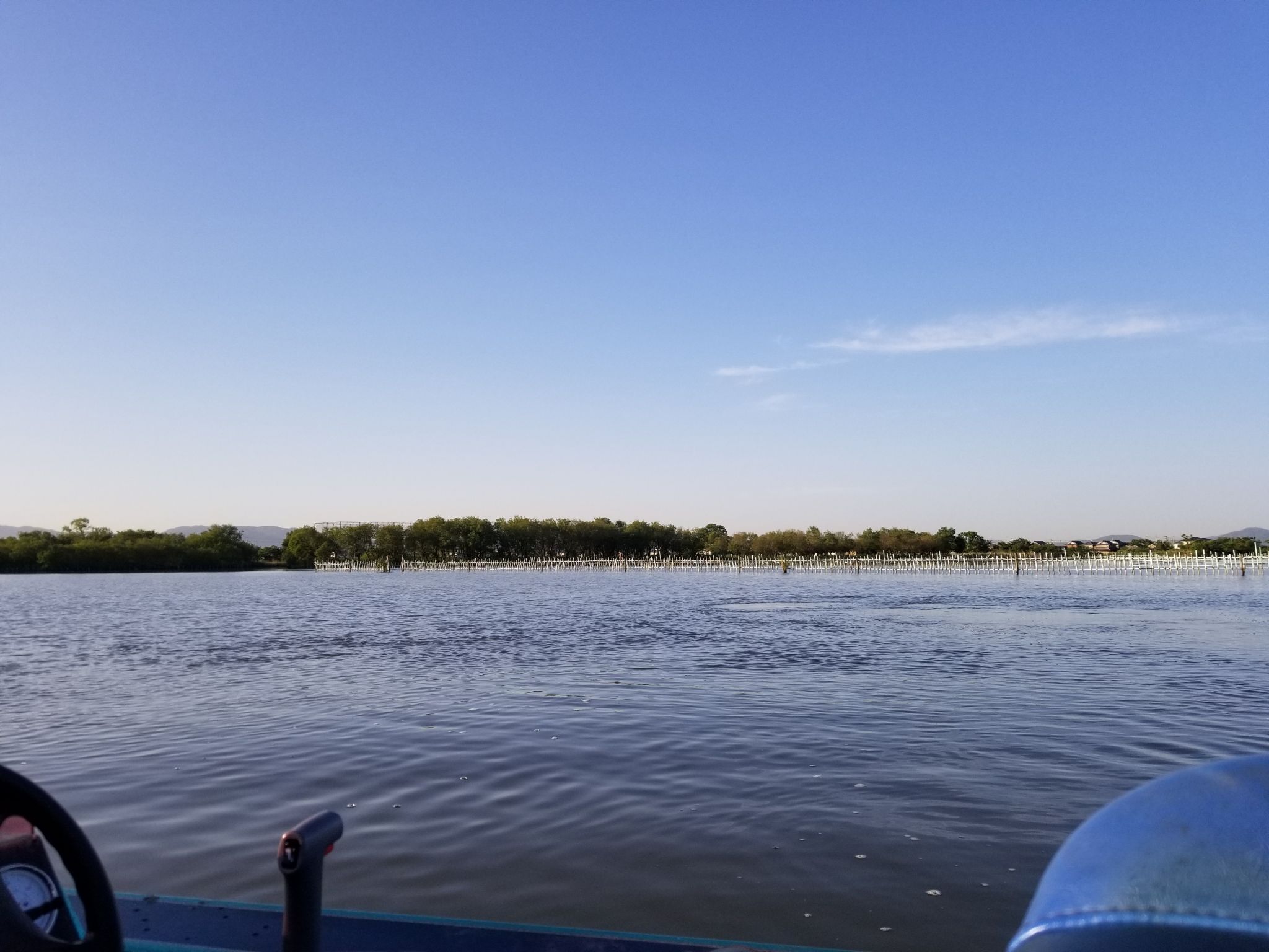 ☼雲一つない青空で、釣行日和でした。早朝5:00からすま出航です。今回初めてのボウズでした?。釣りしている時は、一生懸命ですが?、終えてみると0匹でした……?。当たりは、何度かありました。バスは溜まらず、ストレス溜まりました(●´ω`●) 釣り歴まだまだの2年ですが、琵琶湖には数回行っています。今回もバスボートでの釣行でした。回数重ねることにより少しづつですが、技術と知性が身についていると思っていますが……ビシッ。釣りは本当に難しいですね。釣りを始める前は、簡単そうに見えていましたが……(´;ω;`)。バスが何処でどのようなタイミングで出没するか、習性を知ることがとても大事だと思いました。グラスが多いところや水の動くところには集まります。グラスにも奇麗なグラスと死んでいるようなグラスがあります。友人がよく言っていましたが、何で釣れないんだろう。何がいけないんだろう。誰か教えてほしいその通りですこんな風に思ったのは初めてです私の場合は、技術も知性もまだまだまだまだです。言葉では理解出来ていても、色々な経験しないと解らないものですね。