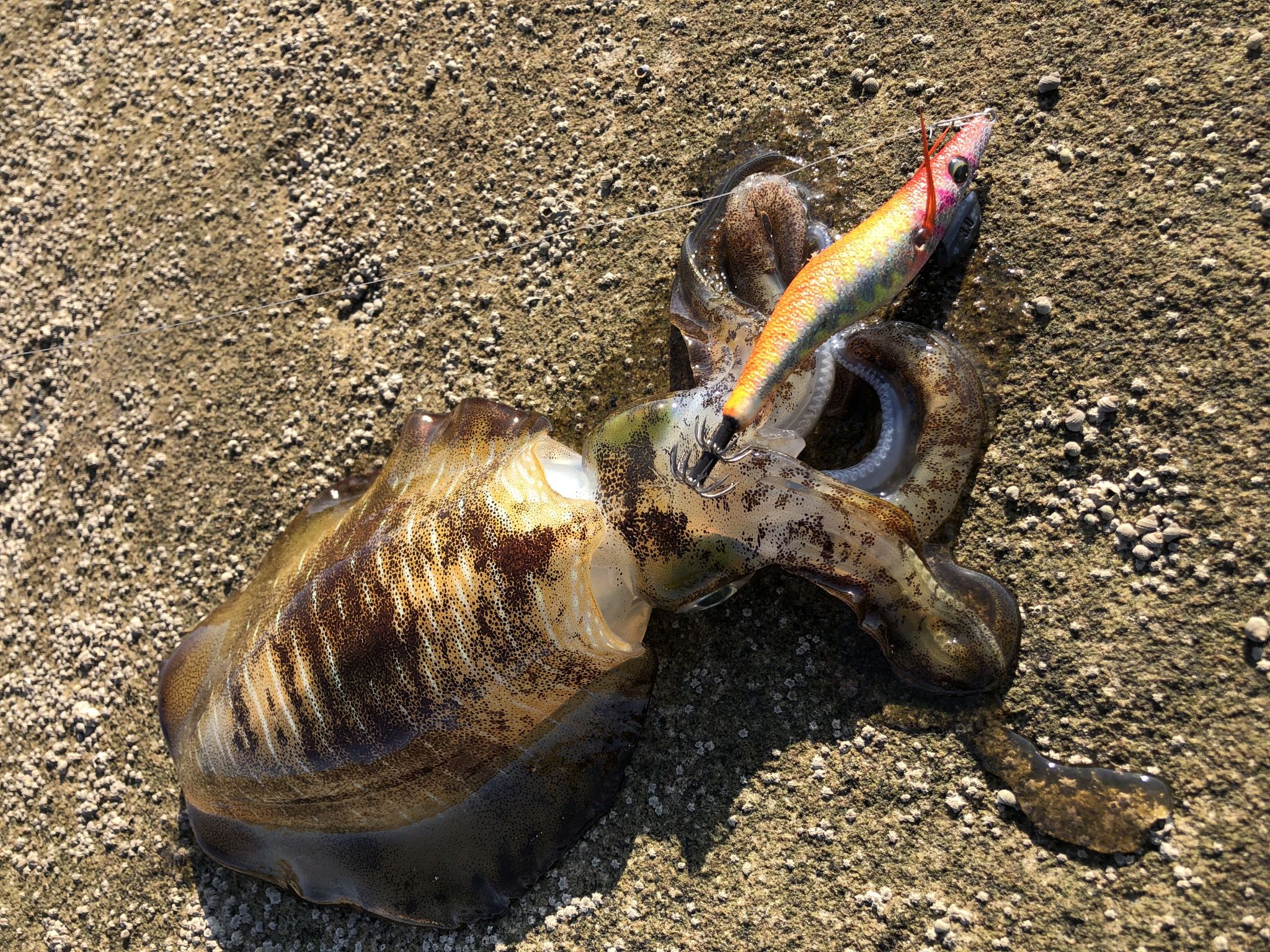 2019.11.07 印刷する 秋の沖磯エギング in田辺 魚種 アオリイカ 数 500g アオリイカ・・10杯 釣り方 ☆エギング 場所 和歌山県 関西 天候 晴れ スタッフ 嶋谷 優作 店舗 堺店 関西 釣行日 2019.10.30 コメント こんにちは? 今回は南紀田辺の沖磯へエギングに行ったきました。 朝4時半過ぎ出船。 一発目は塔島。 ここは潮が引くと隣のコイサンバにも行けるので、広く探れるポイント。 暗いうちからシャクリますが反応なし… 日が出始めて少しシャロー側をうつとヒット! ちょうどコロッケサイズ♪ それから南側のシャローでもう一杯追加。。 塔島とコイサンバの間のワンドでもう一杯追加。。。 …サイズ出ねぇ 9時半の見回りで金谷に移動します。 前情報でかなり良かったとの事なので期待が持てましたが、ノーフィッシュ。 キャスラバでサバフグのみ、、 ちょっと寝て2時の見回りで神楽に移動。 貸し切り状態でどこでもうてます! とりあえず西側から…一投目サイトでヒット。 300gくらいか 少し離れて打つとさらにもう一杯同じようなサイズがヒット! さらにさらに次のキャストでもう一杯追加。 三連続ヒット。 まだ潮が低いので高場へ移動します。 濁りが結構キツイですがどうでしょうか… 手前まで引いてくると3杯ウヮッと出てきてさあ取り合い。 急患に出てきてこっちもびっくり!? 何とか2杯はこれまたサイトで取れましたーー 今日いち。 その後、高場東側で2杯、北側で1杯と追加して16時納竿としました。 磯の数も多いので、休日でもポイント選びに困らないのでオススメてす! 一度ぜひ行かれてみてはいかがでしょうか? 堺店スタッフ 嶋谷 使用した釣具 釣竿 ガンクラフト・・スーパーバイオレンスジャーク7.2ft リール シマノ・・18ステラc3000 ルアー ガンクラフト・・餌木邪3寸、カルティバ ・・draw4 3号 道糸 pe0.6 ハリス フロロ3号