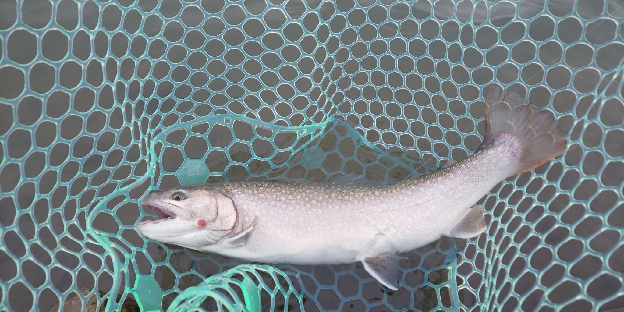 さらに同じ釣り方で竿にでるあたりをとるかラインであたりをとっていきニジマス40アップ2連発!しかし普段なら40オーバー釣れれば嬉しいですが、この日は大型が連発し、最初のと同じくらいの特大が釣りたいと思っていると、またもラインが微妙にはっていたのであわせると竿にのる重量感。