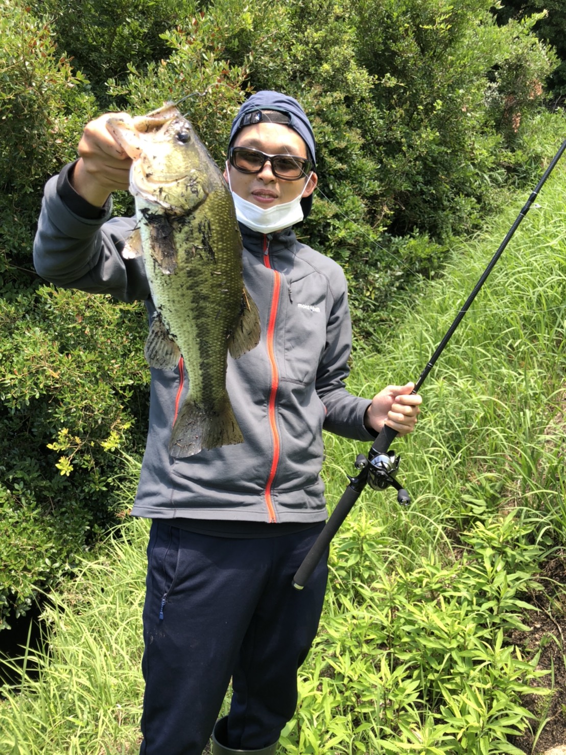 黒くてかっこいい野池バス!いきなり釣りたかったような魚が釣れて大満足です。