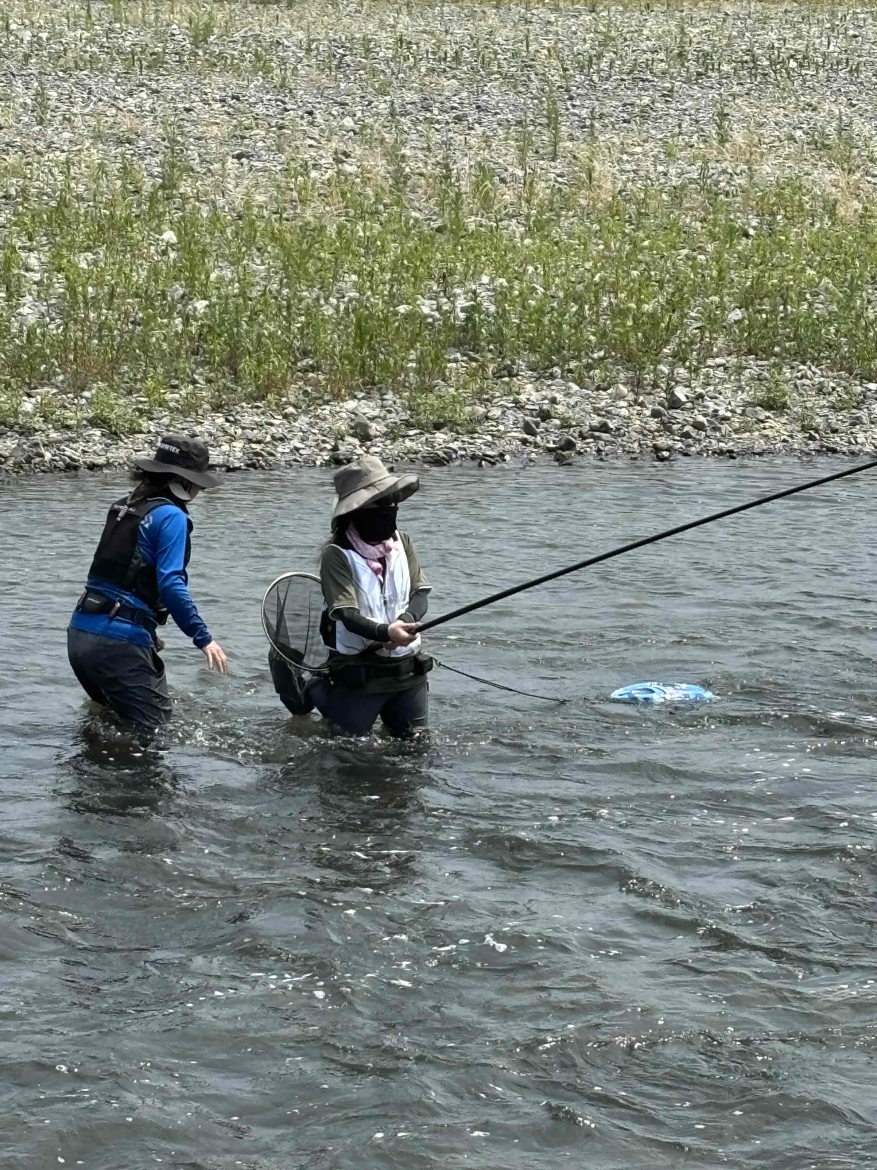 今回の釣行会では、参加者の皆様には、「友釣り」と「アユイング」の2種類より、
