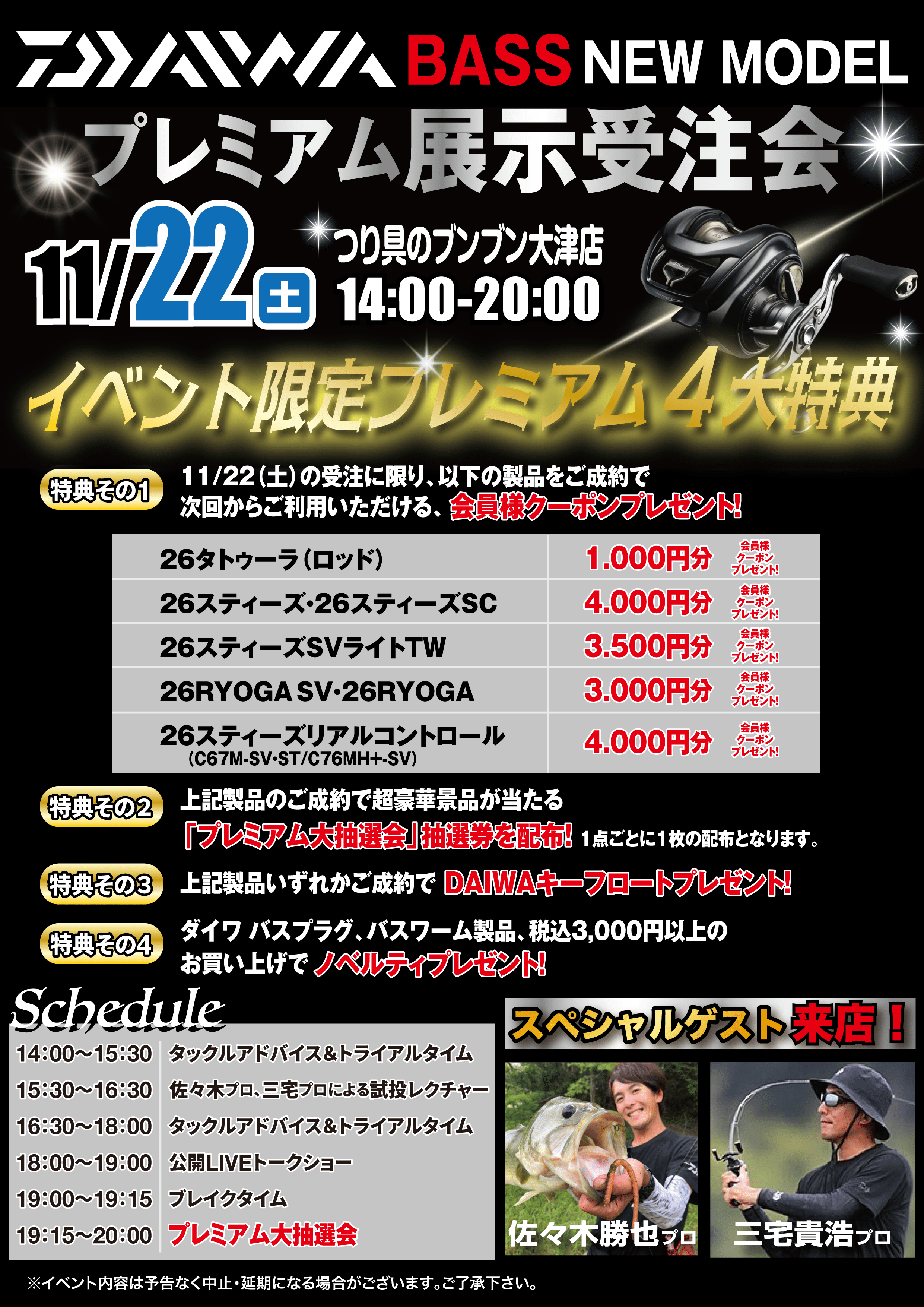 HOME / セール&イベント / 【大津店】ダイワ BASS NEW MODEL プレミアム展示受注会!