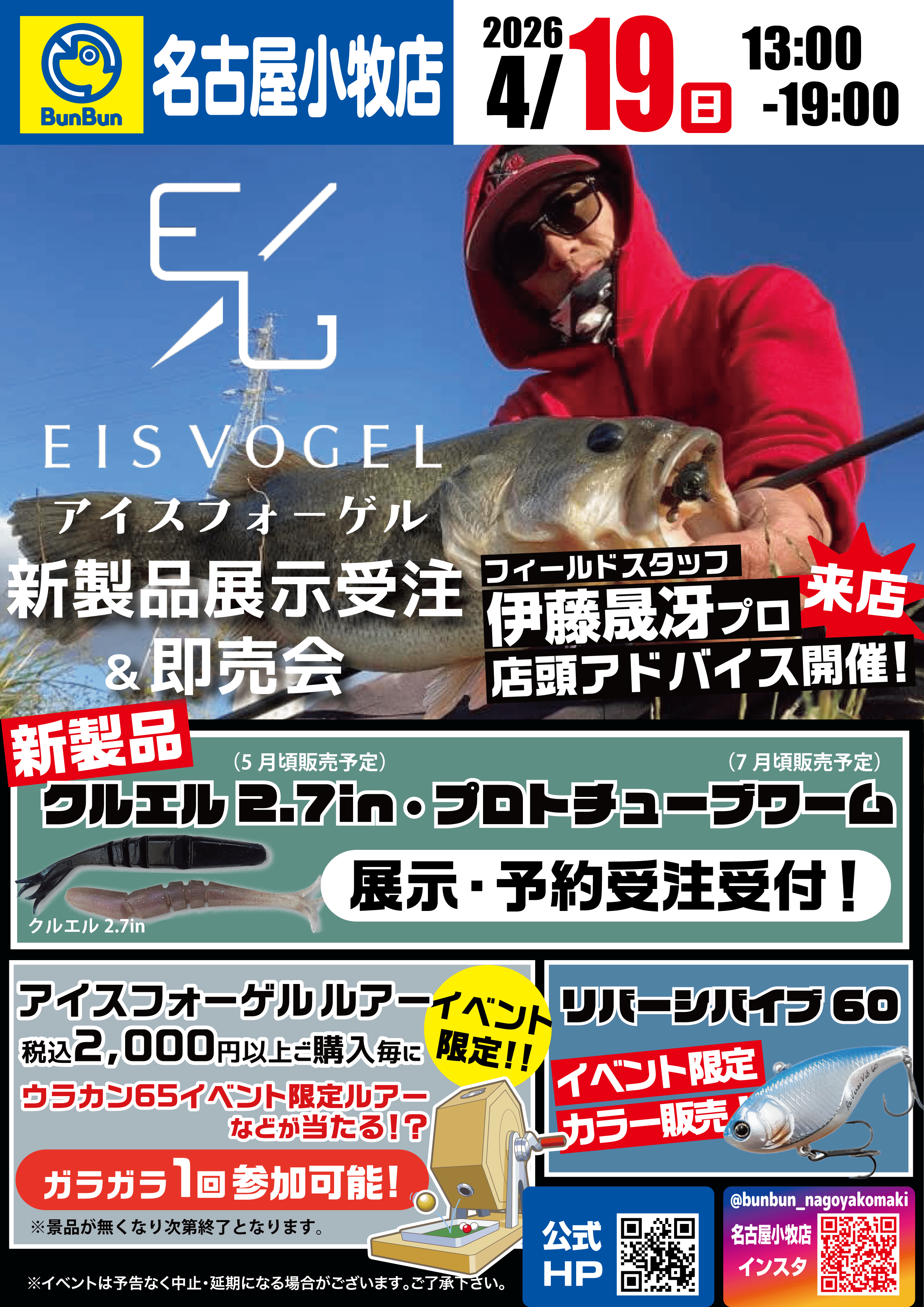 イベント情報 2026.04.19 名古屋小牧店 【名古屋小牧店】アイスフォーゲル新製品展示受注&即売会! ■名古屋小牧店店舗情報はこちら☟ 名古屋小牧店 ■名古屋小牧店公式Instagramはこちらをタップ☜