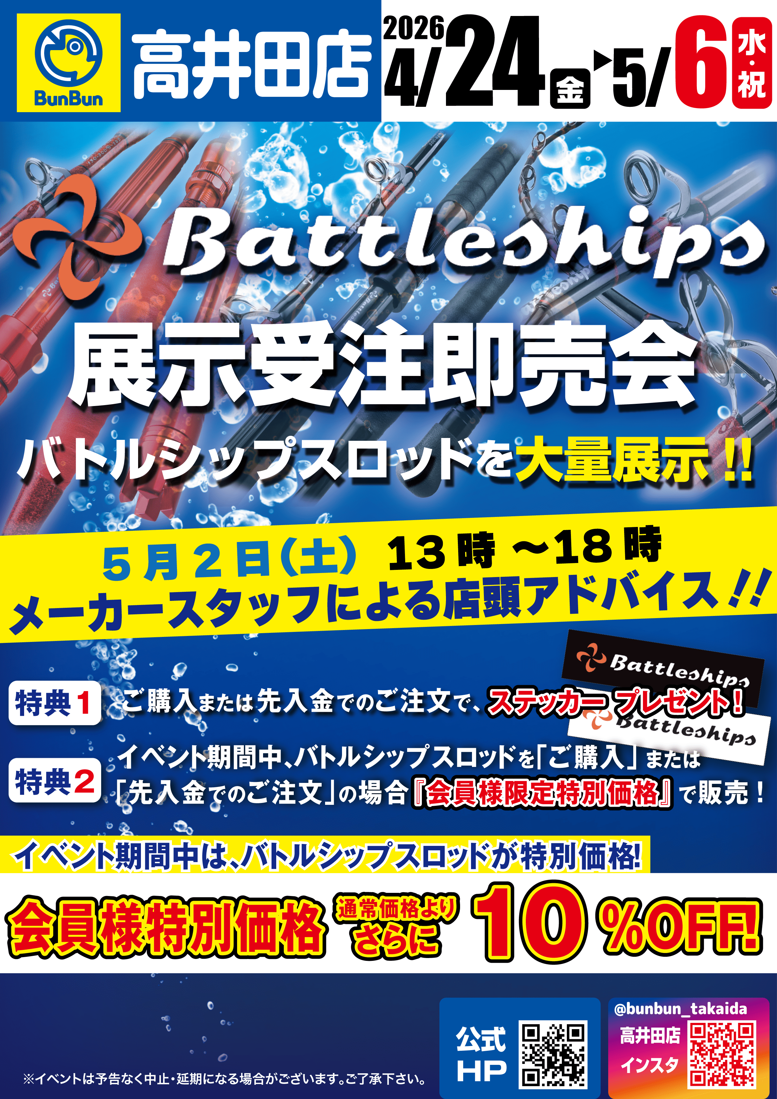 イベント情報 2026.04.24 ~ 2026.05.06 高井田店 【高井田店】バトルシップス展示受注即売会! ■高井田店店舗情報はこちら☟ 高井田店 ■高井田店公式Instagramはこちらをタップ☜