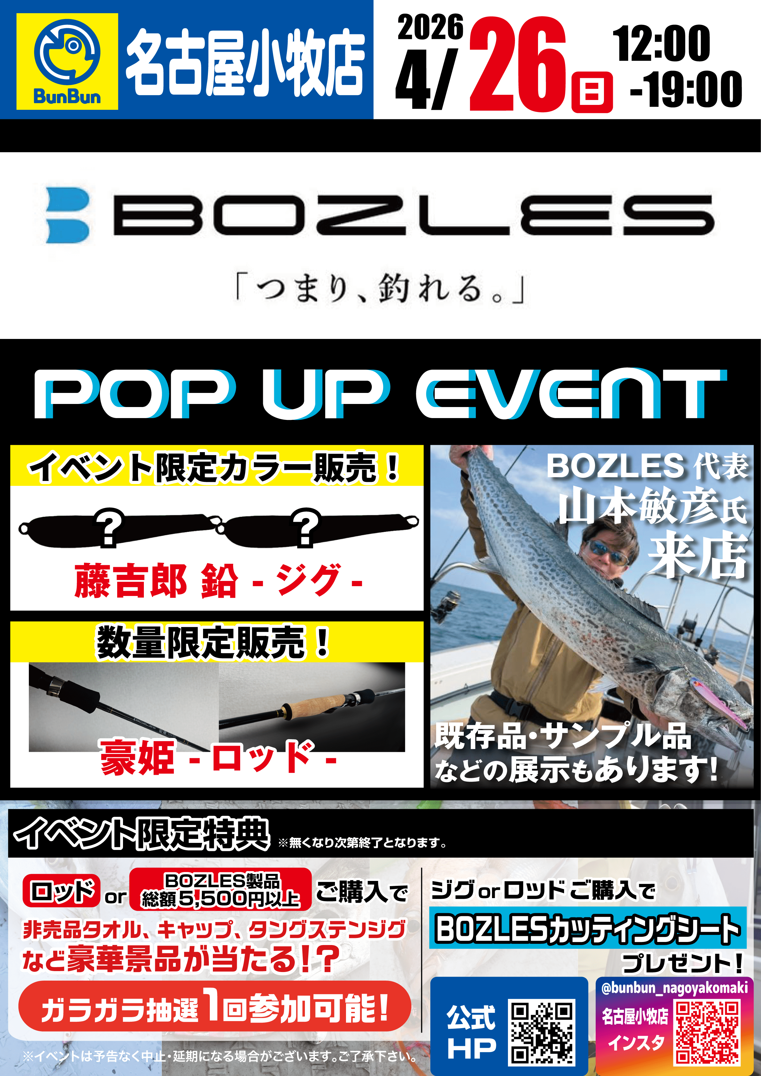 イベント情報 2026.04.26 名古屋小牧店 【名古屋小牧店】BOZLES POP UP EVENT ■名古屋小牧店店舗情報はこちら☟ 名古屋小牧店 ■名古屋小牧店公式Instagramはこちらをタップ☜