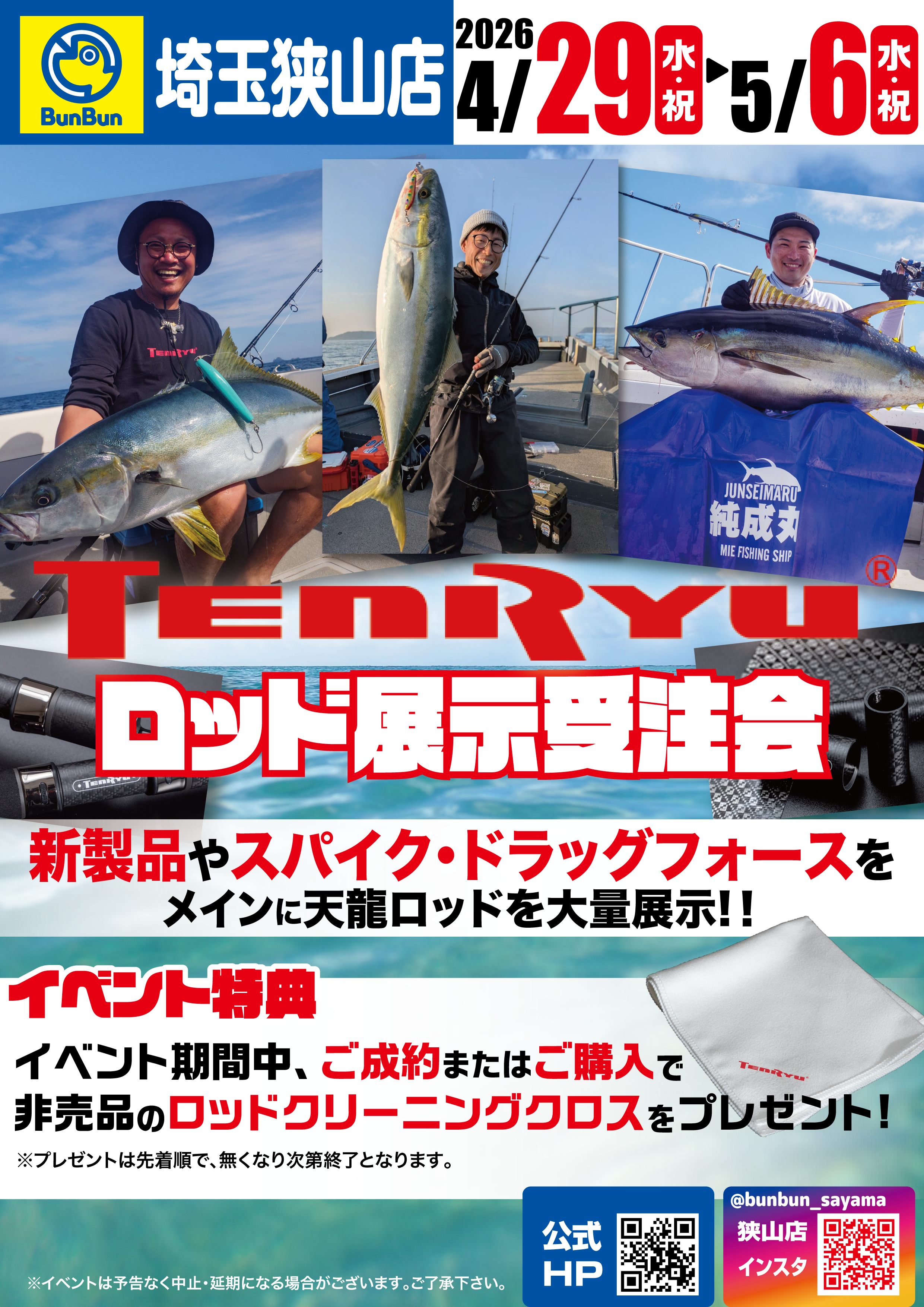 イベント情報 2026.04.29 ~ 2026.05.06 埼玉狭山店 【埼玉狭山店】天龍ロッド展示受注会! ■埼玉狭山店店舗情報はこちら☟ 埼玉狭山店 ■埼玉狭山店公式Instagramはこちらをタップ☜
