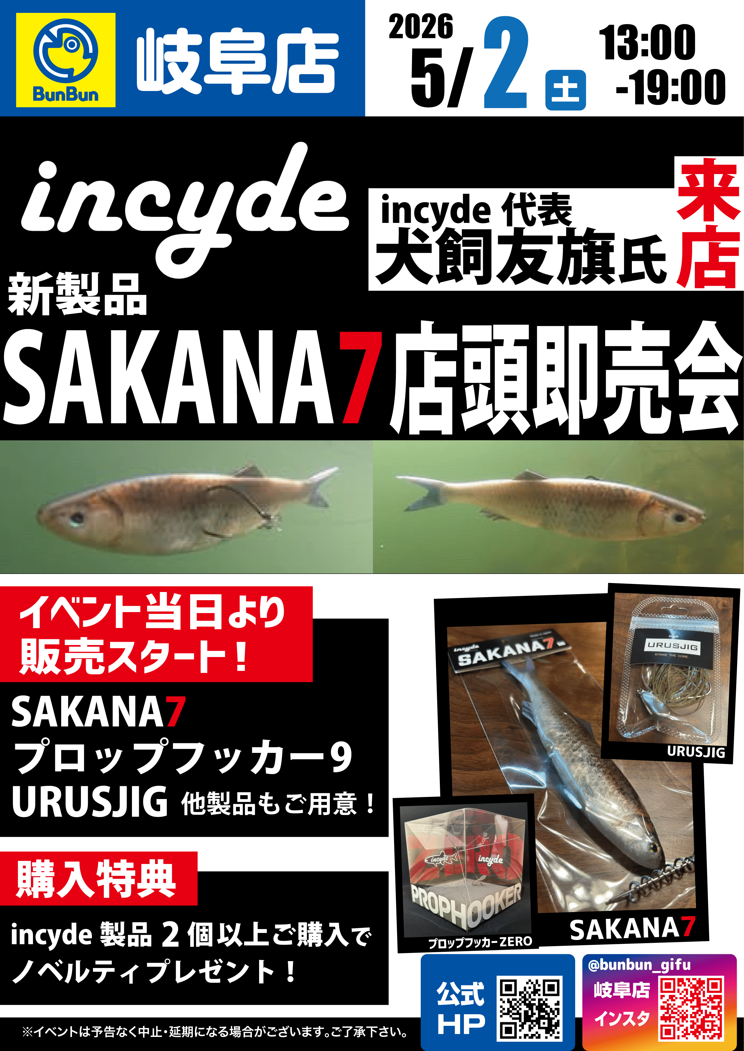 【岐阜店】incyde SAKANA7店頭即売会!